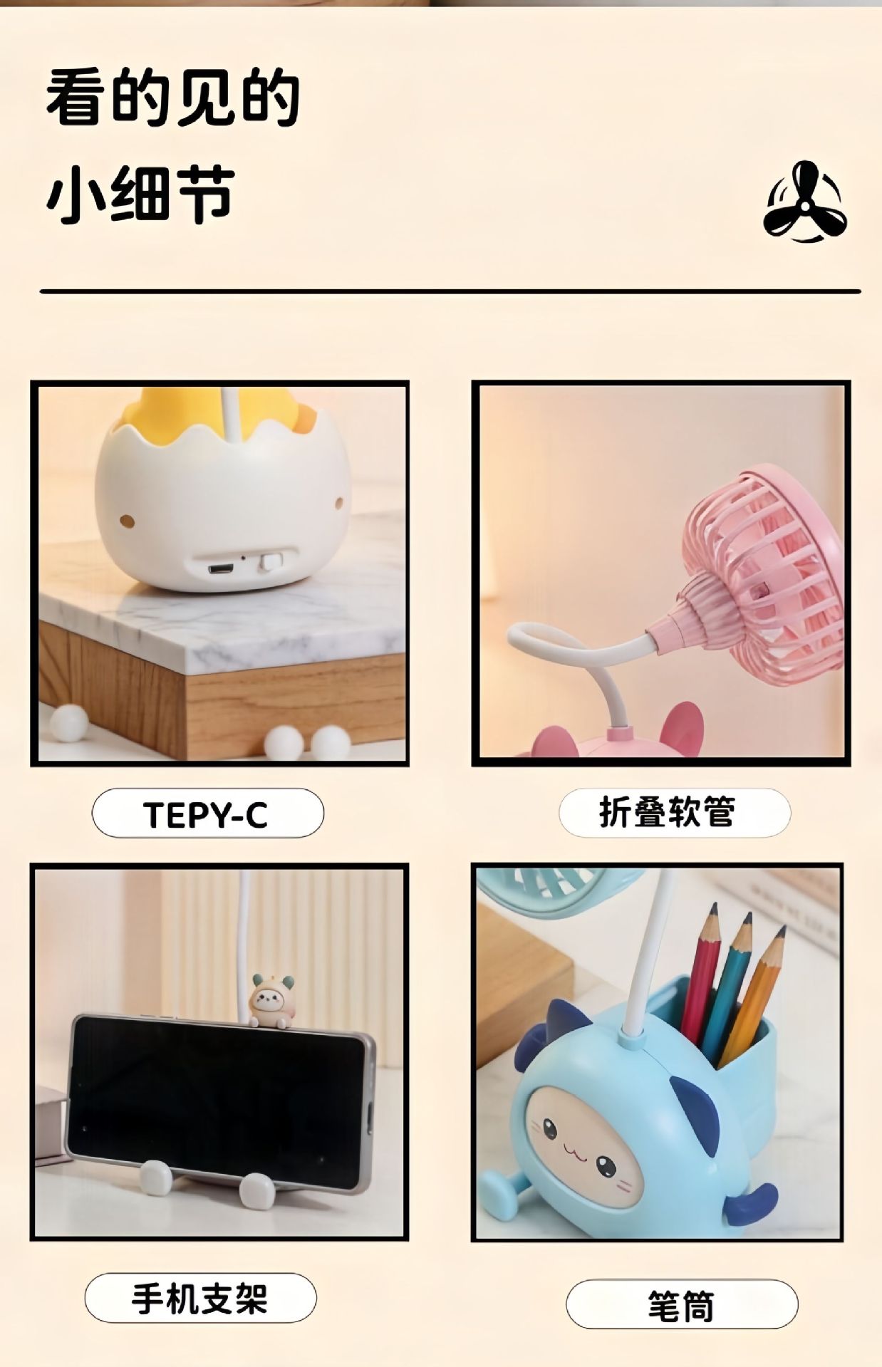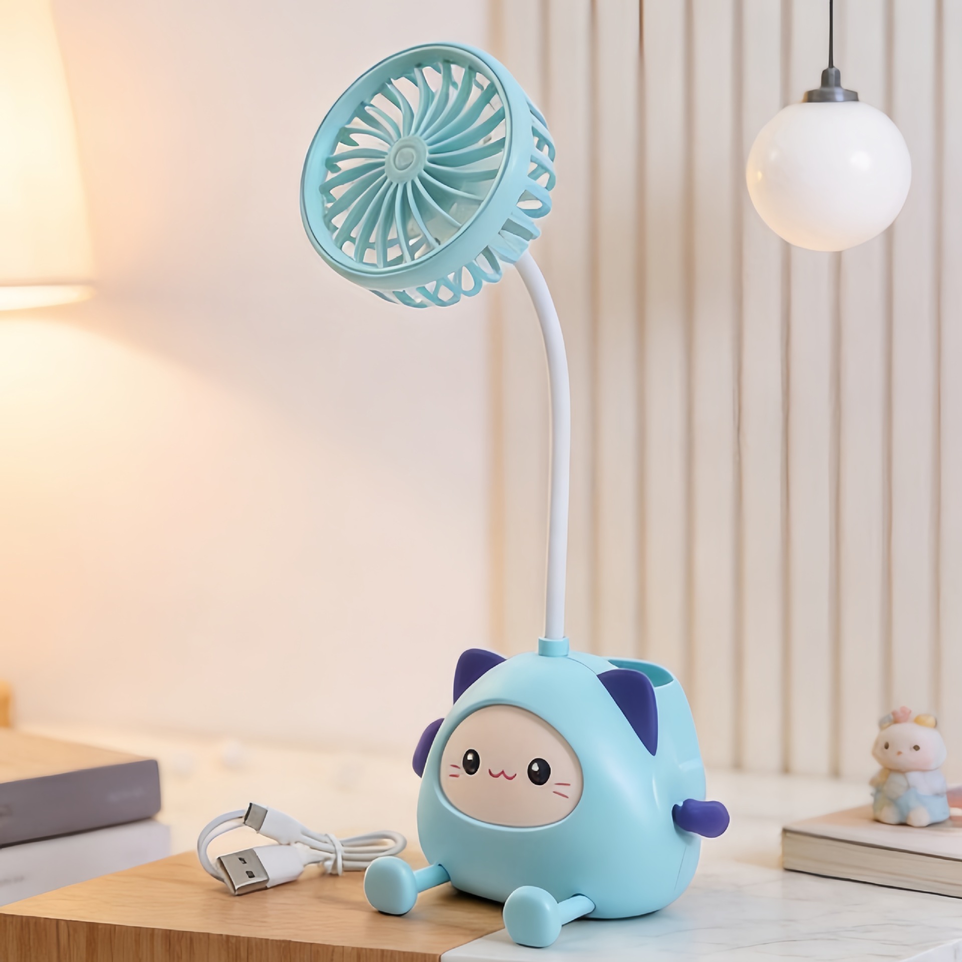 学生书桌迷你充电风扇宿舍卧室笔筒折叠电风扇幼儿园儿童礼品批发