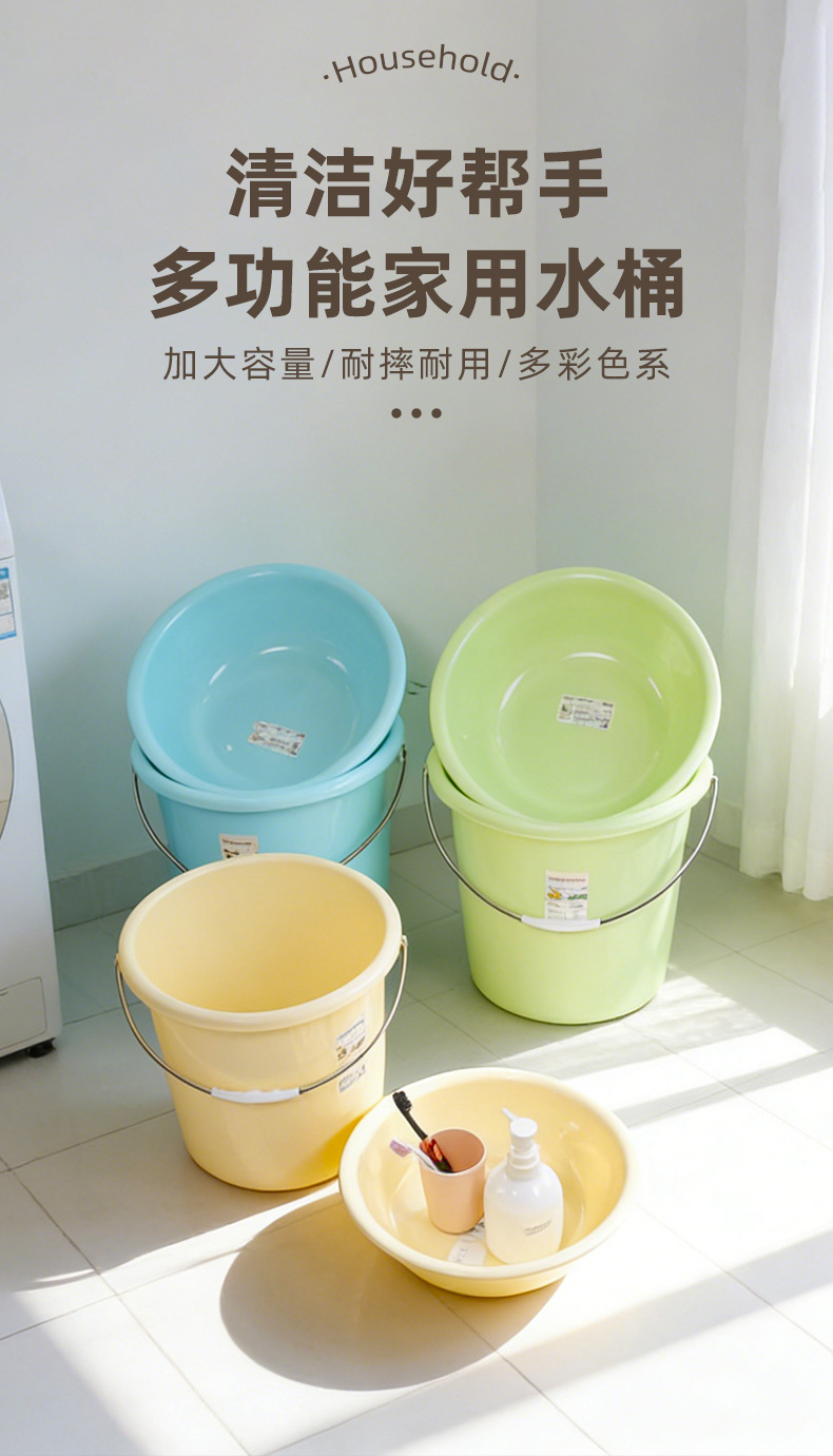 同享手提水桶家用学生洗澡桶宿舍洗衣桶加厚洗车桶耐摔塑料桶批发