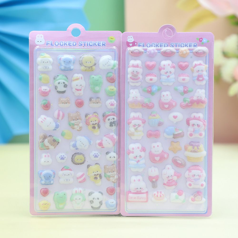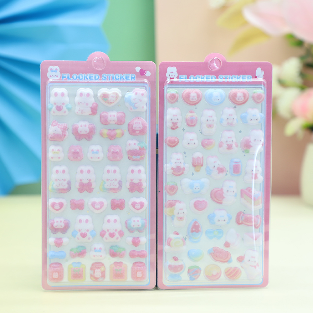 跨境热销3D浮雕植绒贴纸可爱小鼻嘎兔子动物儿童女孩手机装饰