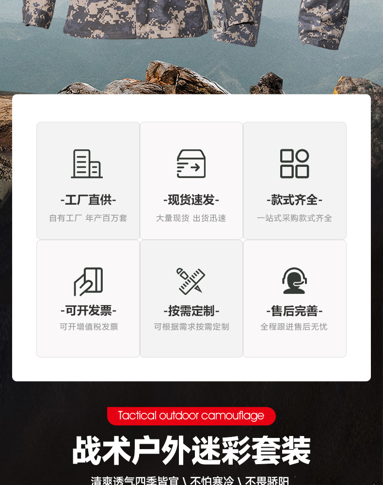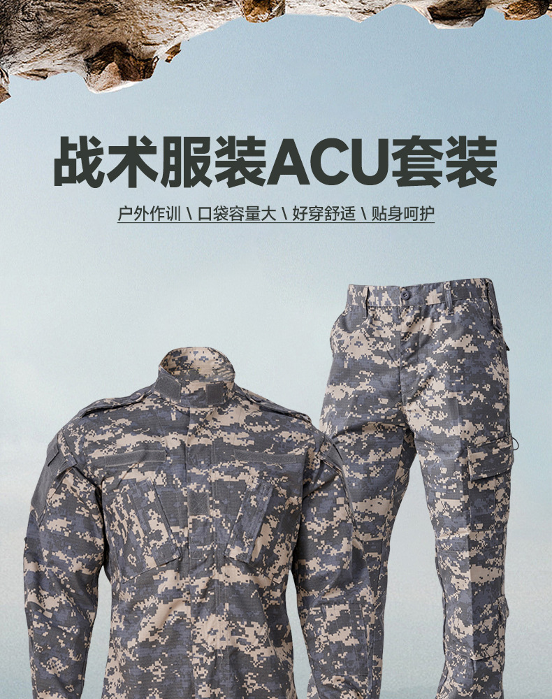迷彩服套装耐磨户外训练服装军绿ACU套服军训作训服迷彩战术短袖