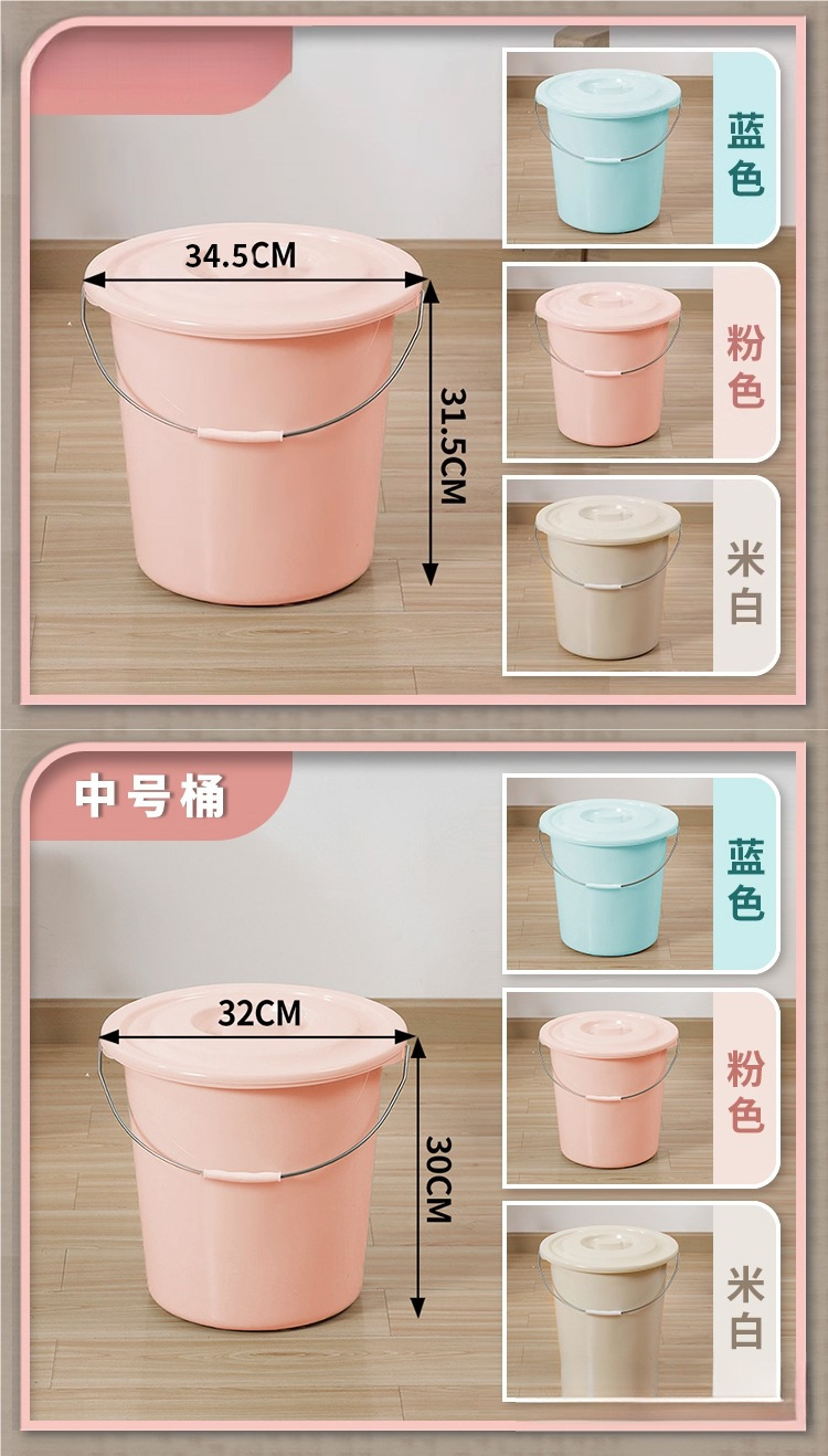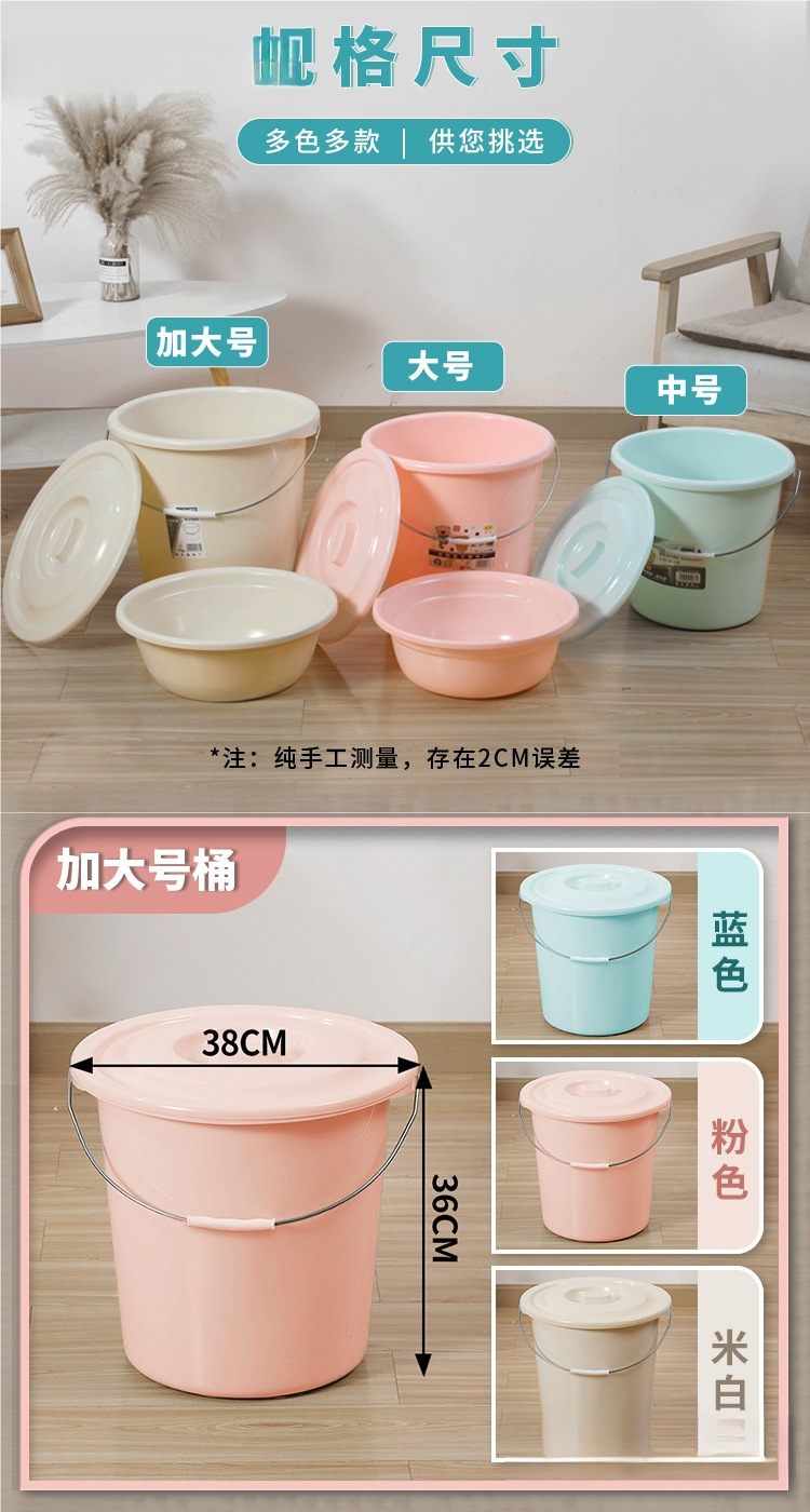 水桶家用大号带盖塑料脸盆学生宿舍用洗澡桶加厚耐用手提圆桶盆子