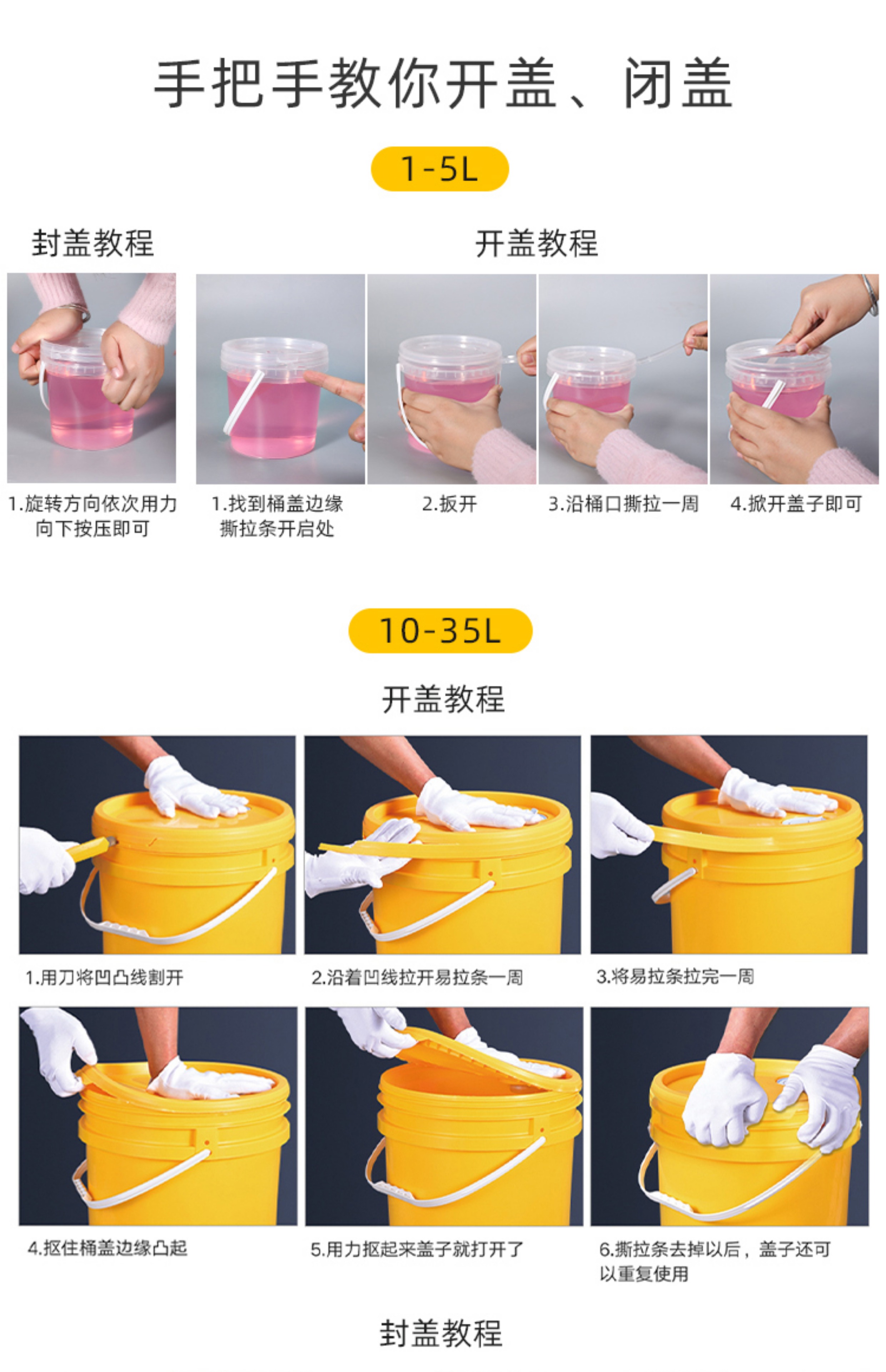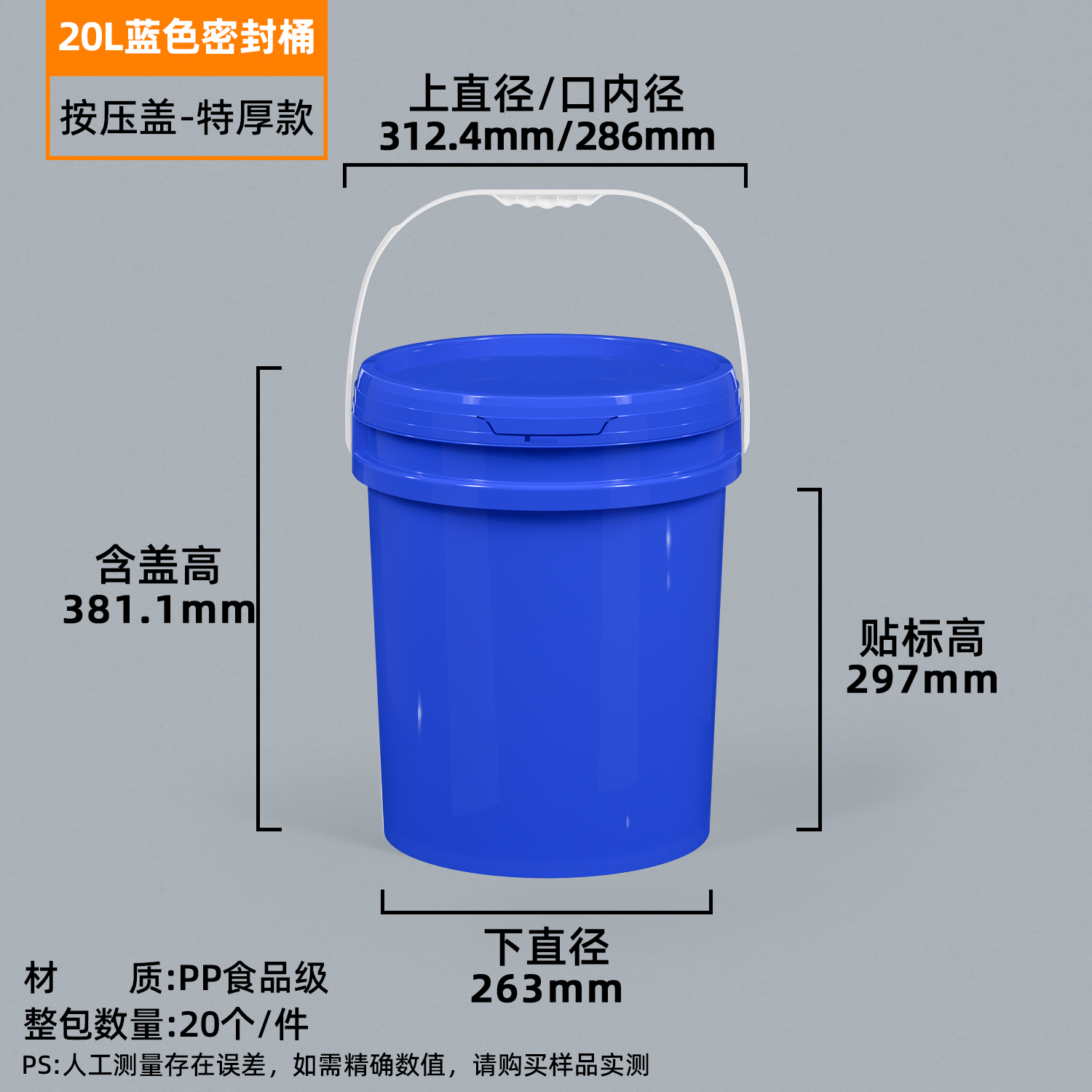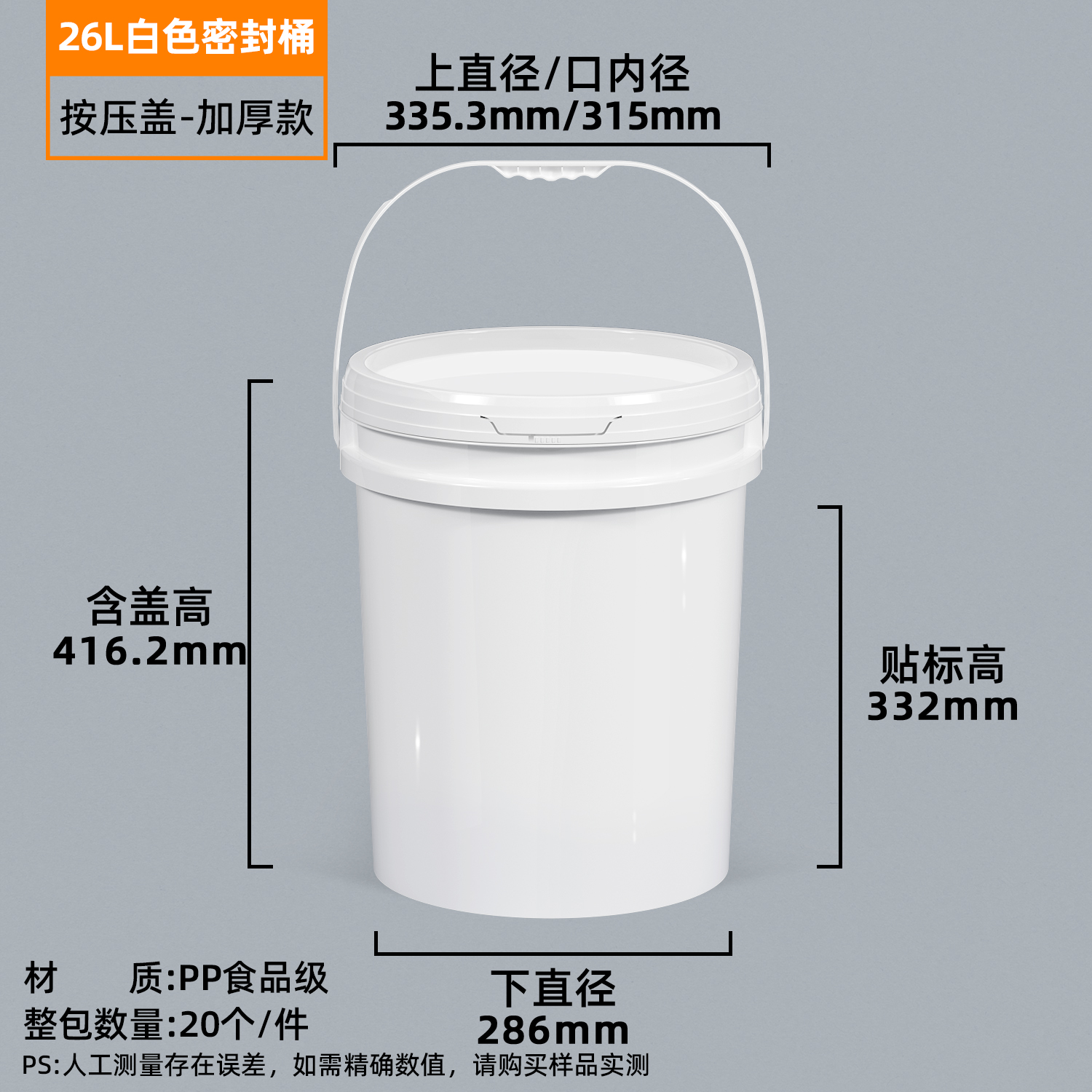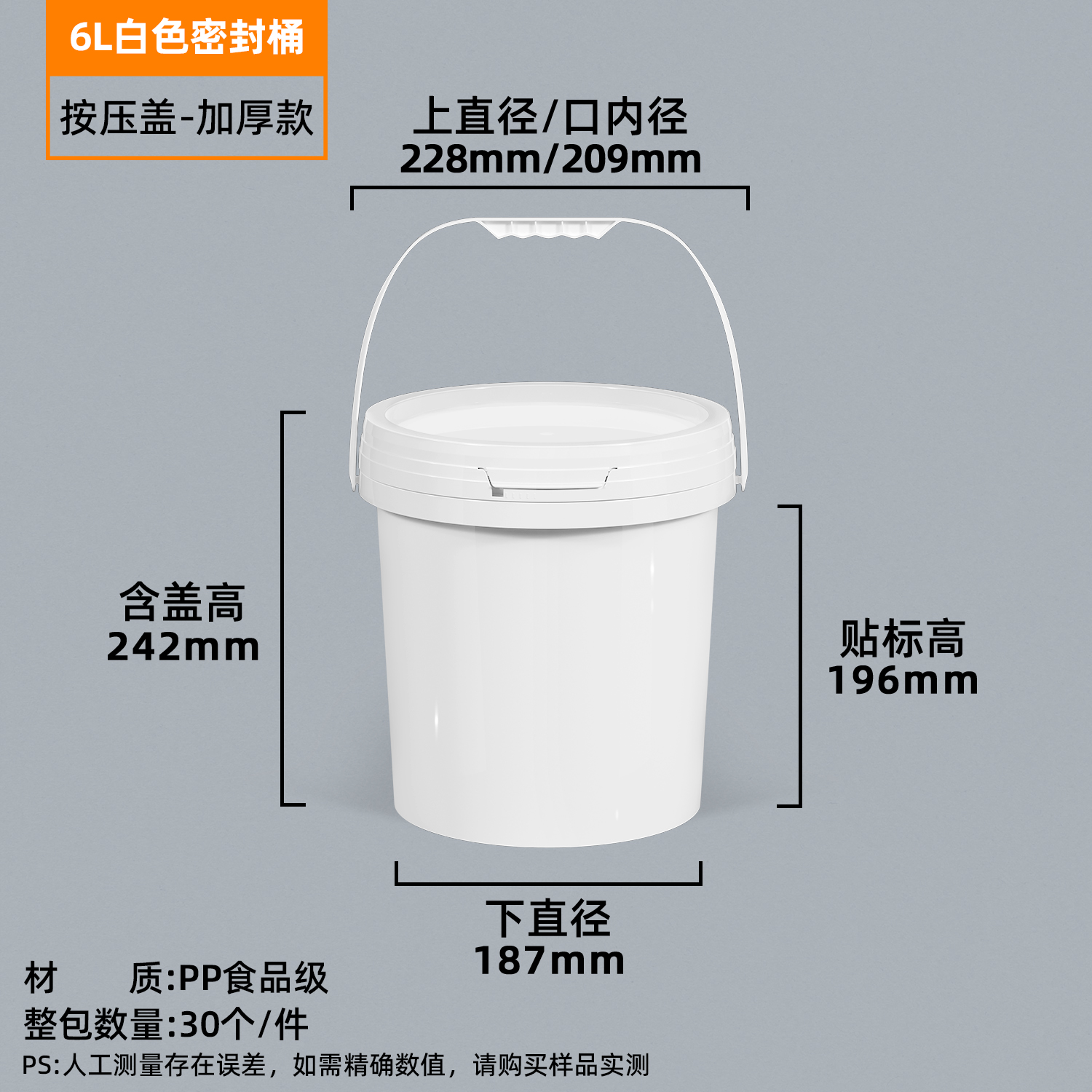 加厚塑料桶透明圆桶油漆涂料密封桶20公斤水桶食品级带盖海蜇桶5L