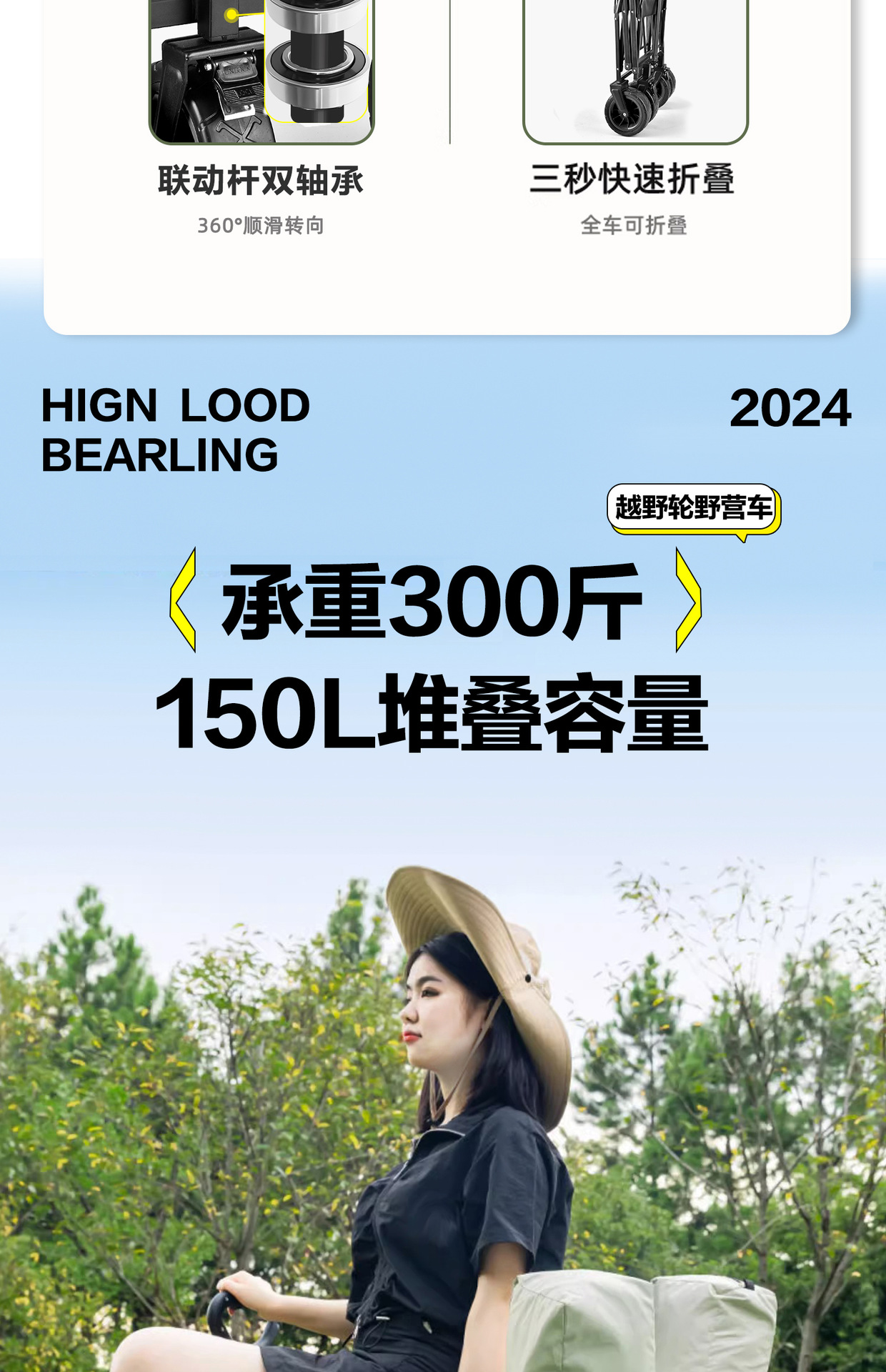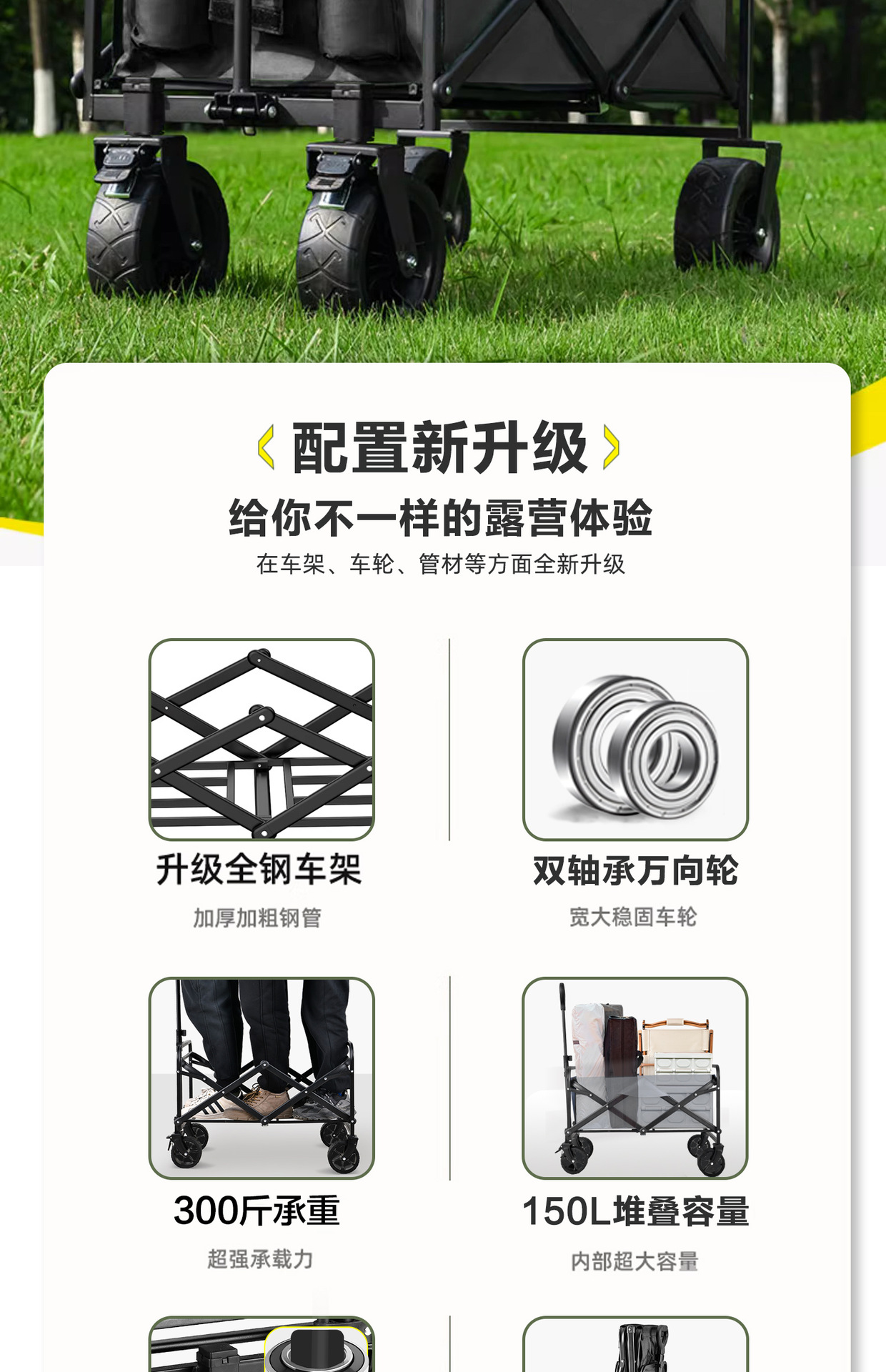 户外可折叠营地车露营车小推车野餐车便携式郊游野营手拉杆车拖车