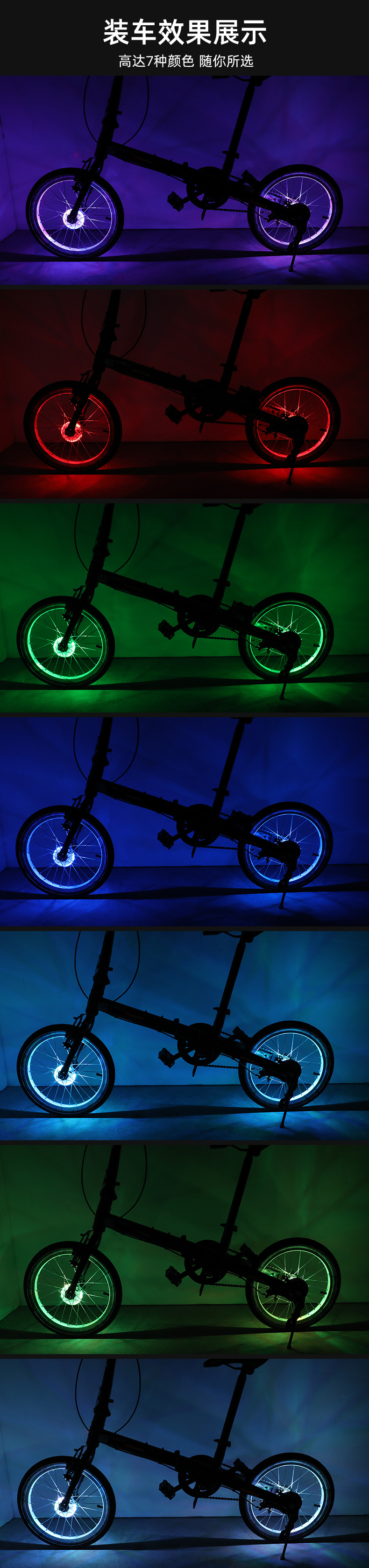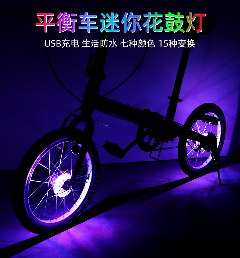 自行车充电花鼓灯儿童平衡车风火轮装饰辐条七彩LED感应轮毂灯