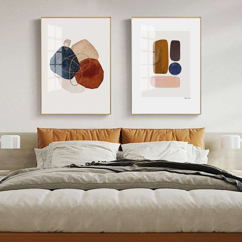 跨境轻奢抽象几何色块沙发背景墙卧室客厅帆布装饰无框画批发打印