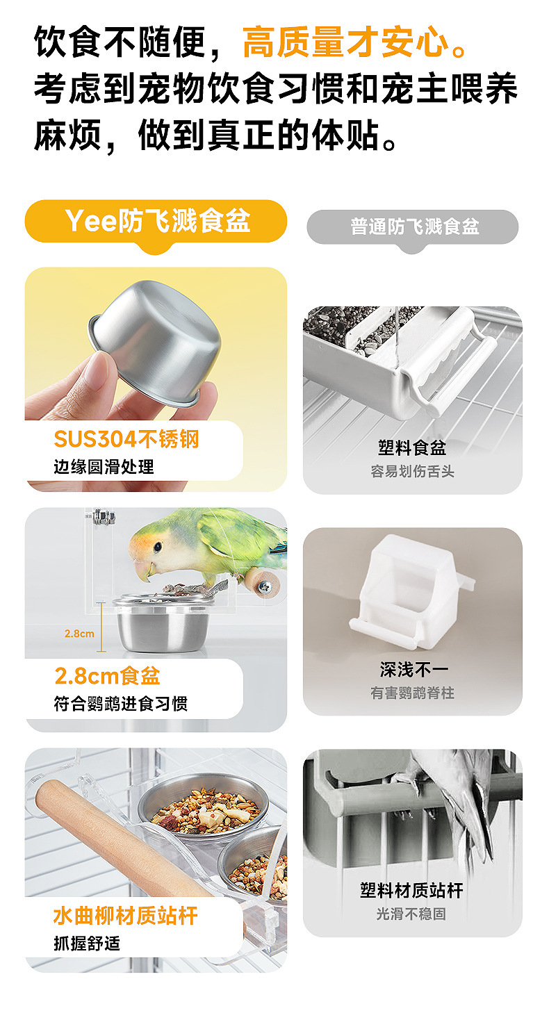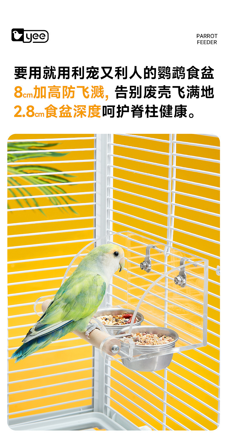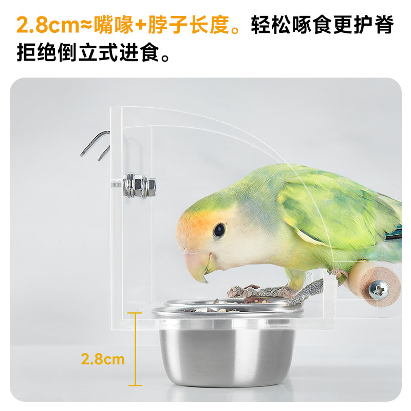 yee鹦鹉防溅不锈钢食盆喂食器鸟用防飞溅食盒虎皮牡丹玄凤用品