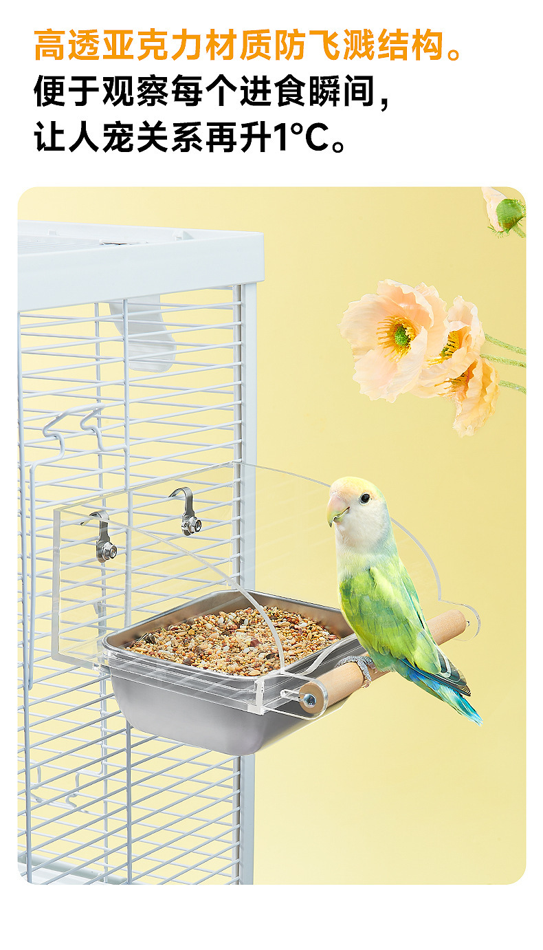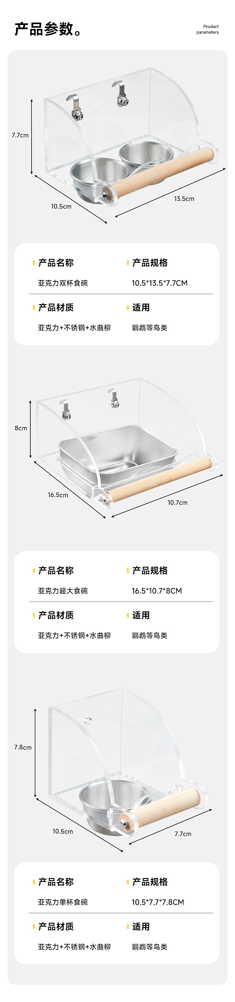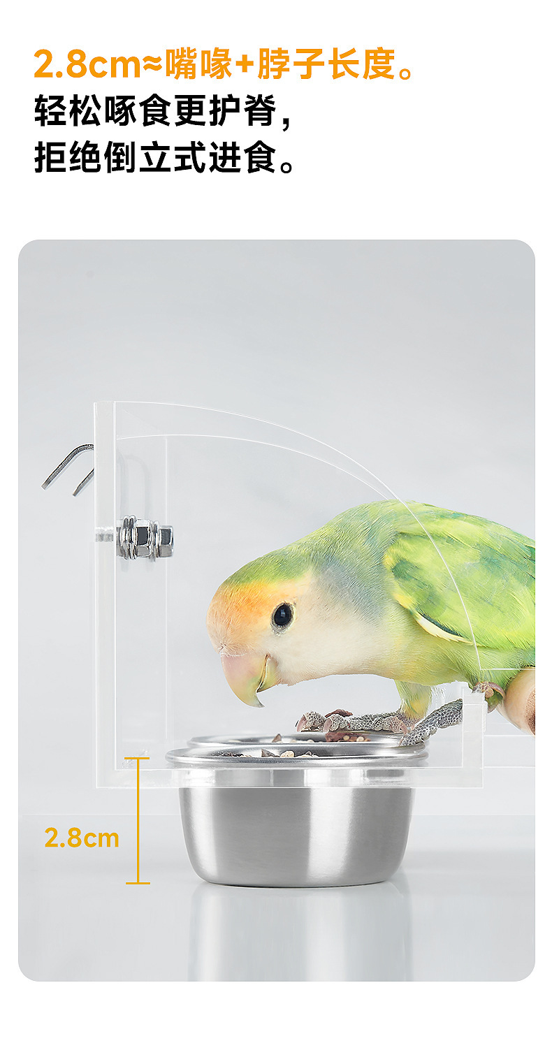 yee鹦鹉防溅不锈钢食盆喂食器鸟用防飞溅食盒虎皮牡丹玄凤用品