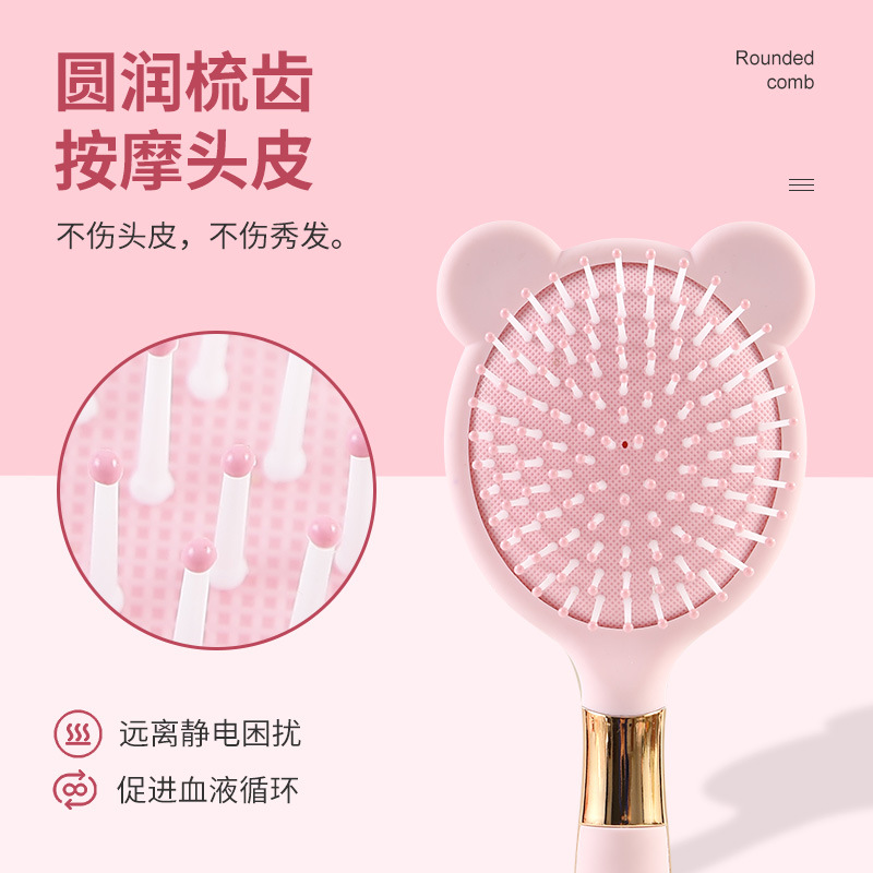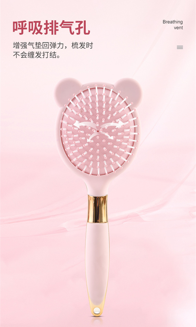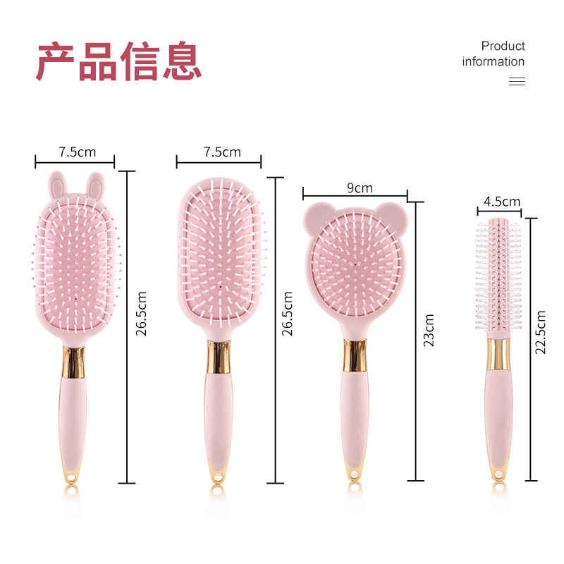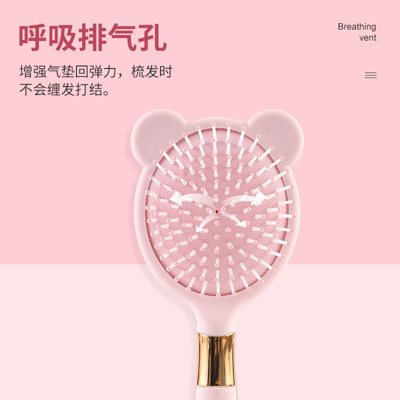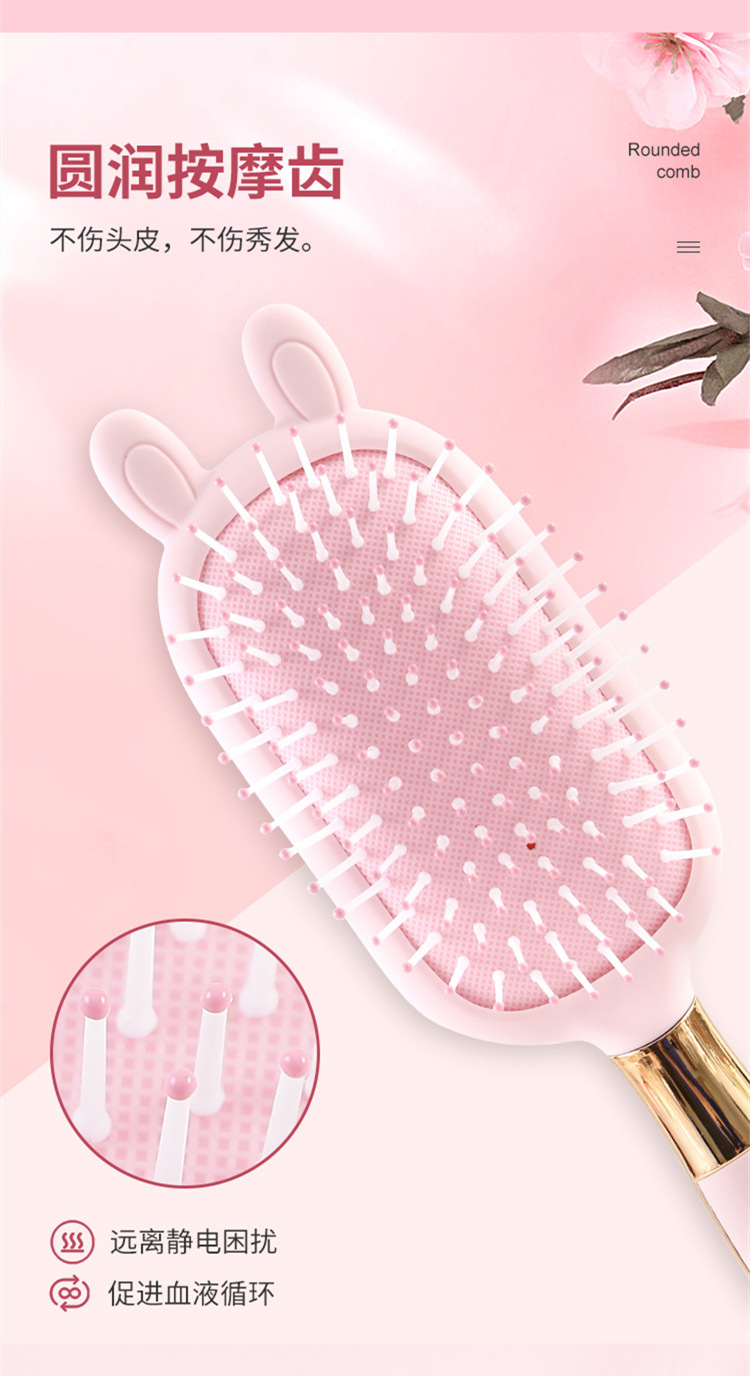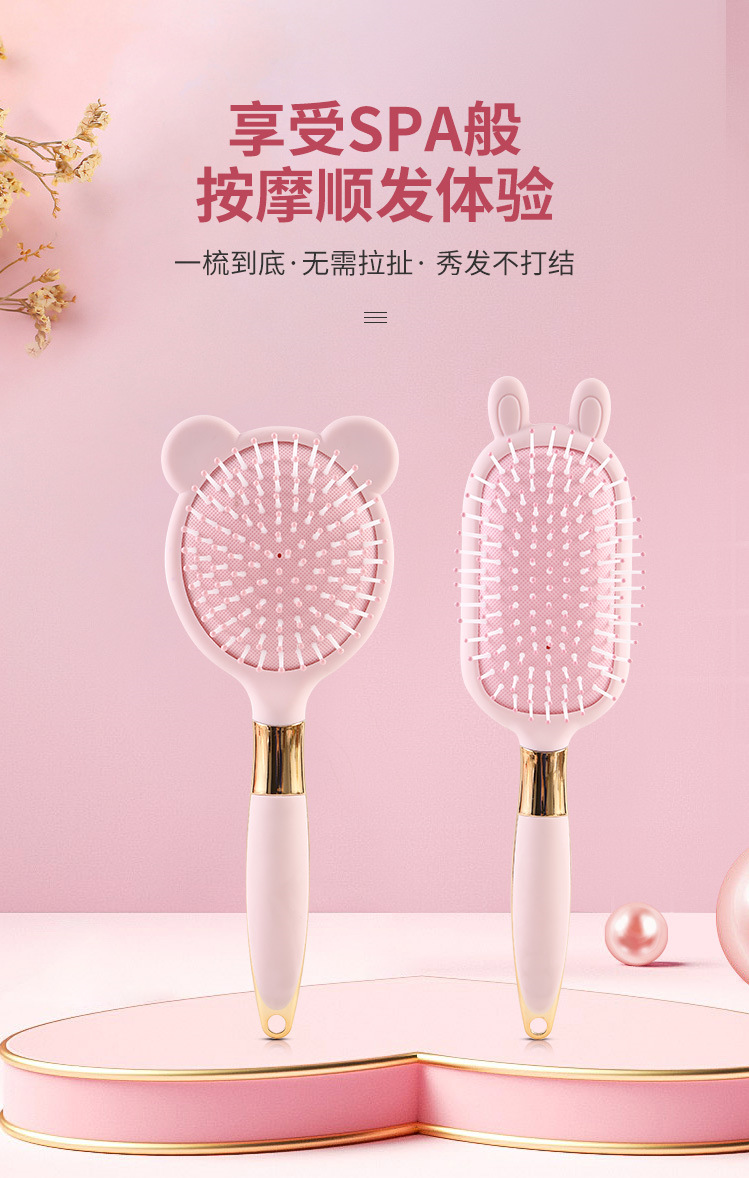 便携卡通粉色液态橡胶梳子小熊兔子按摩梳可爱造型卷发梳06柄