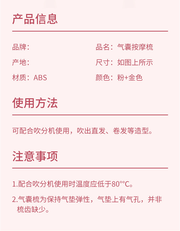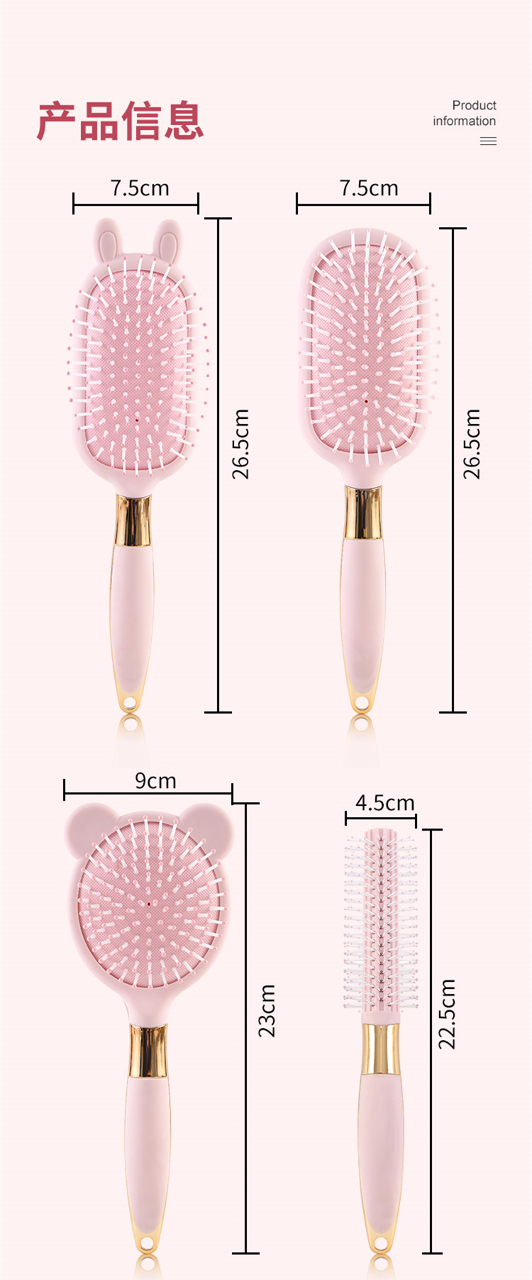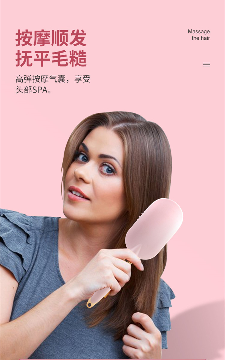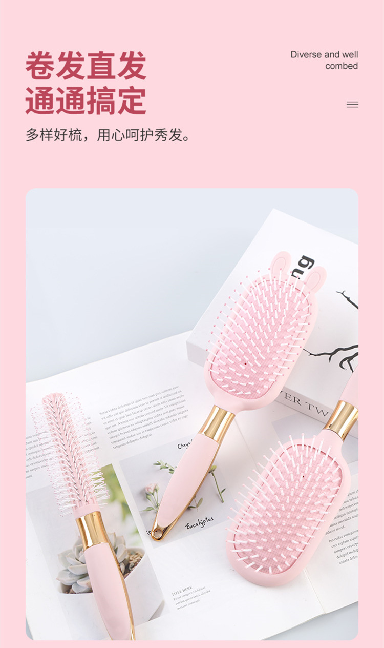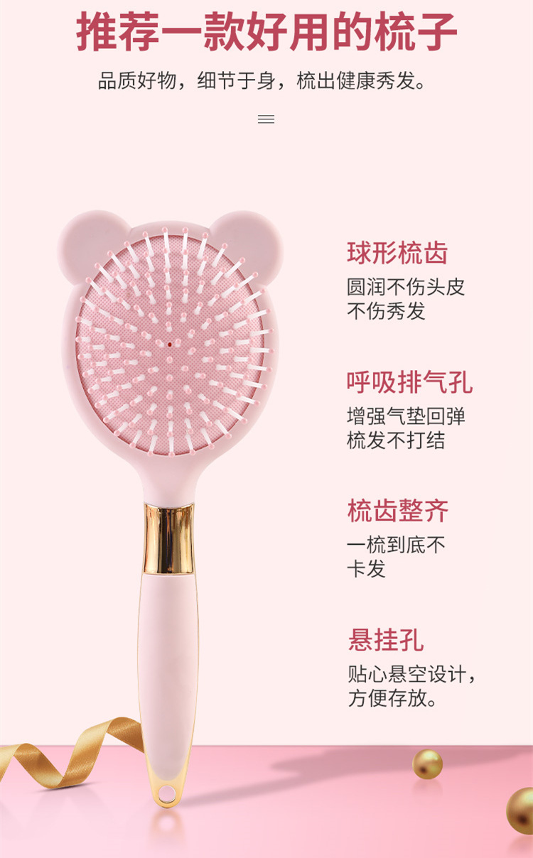 便携卡通粉色液态橡胶梳子小熊兔子按摩梳可爱造型卷发梳06柄
