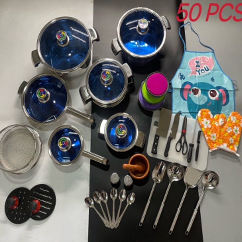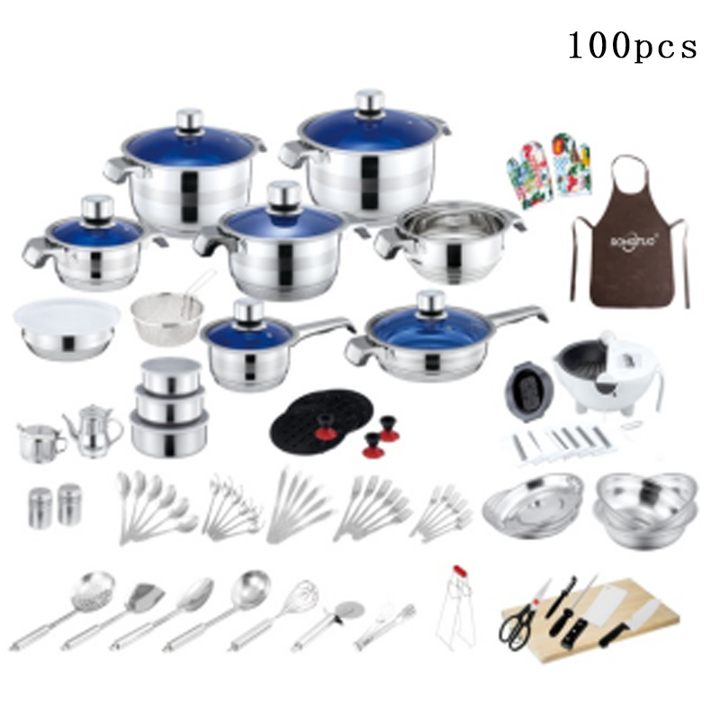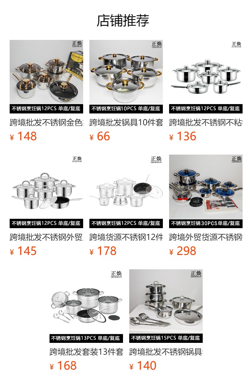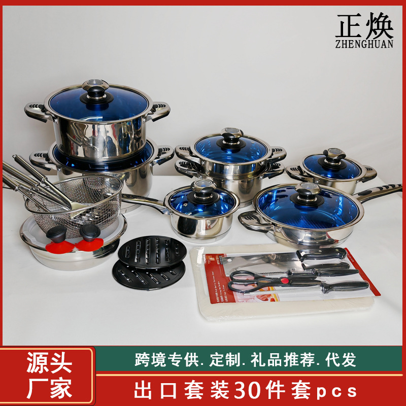 跨境外贸货源不锈钢锅具组合套锅30pcs加厚蒸锅汤锅奶锅煎锅套装