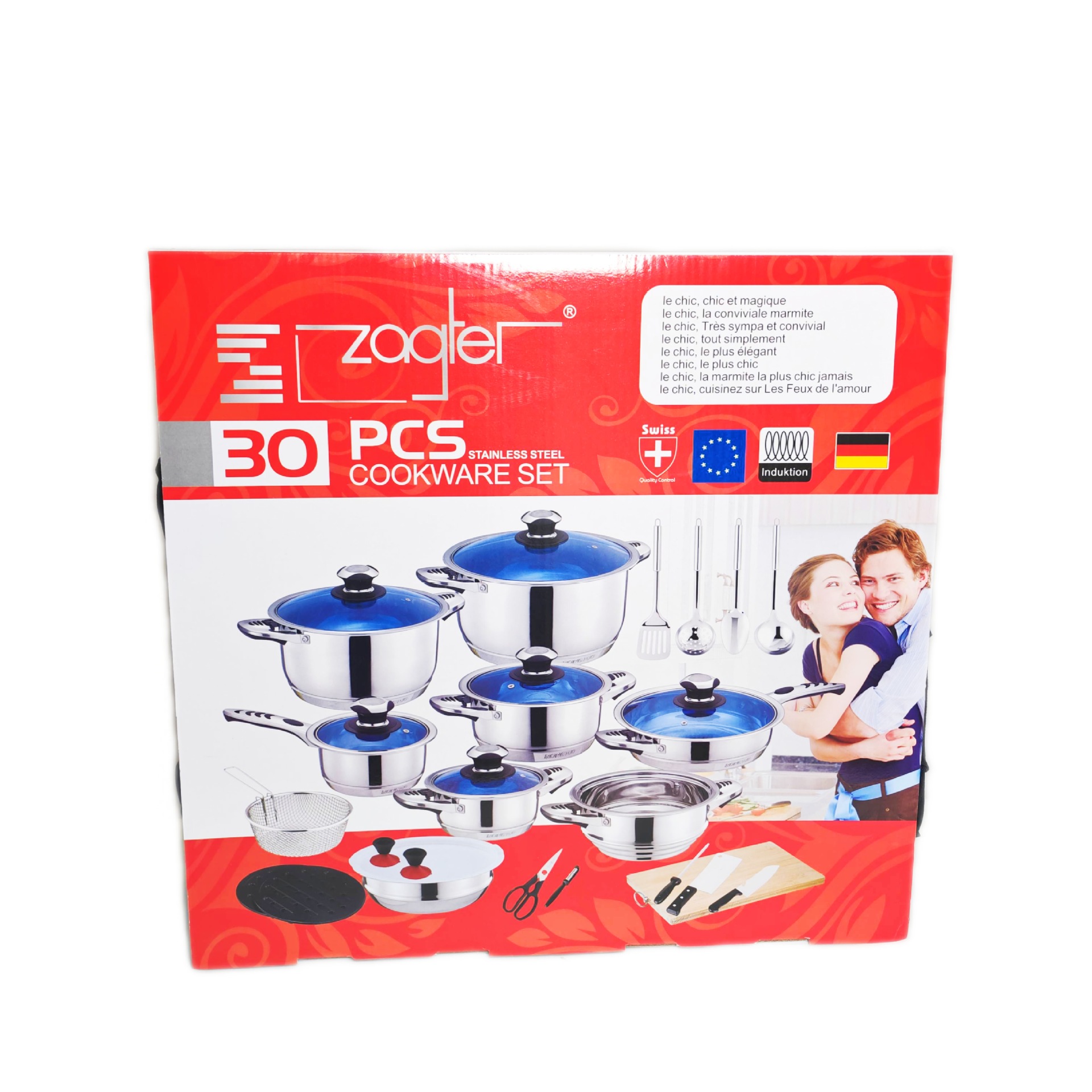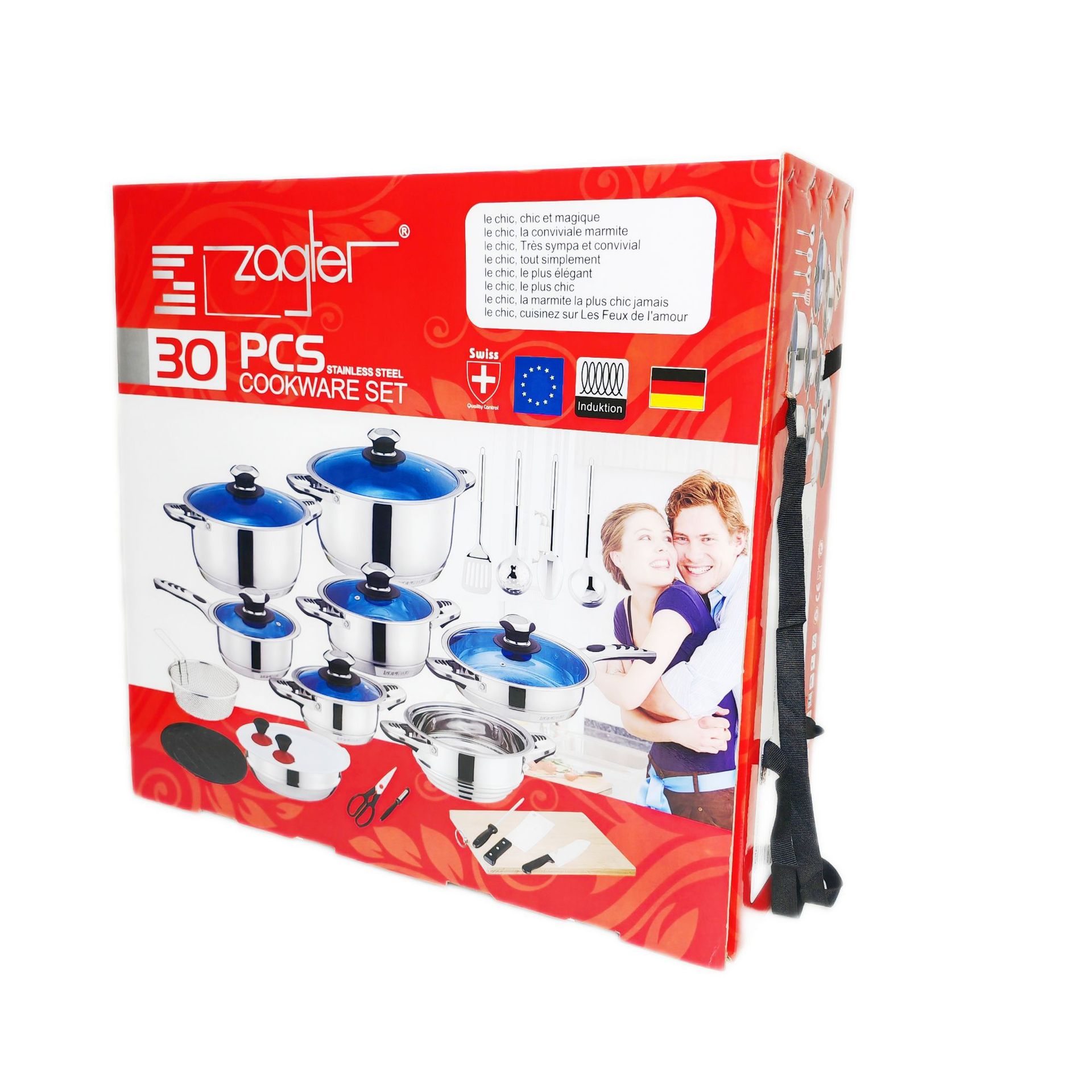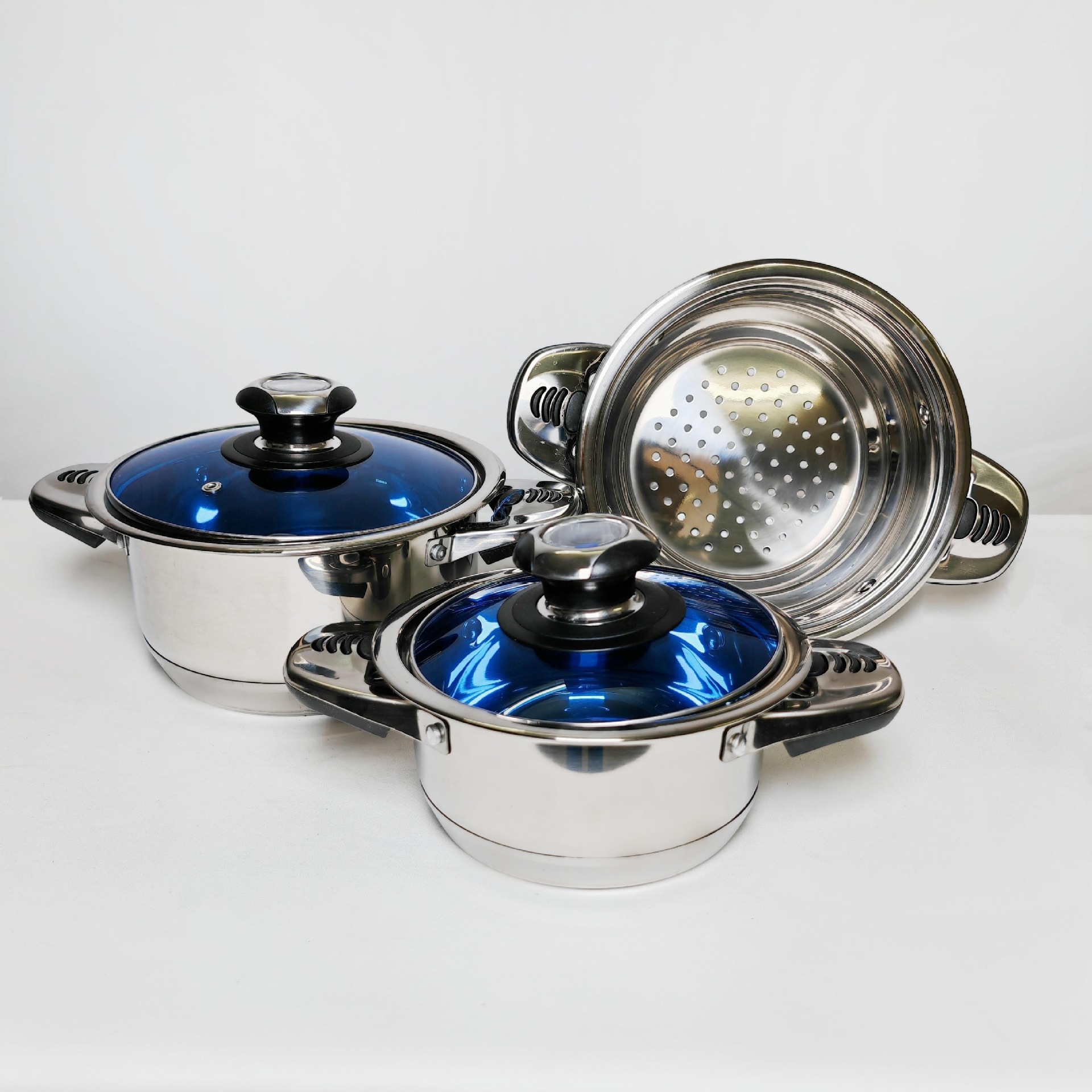 跨境外贸货源不锈钢锅具组合套锅30pcs加厚蒸锅汤锅奶锅煎锅套装