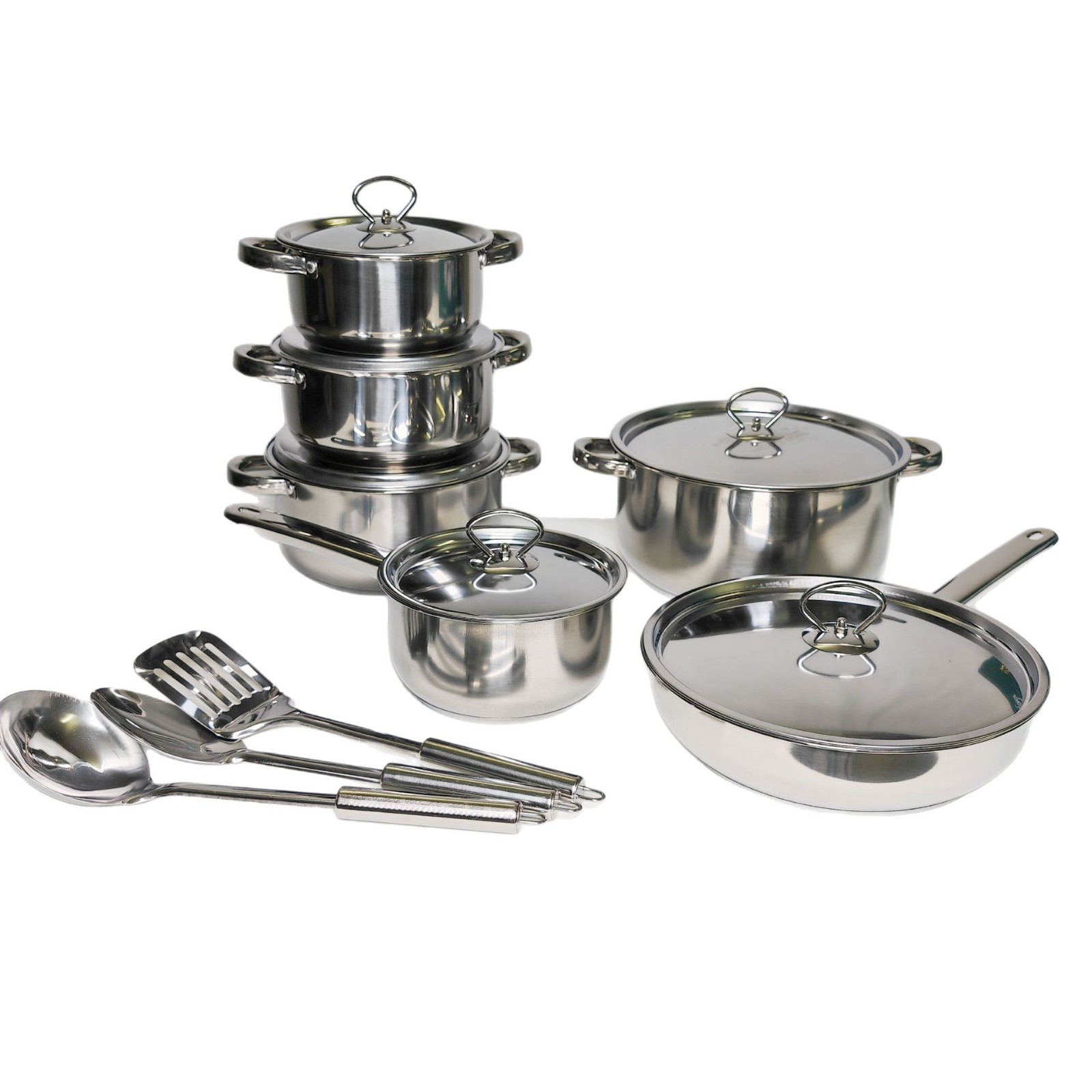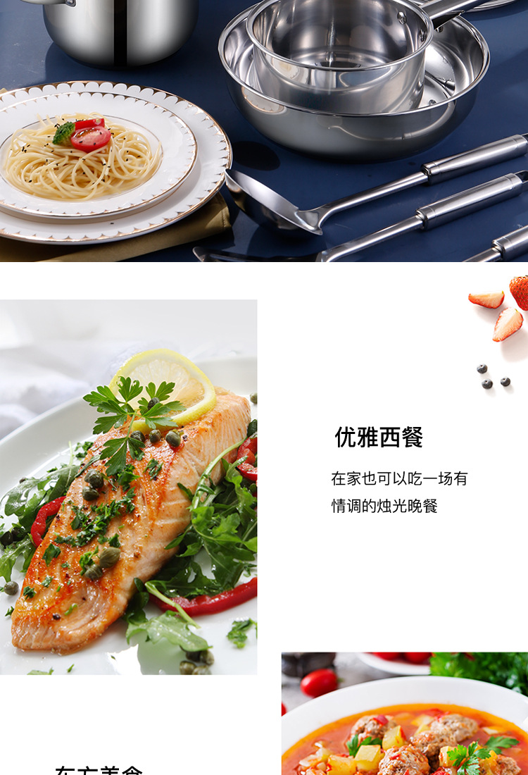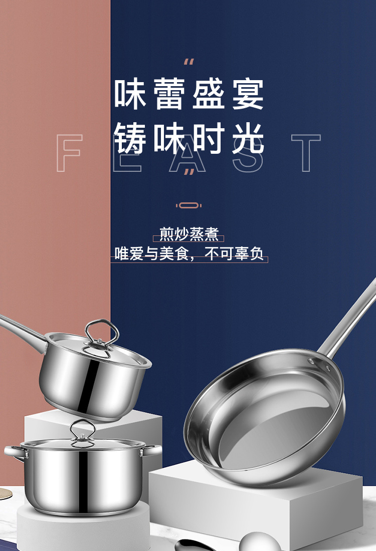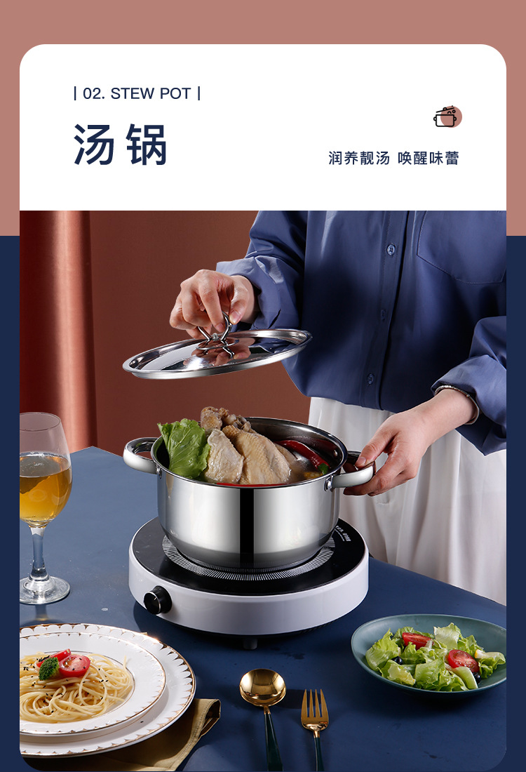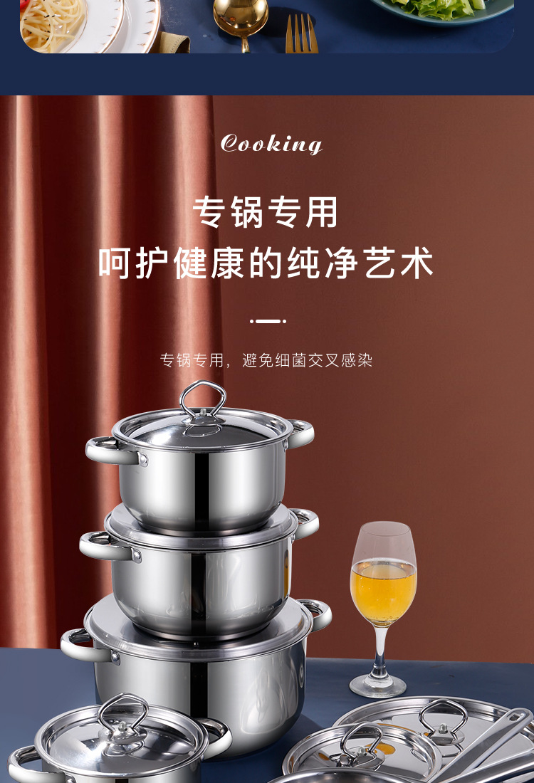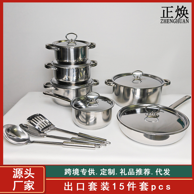 跨境批发不锈钢锅具套装外贸加厚厨具套装多层复合底15pcs套装锅