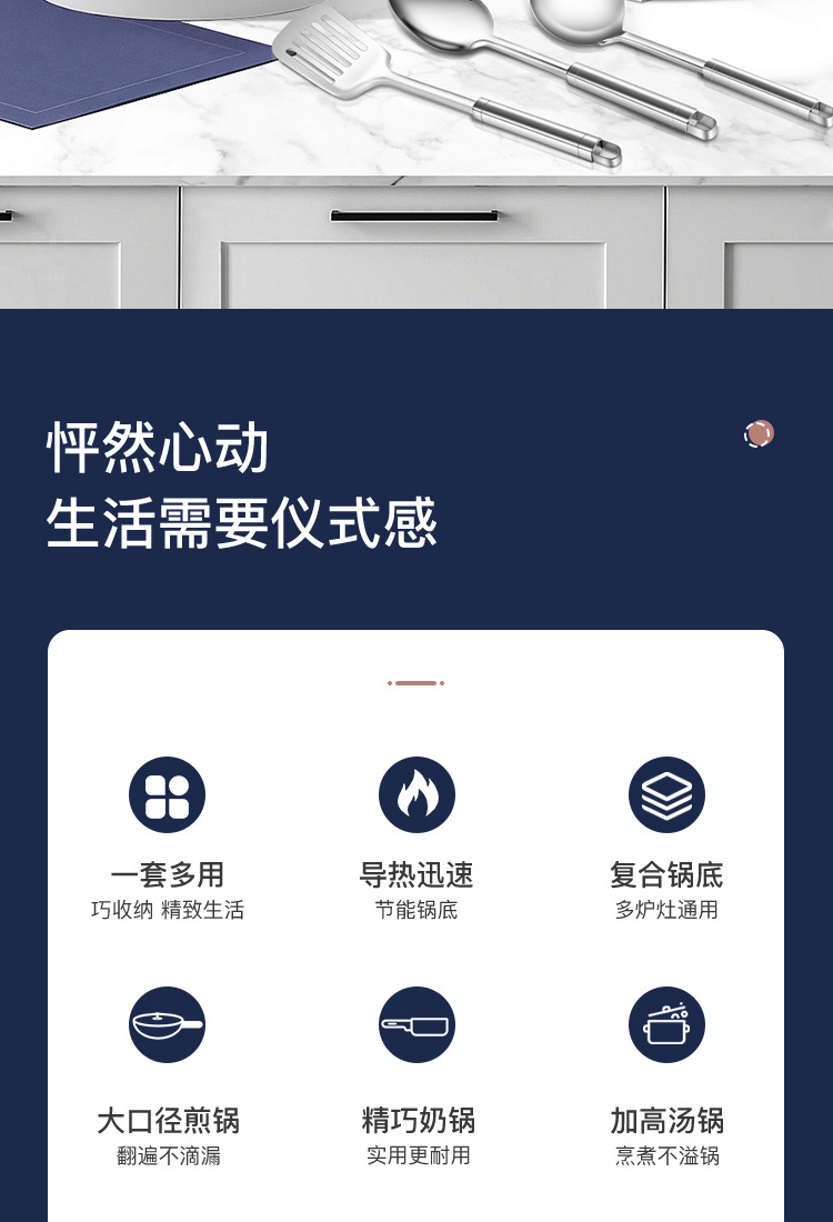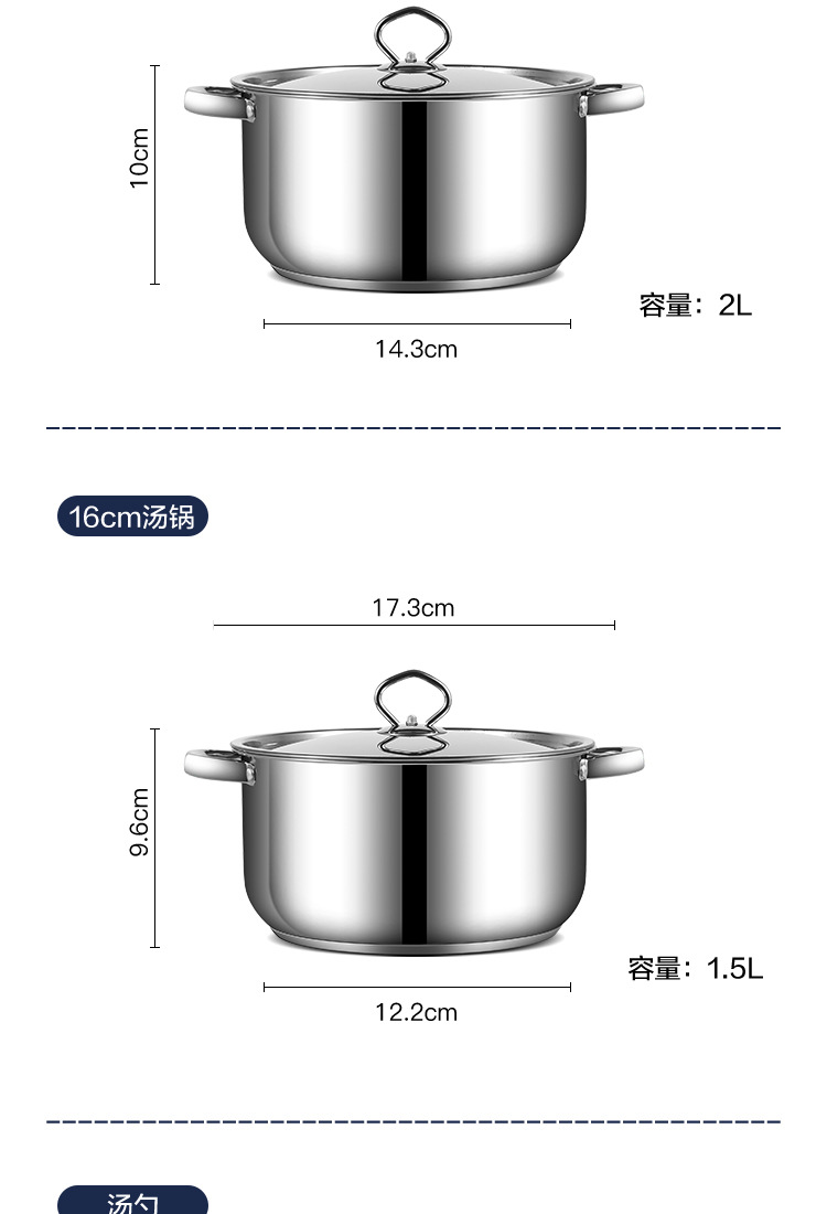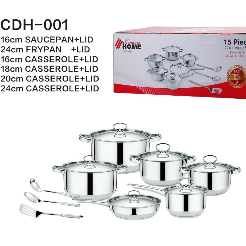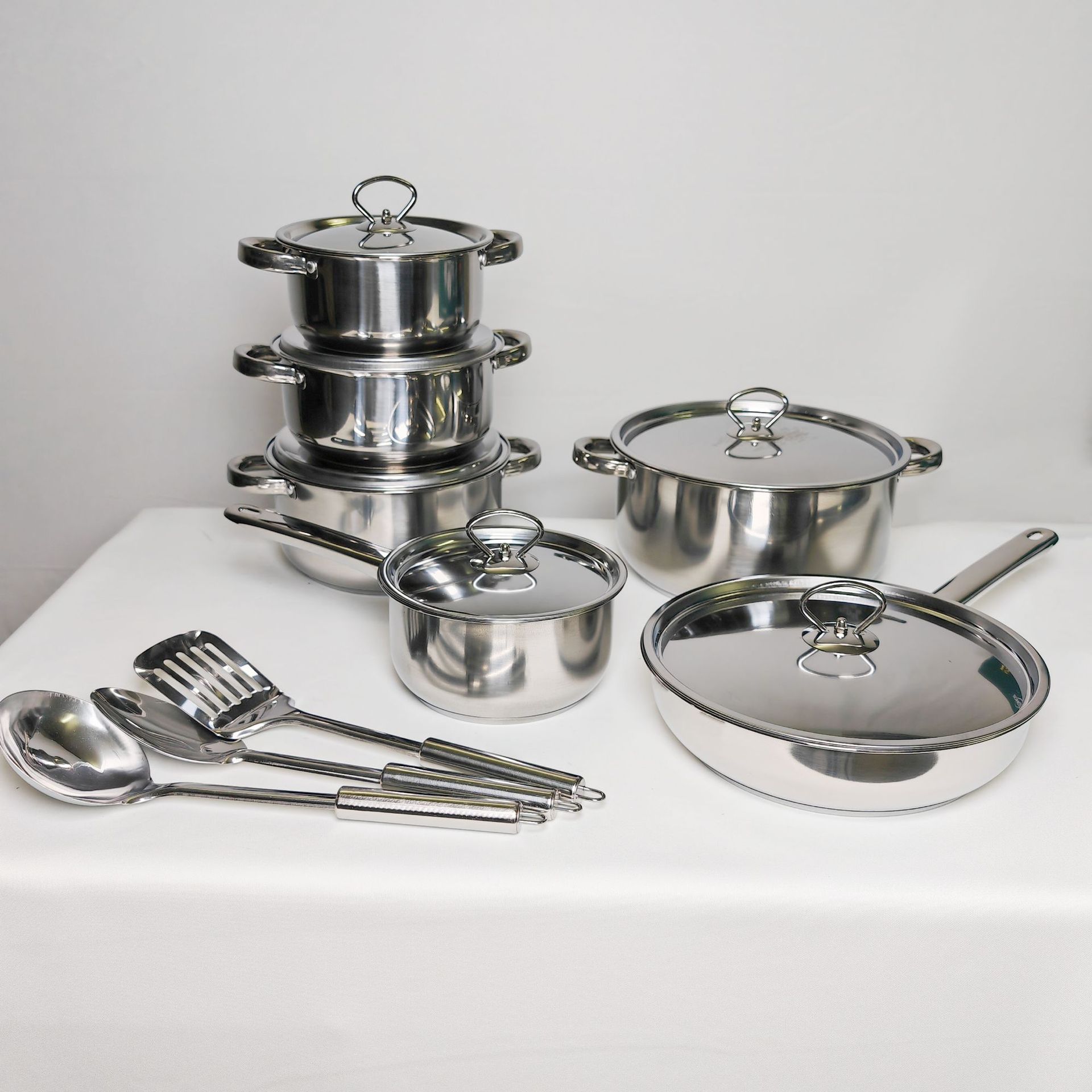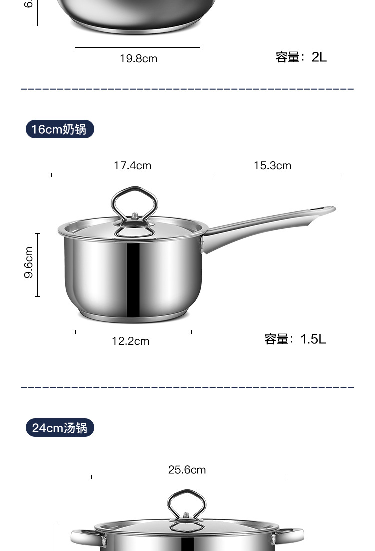 跨境批发不锈钢锅具套装外贸加厚厨具套装多层复合底15pcs套装锅