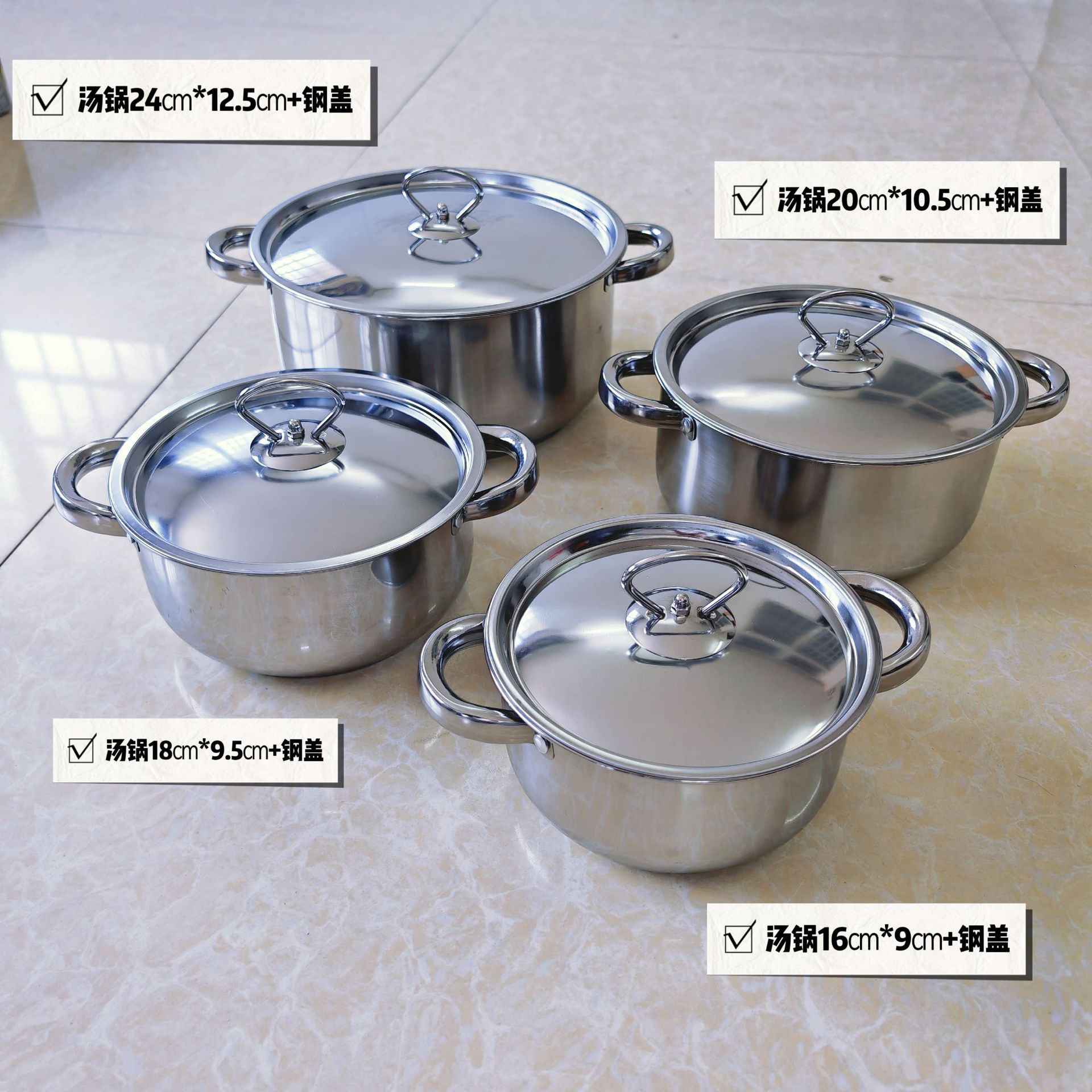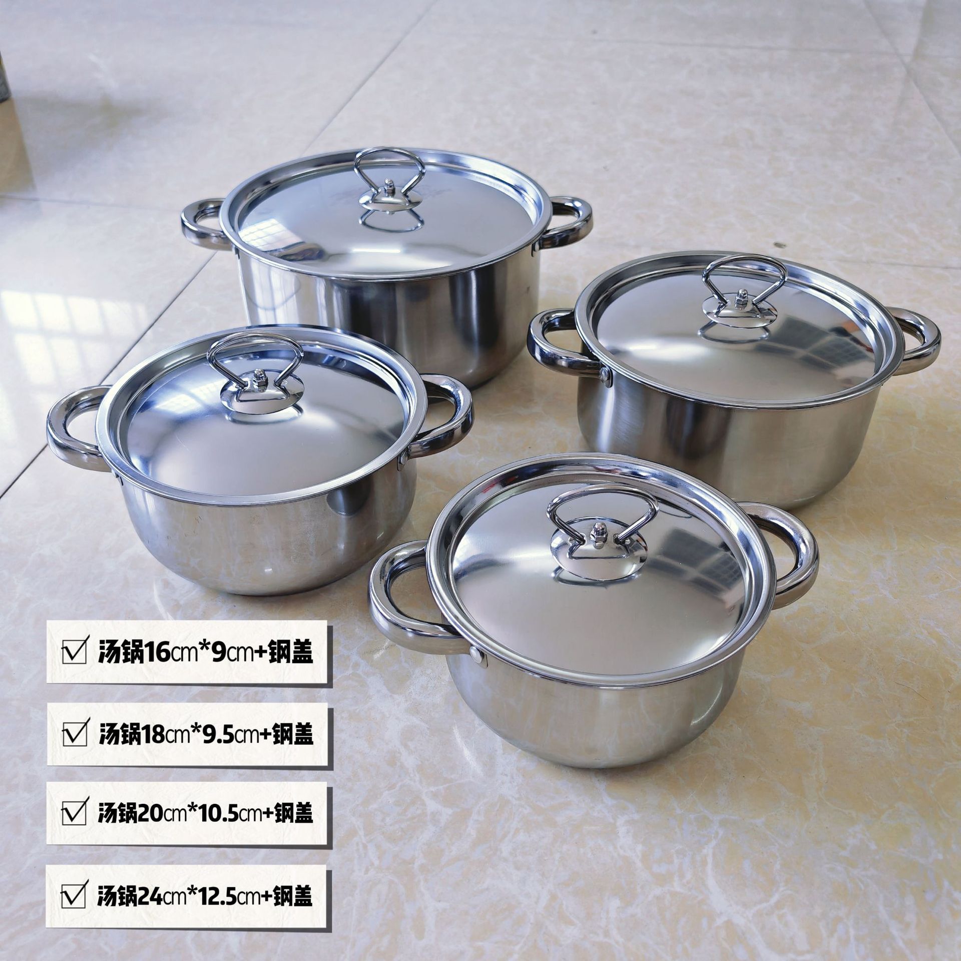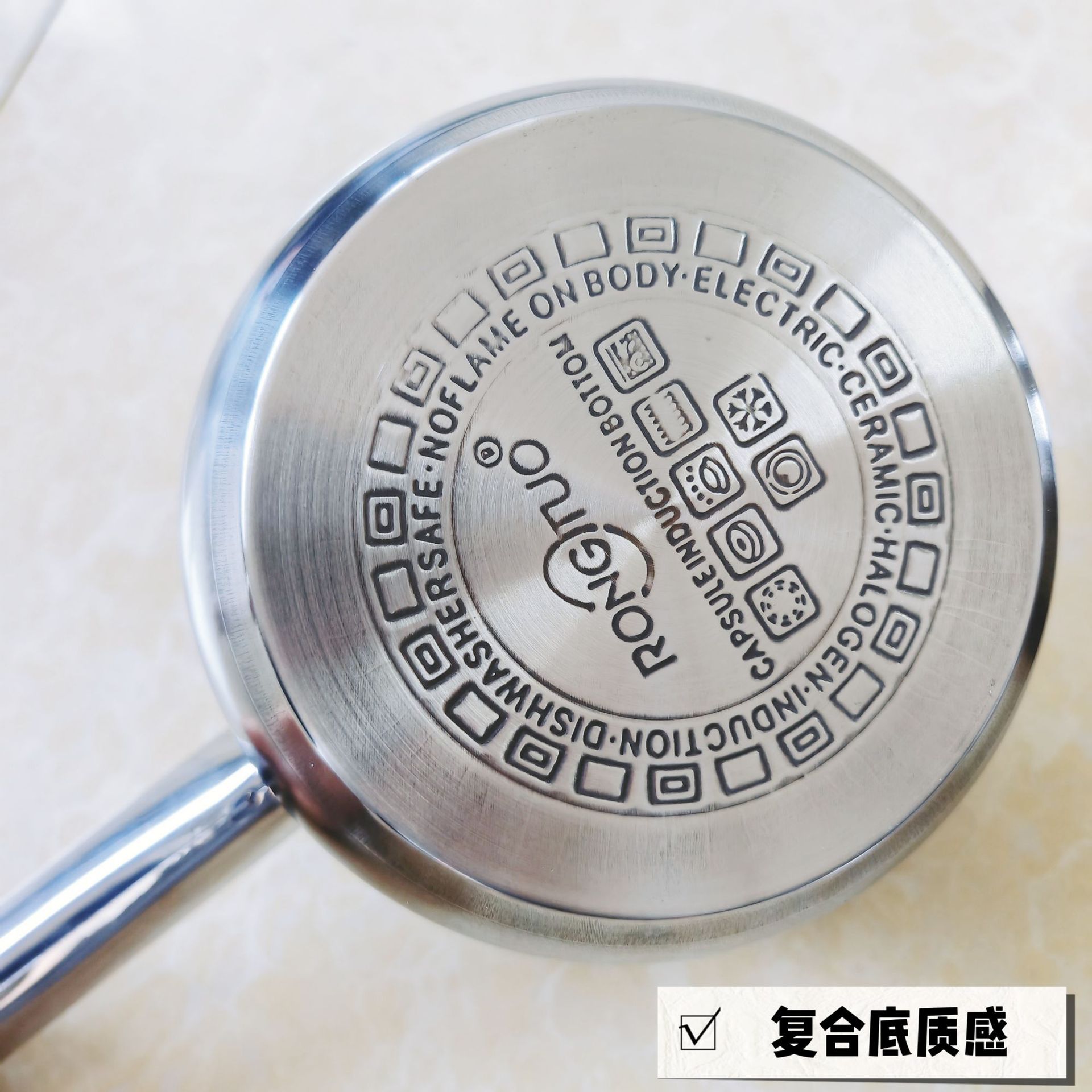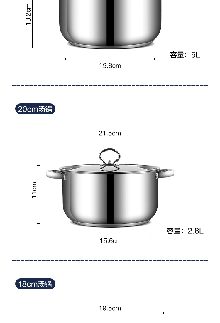跨境批发不锈钢锅具套装外贸加厚厨具套装多层复合底15pcs套装锅