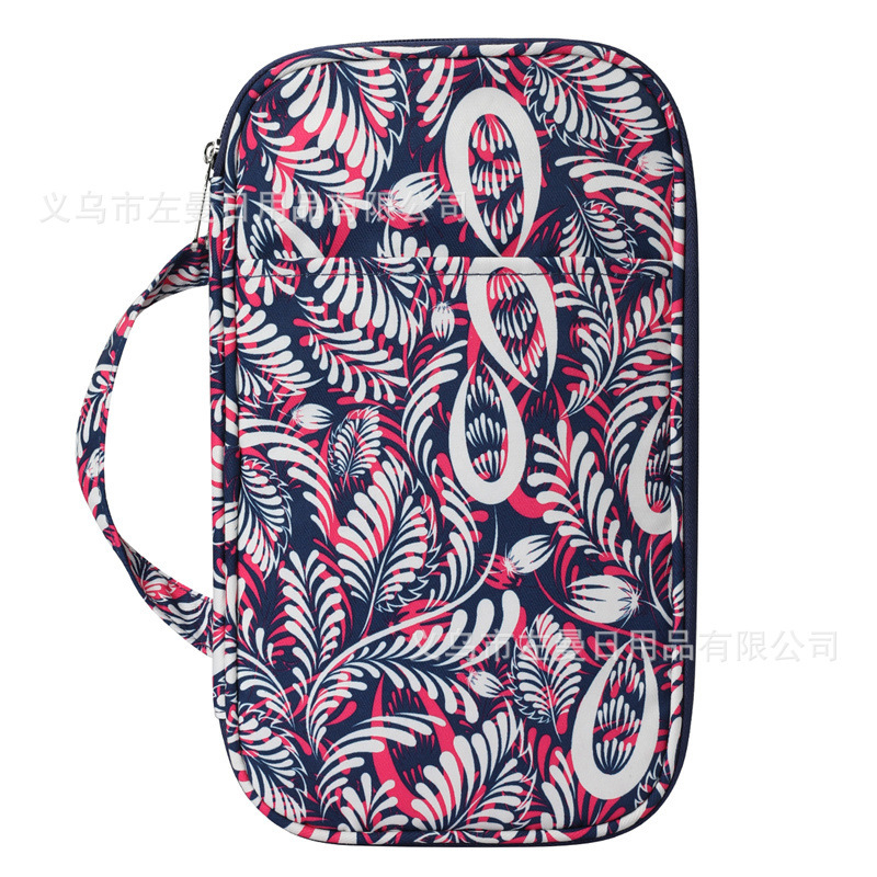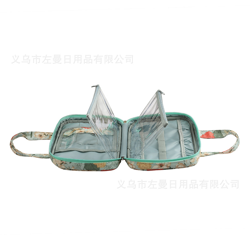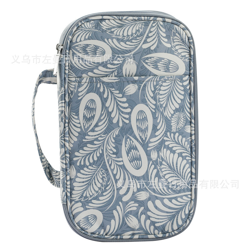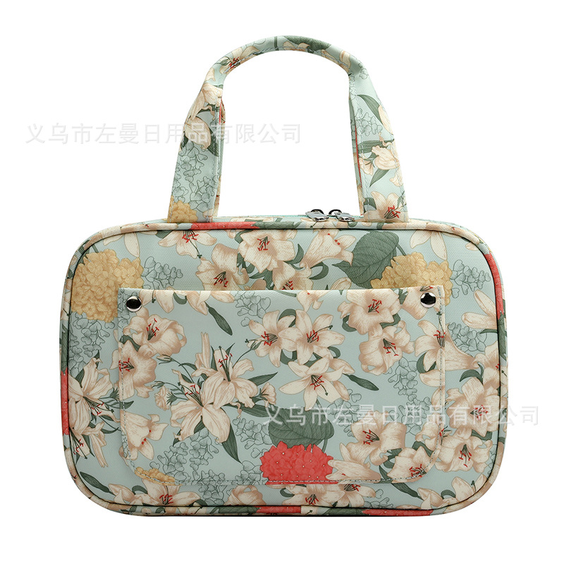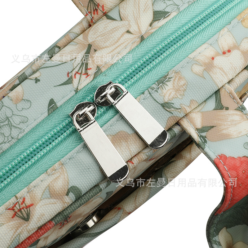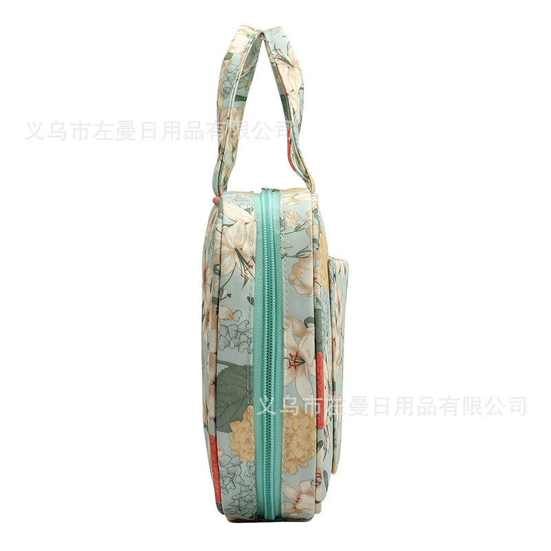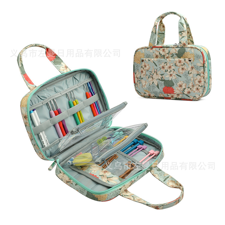 跨境新款绿色百合图案钩针收纳包毛线编织工具收纳袋牛津布手提包