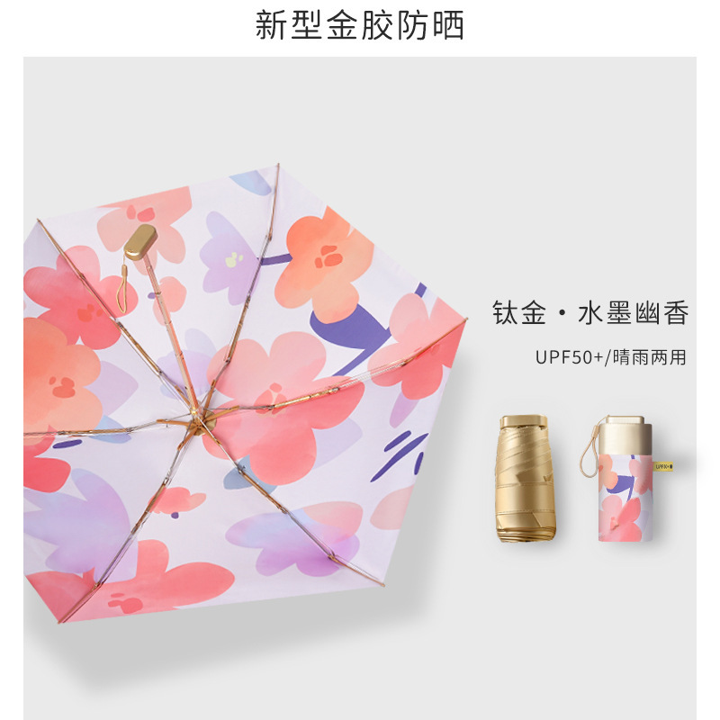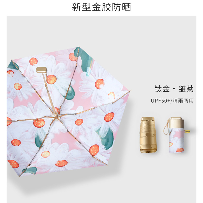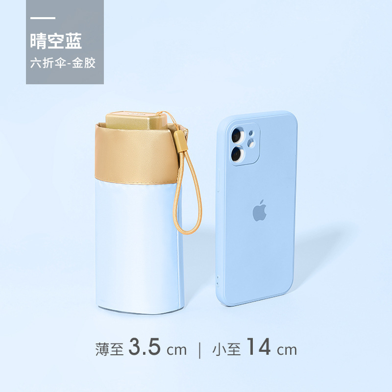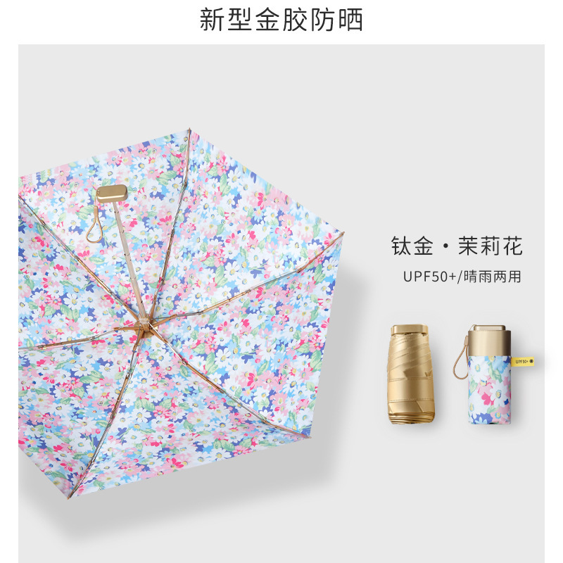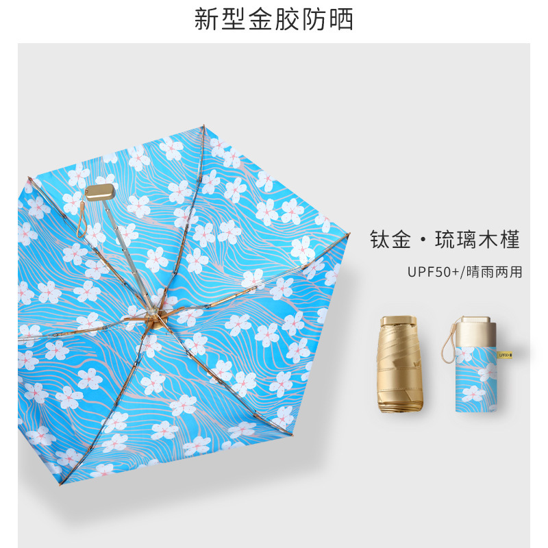 日本创意五折2023新款六折伞迷你14cm晴雨两用金胶遮阳伞口袋伞女