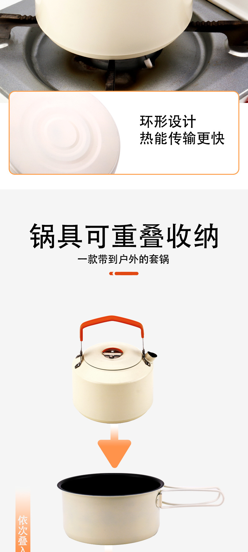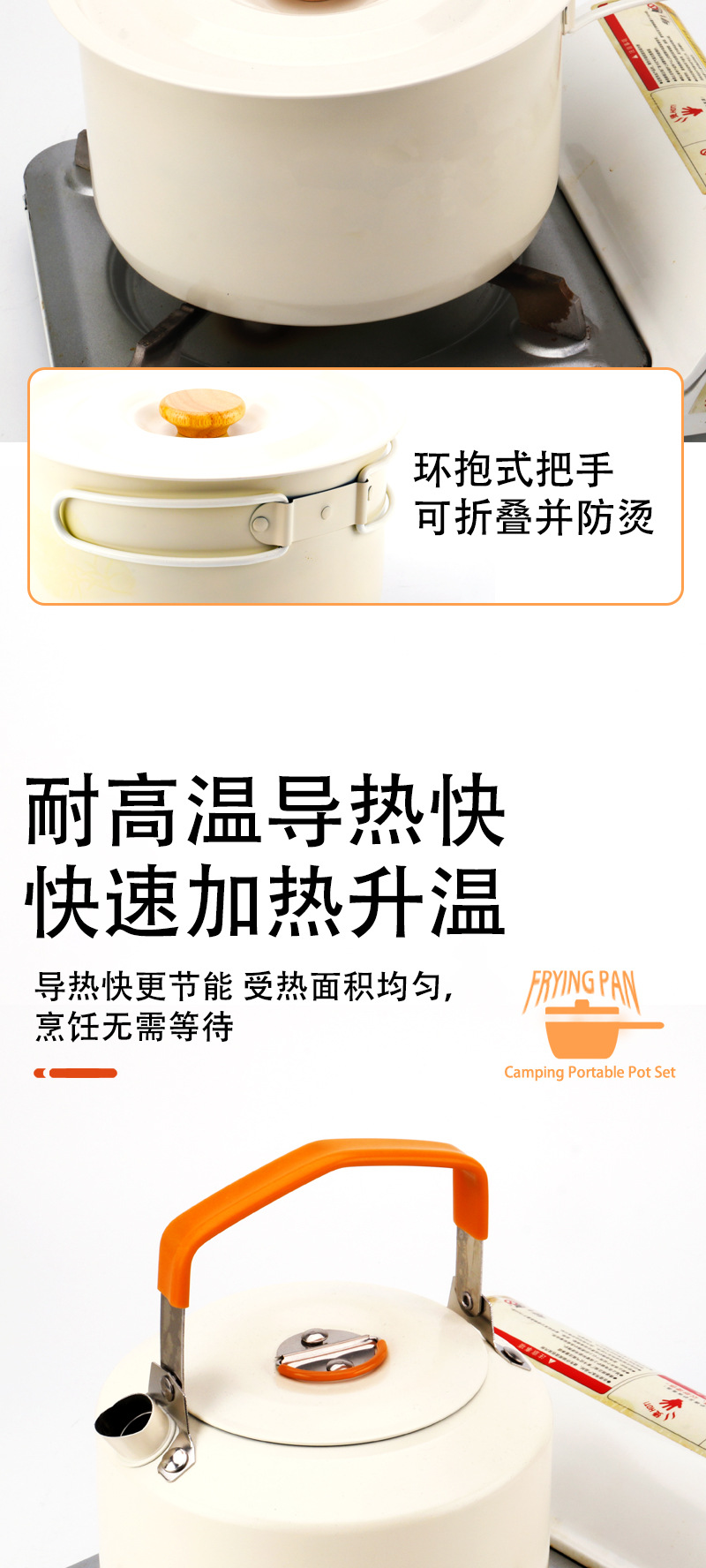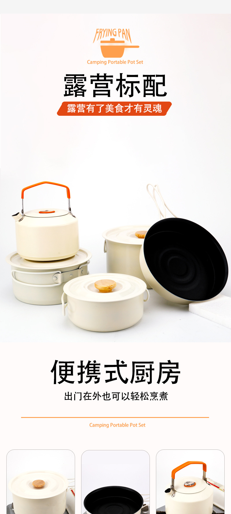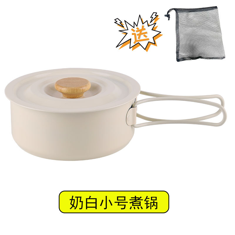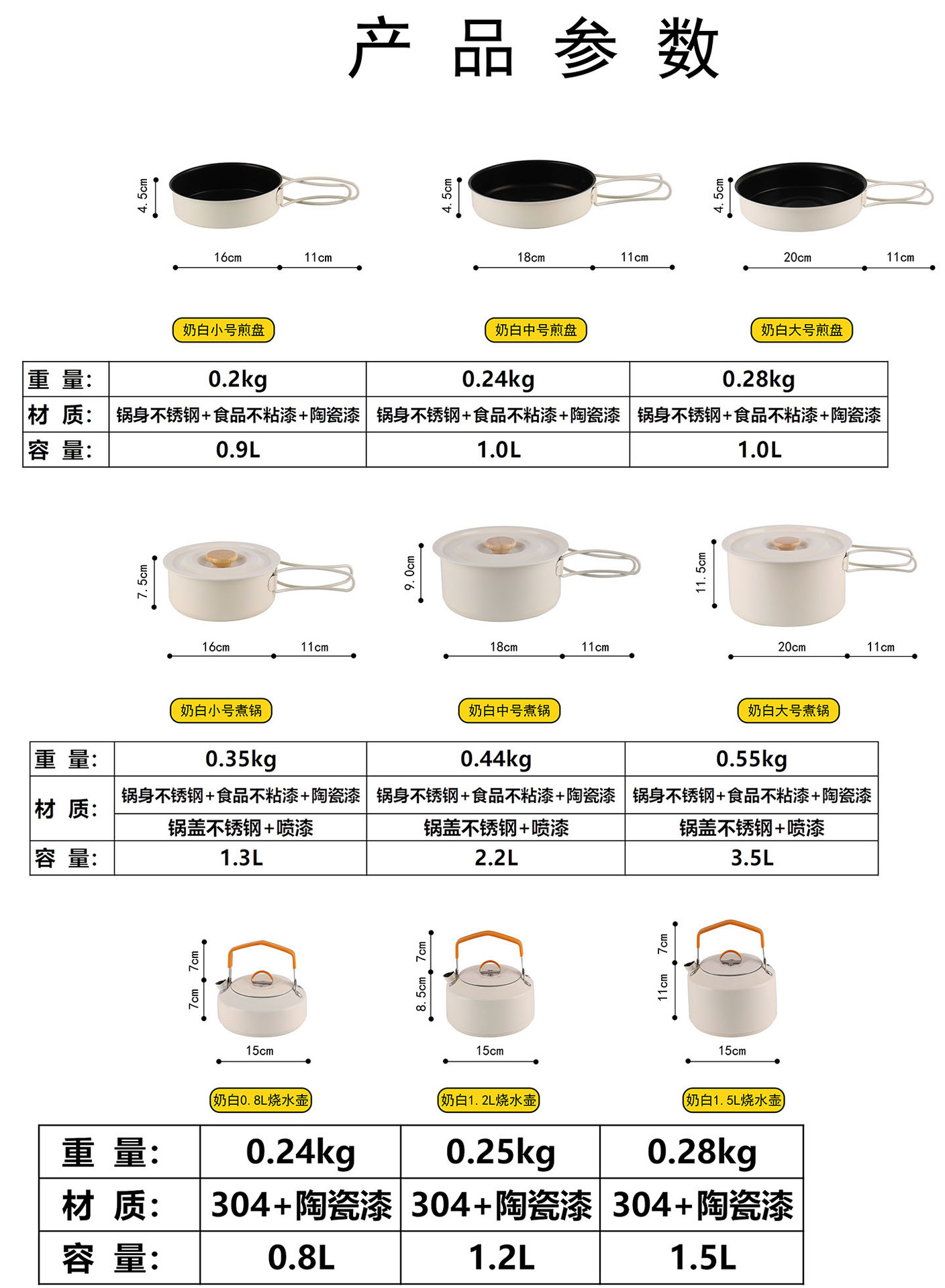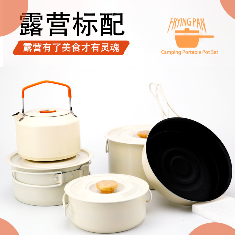 户外锅具露营野炊装备全套野营炊具套装烧水壶户外奶白陶瓷套锅