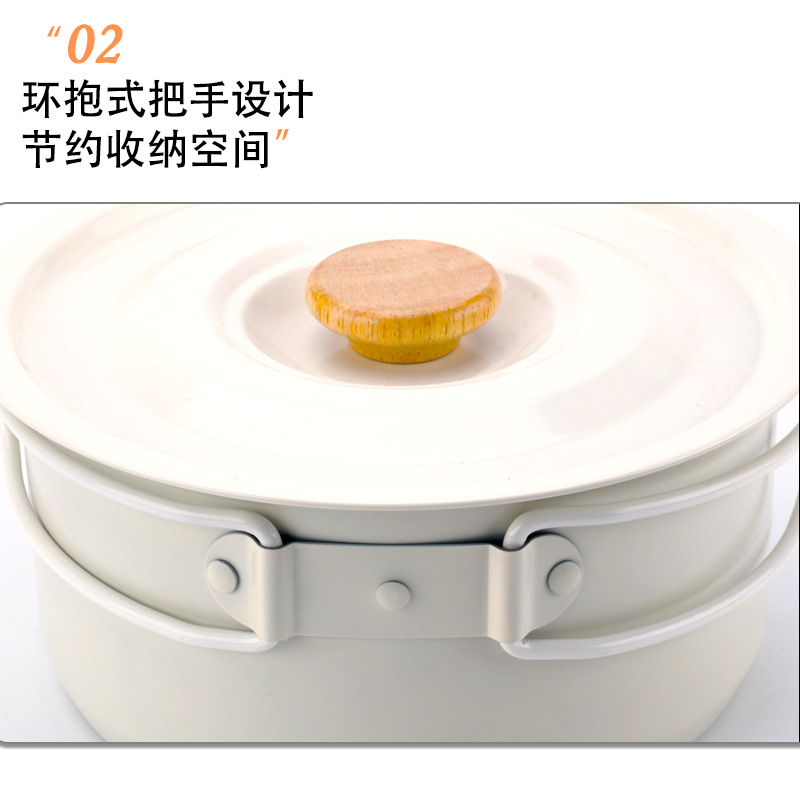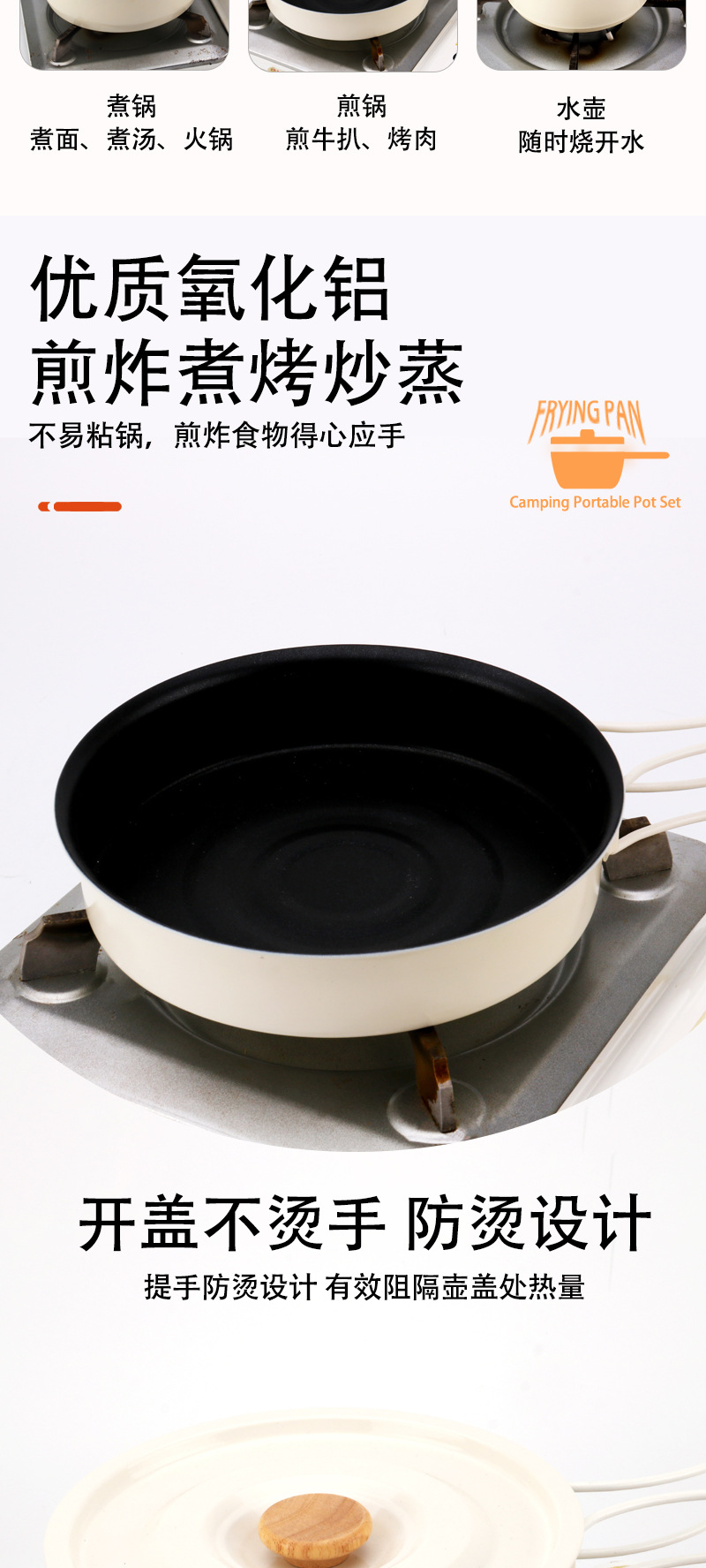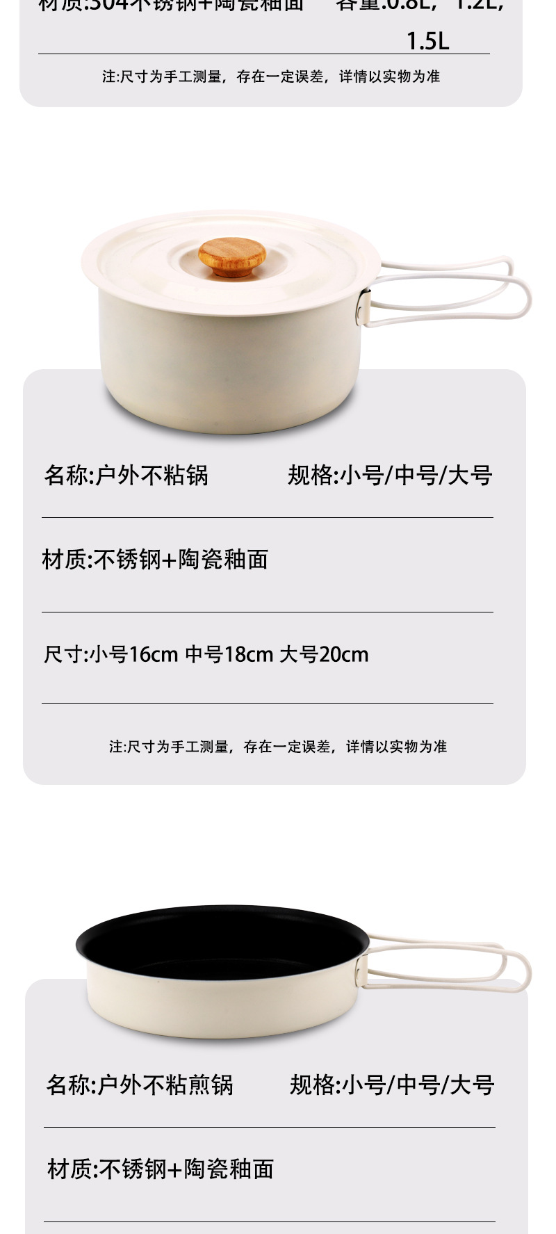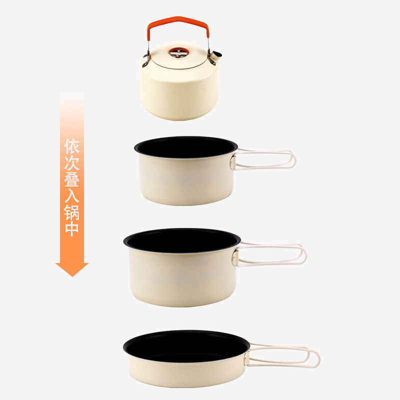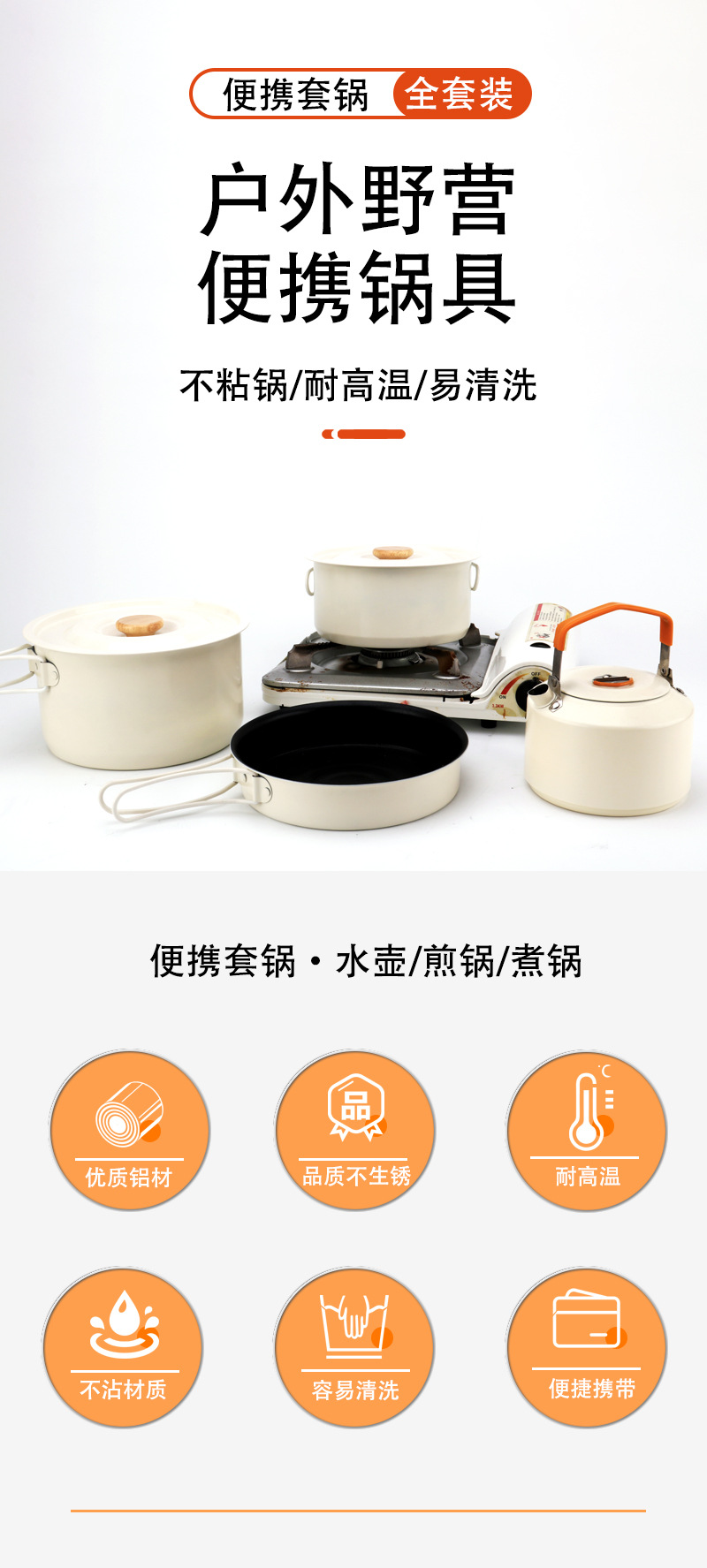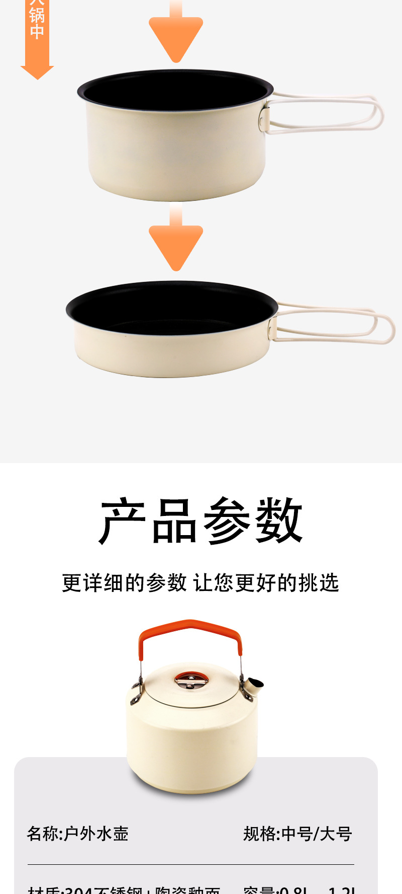 户外锅具露营野炊装备全套野营炊具套装烧水壶户外奶白陶瓷套锅