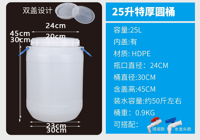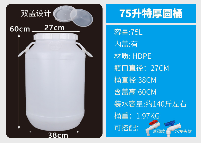 食品级塑料水桶家用储水桶加厚酒桶酱油桶汽油桶花生油桶内外双盖