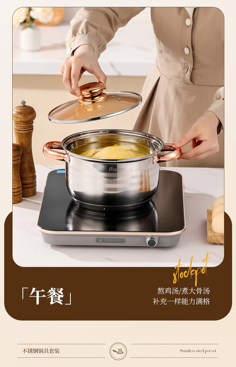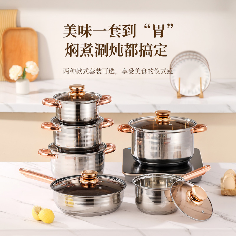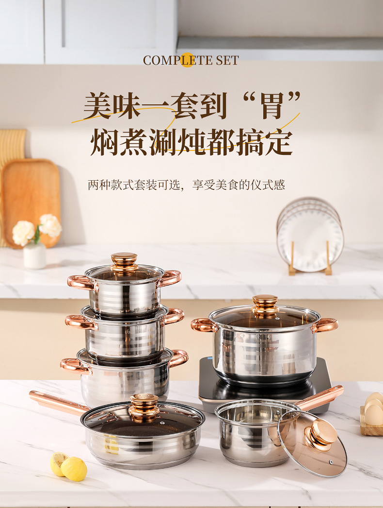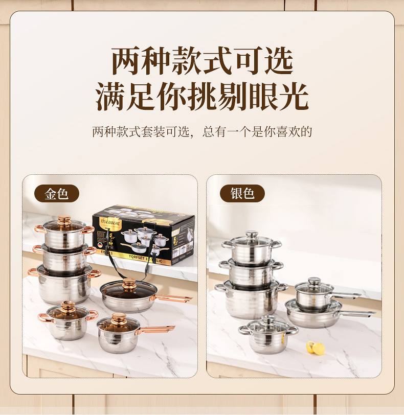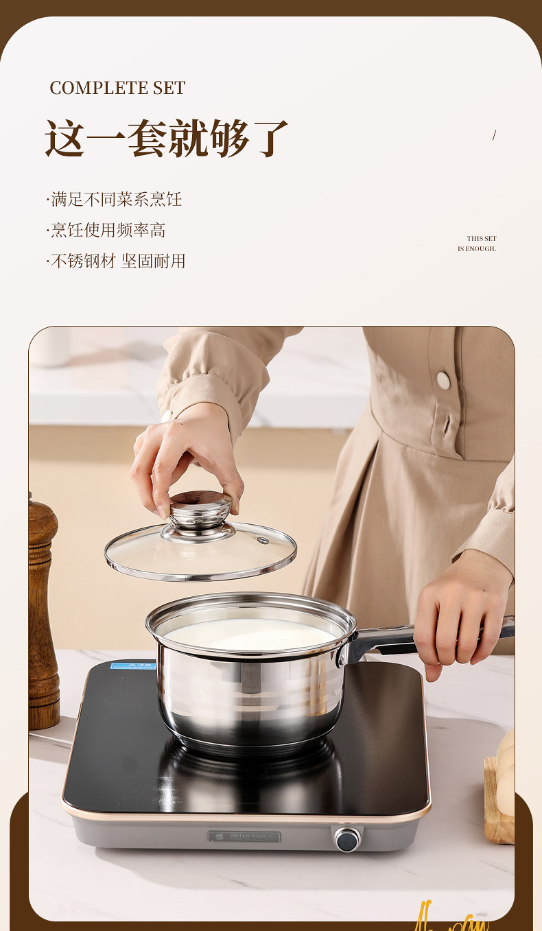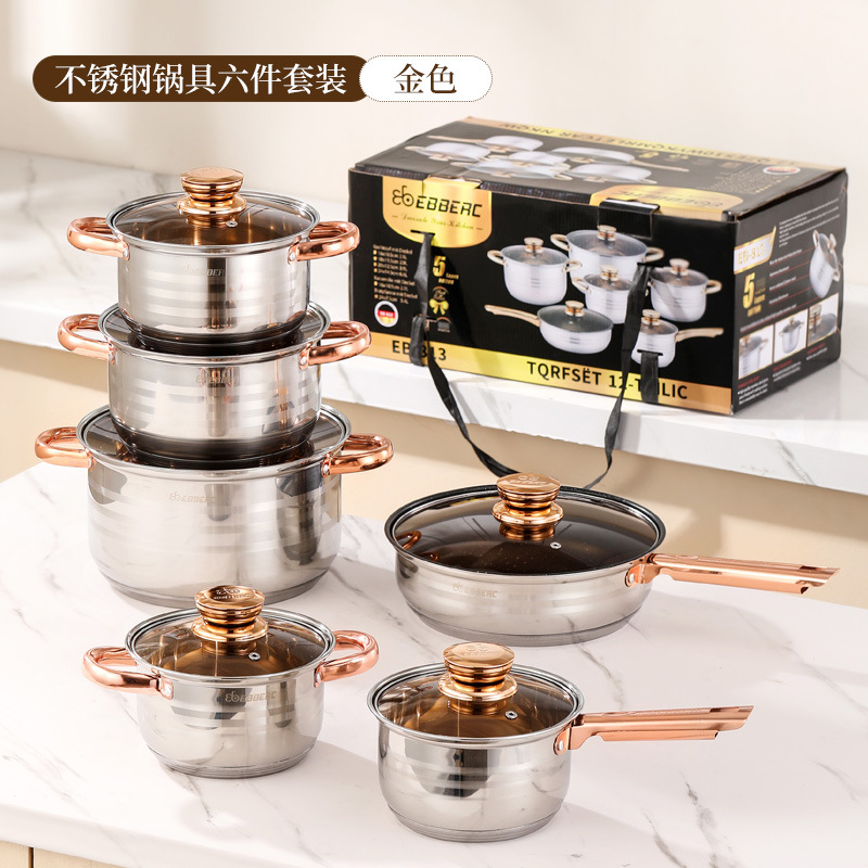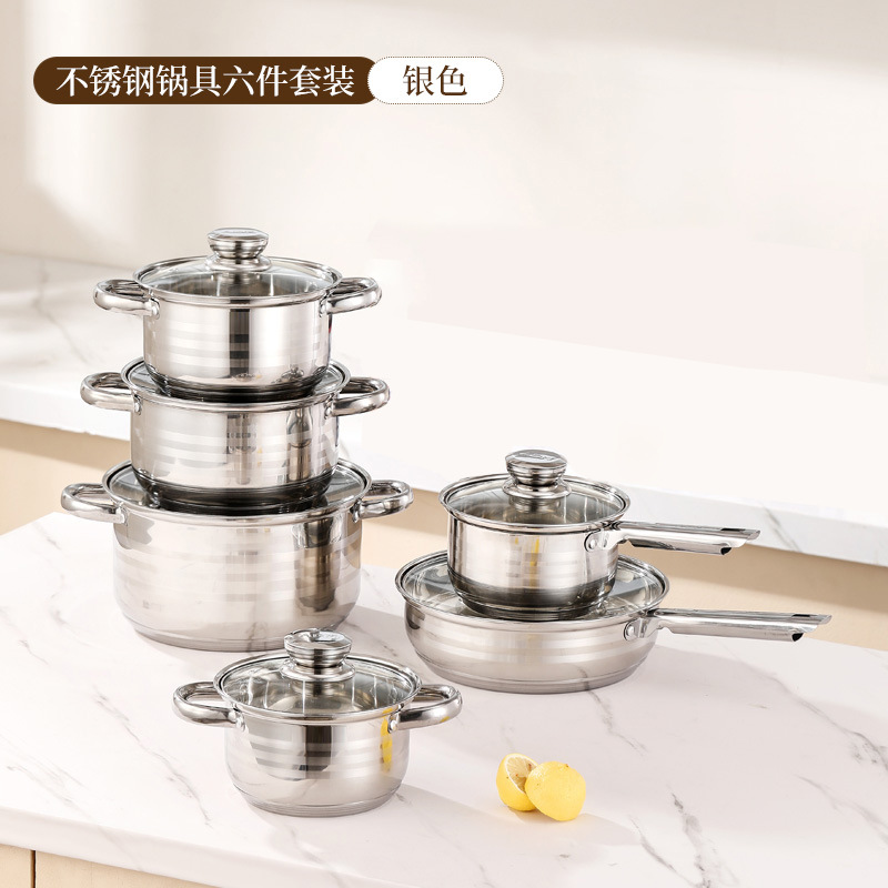 跨境不锈钢锅套装6六件套套装奶锅煎锅平底锅复底不粘锅
