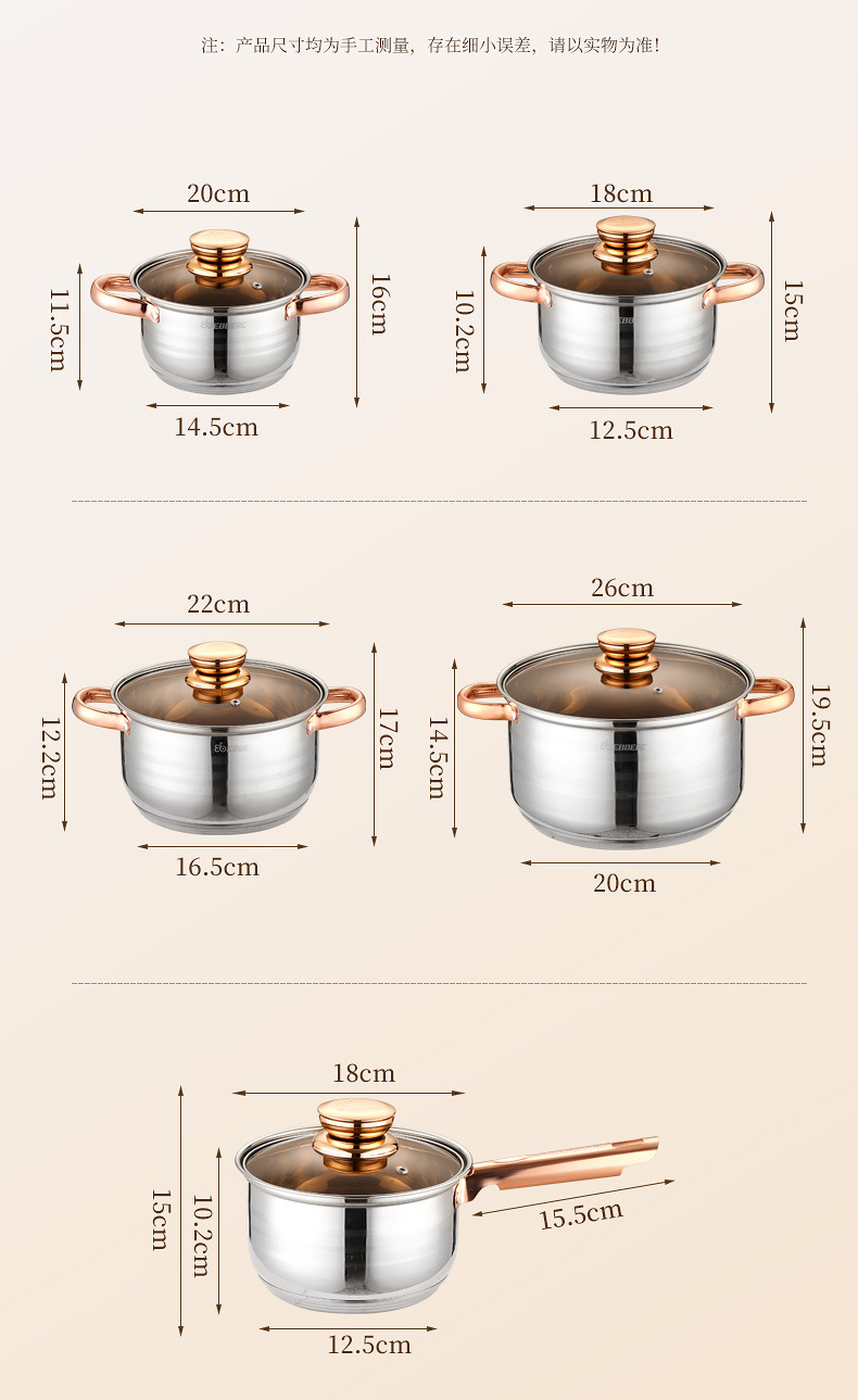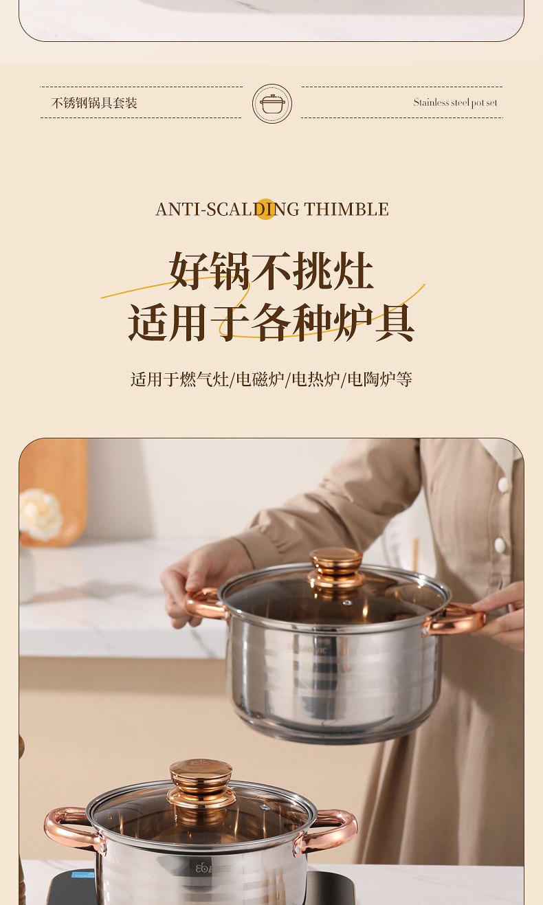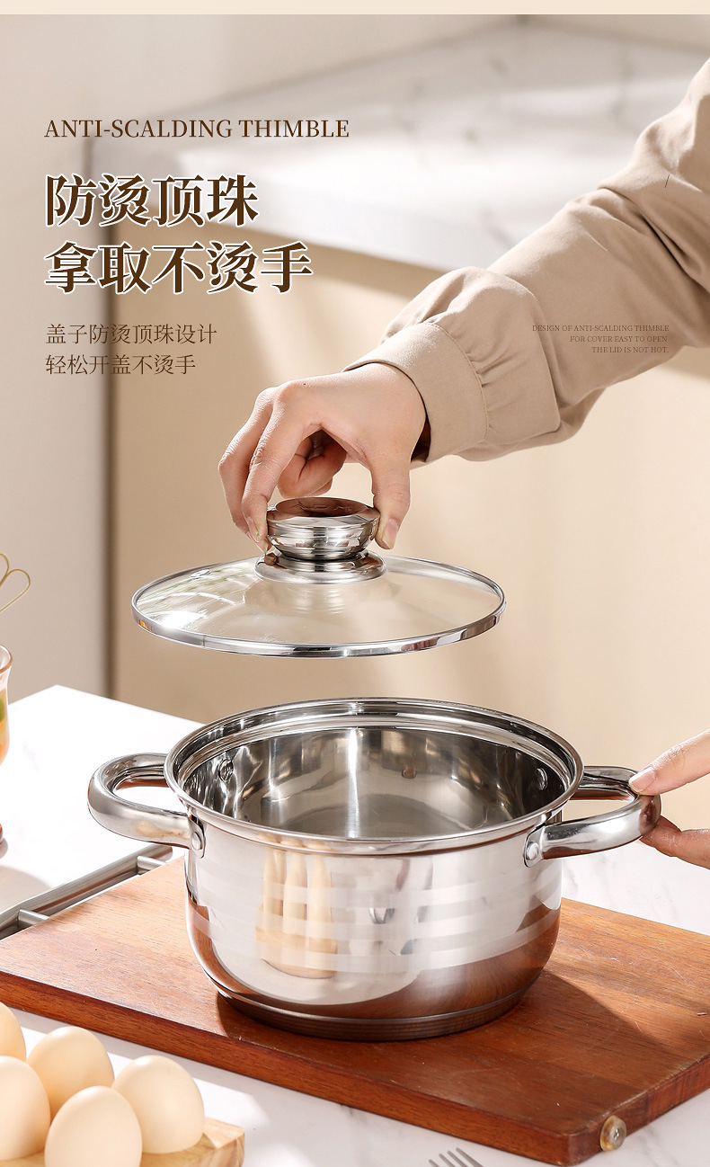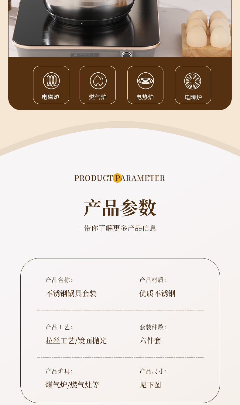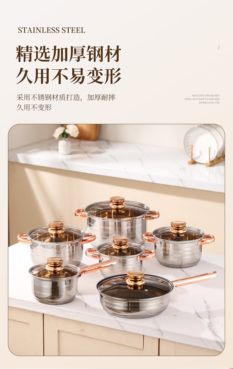 跨境不锈钢锅套装6六件套套装奶锅煎锅平底锅复底不粘锅