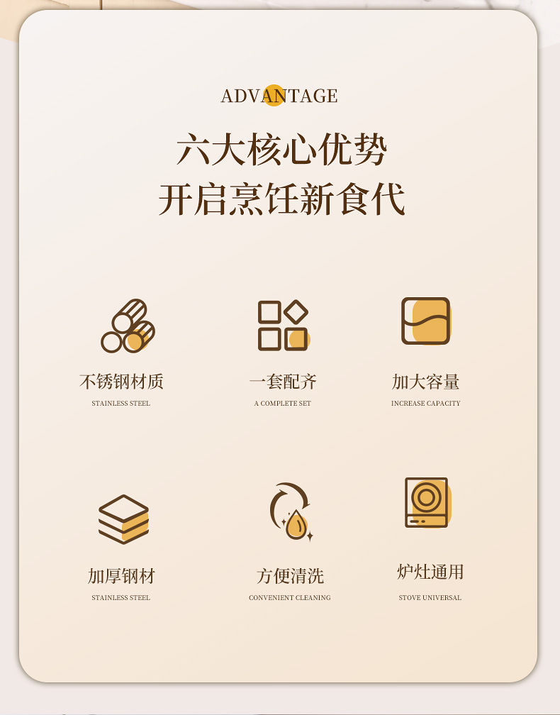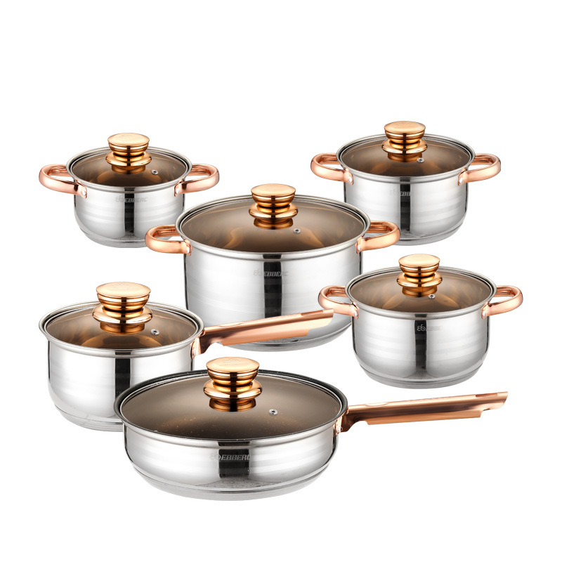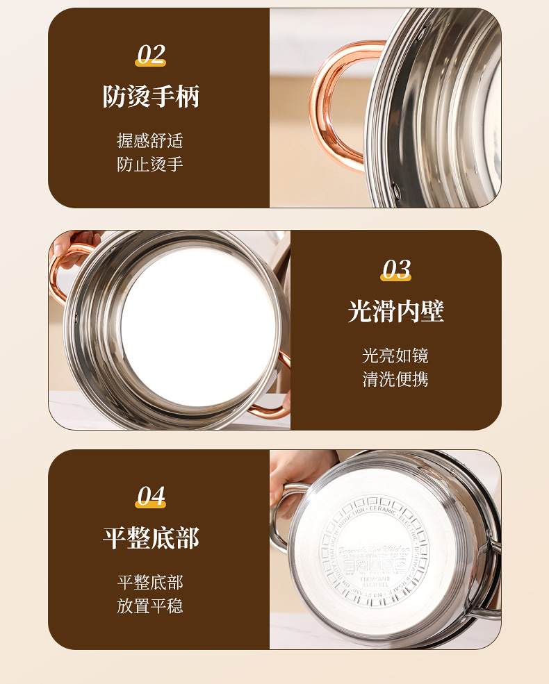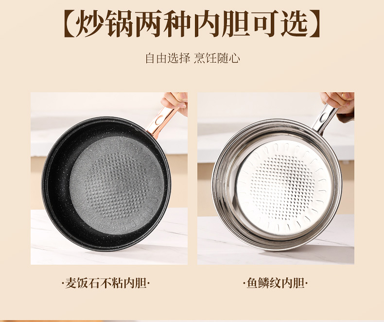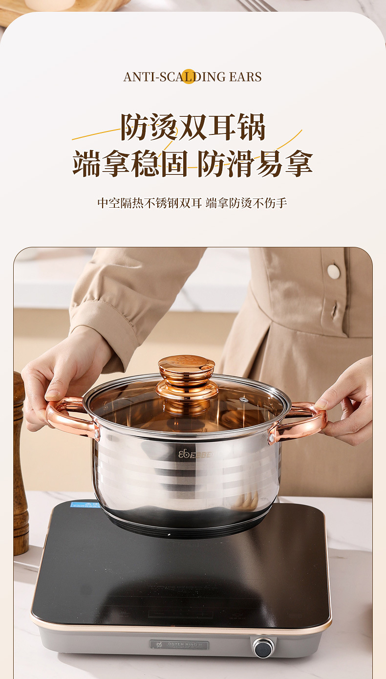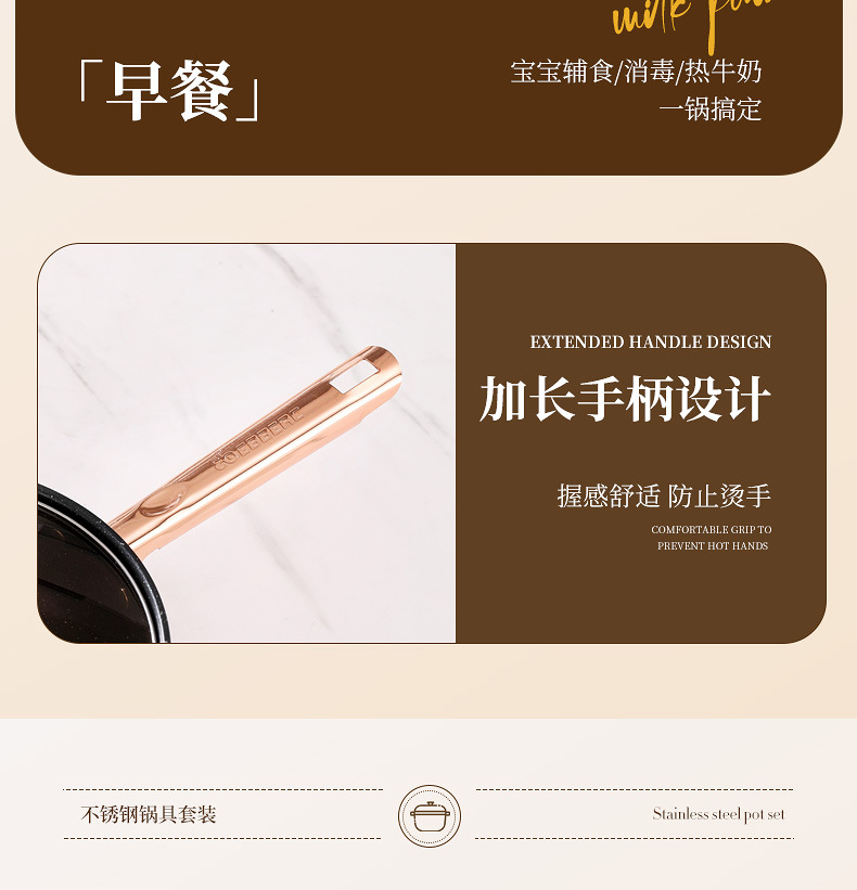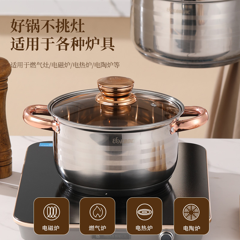 跨境不锈钢锅套装6六件套套装奶锅煎锅平底锅复底不粘锅