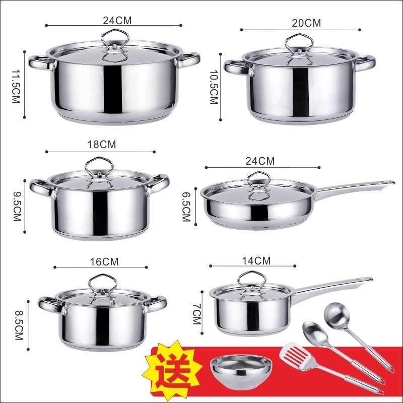 2026新款16pcs套装锅跨境批发不锈钢汤锅外贸加厚厨具套装复合底