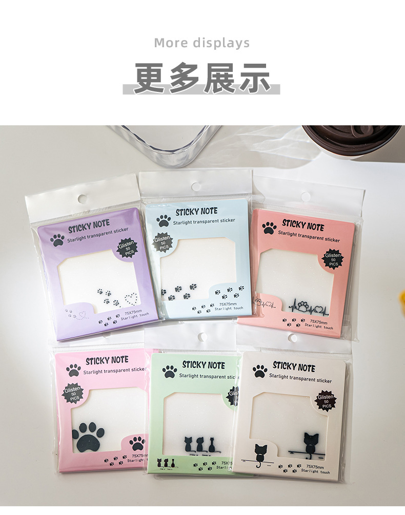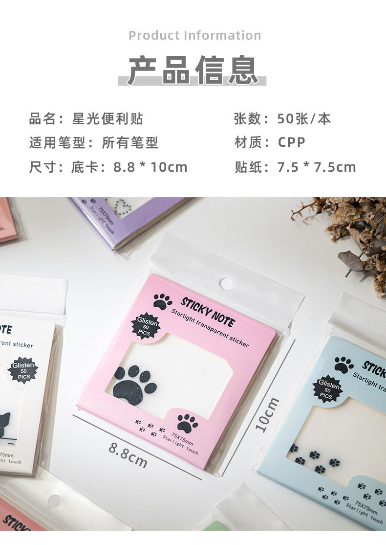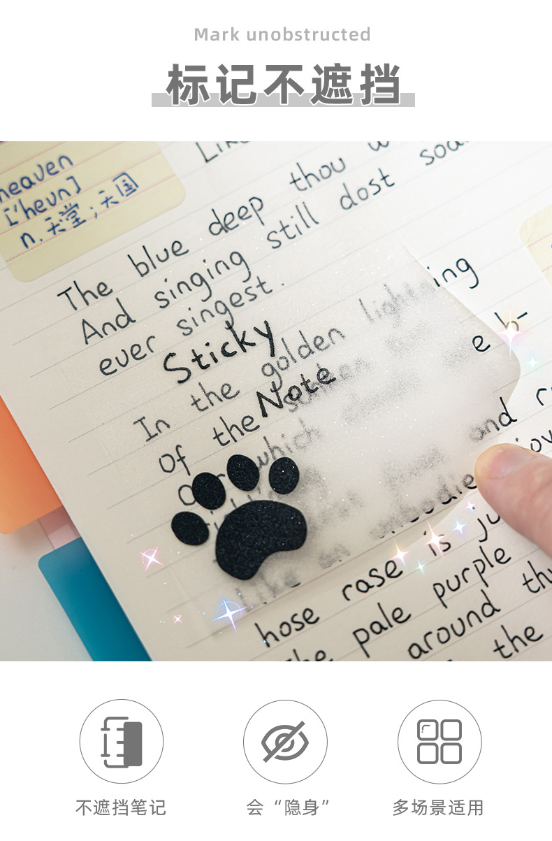 星光系列便利贴创意磨砂有粘性便签透明学生标记高颜值便签纸批发