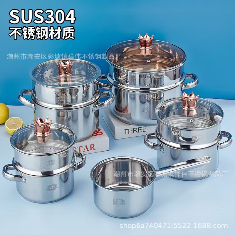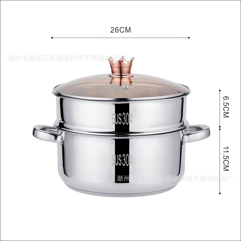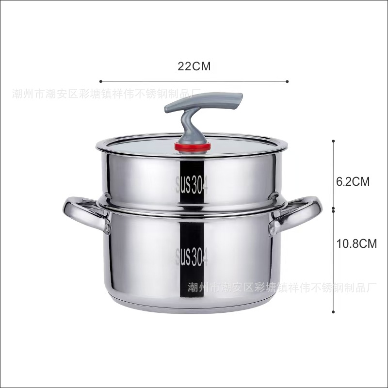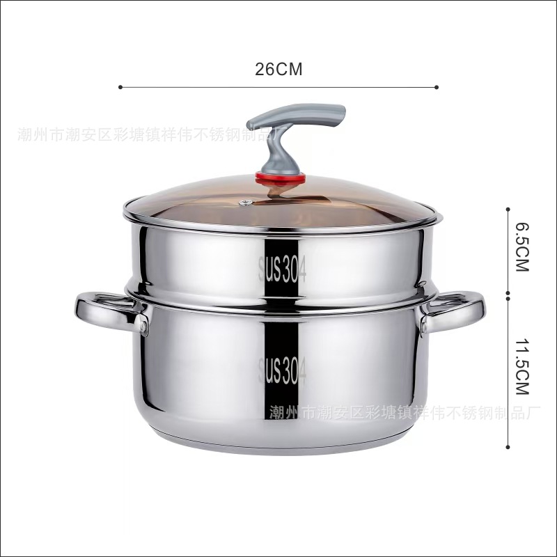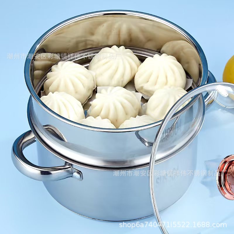 加厚汤锅304不锈钢蒸锅家用五层复底蒸笼食品级电磁炉通用蒸饭