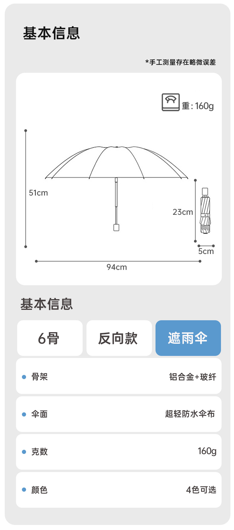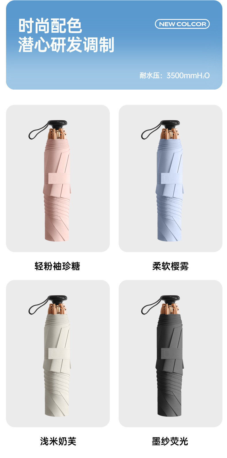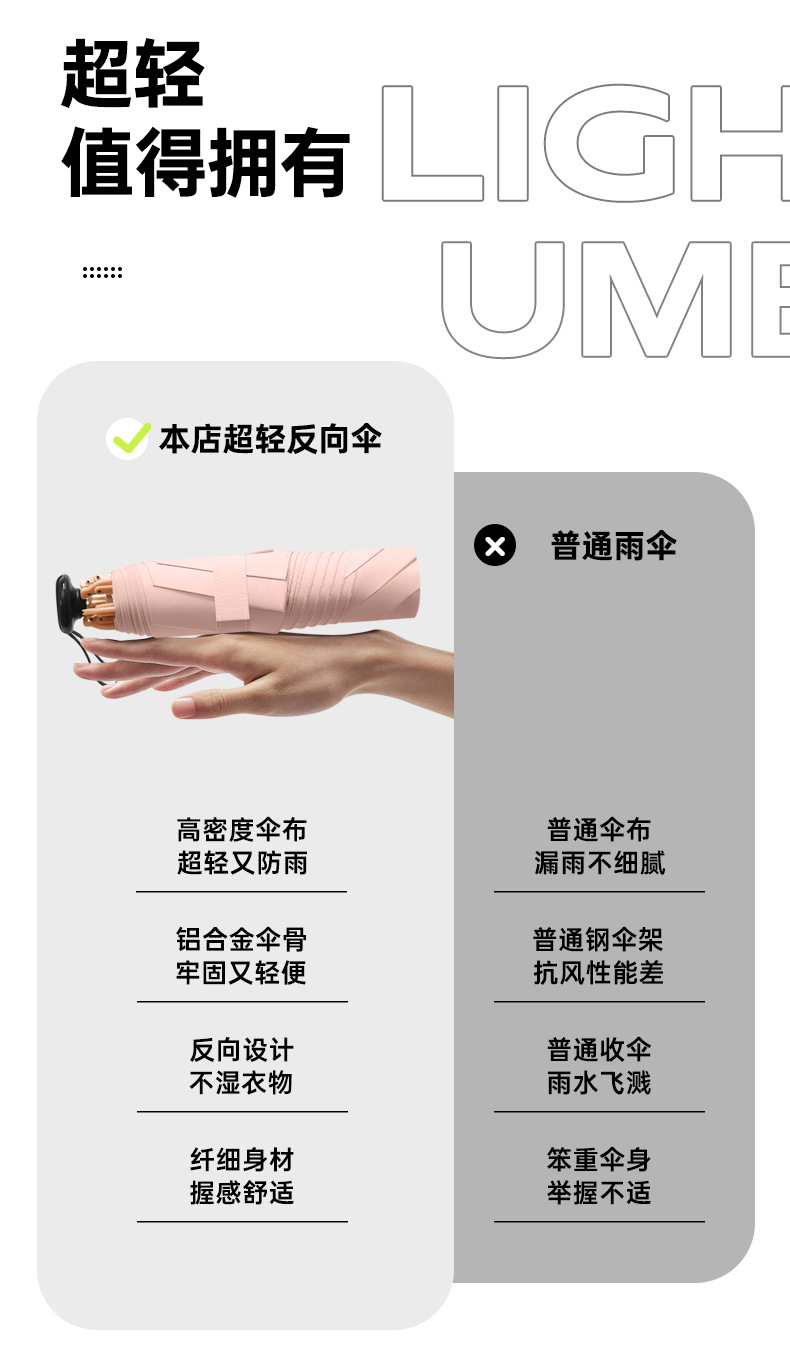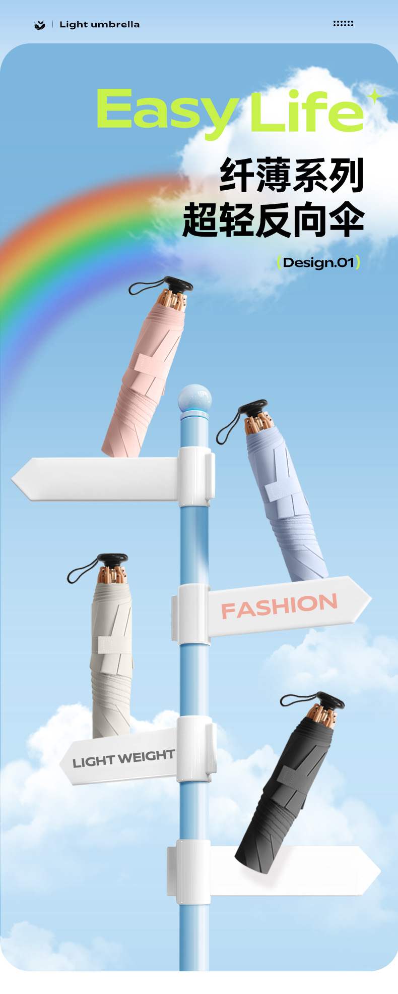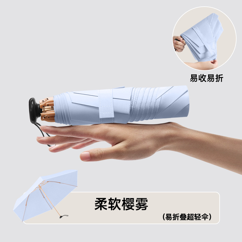 跨境电商爆款日系超轻铅笔易折叠反向五折伞小巧便携女士雨伞6骨