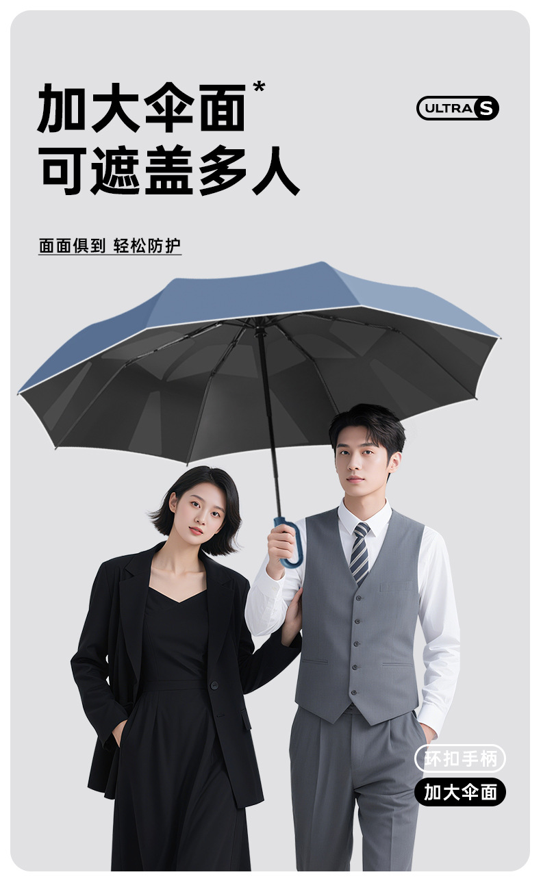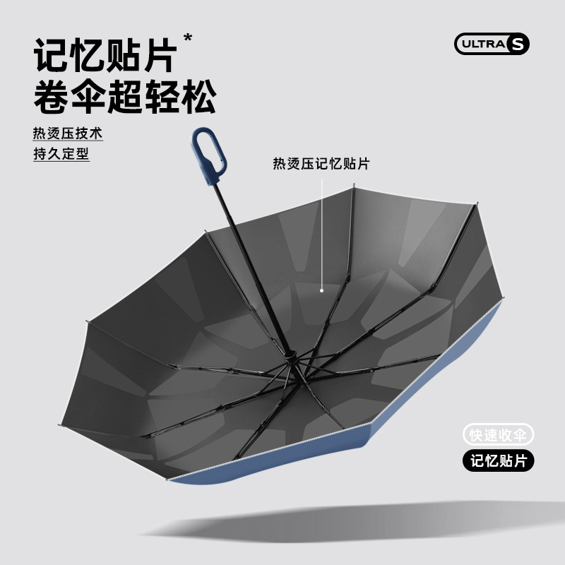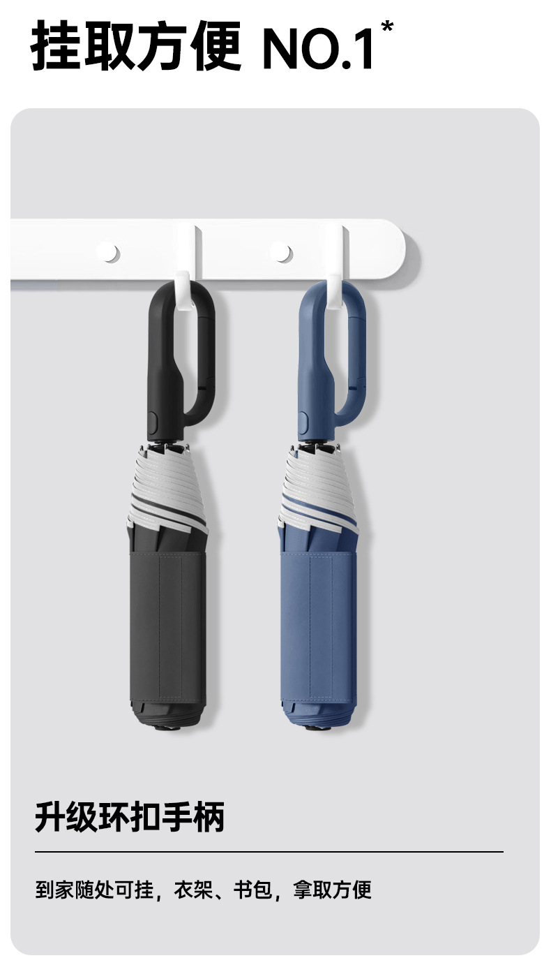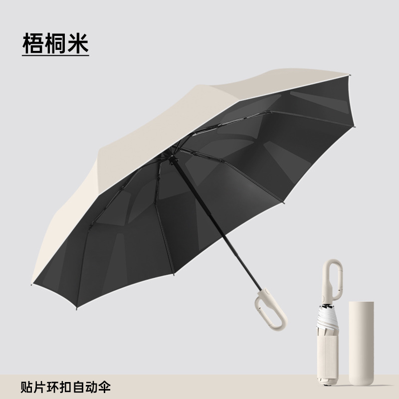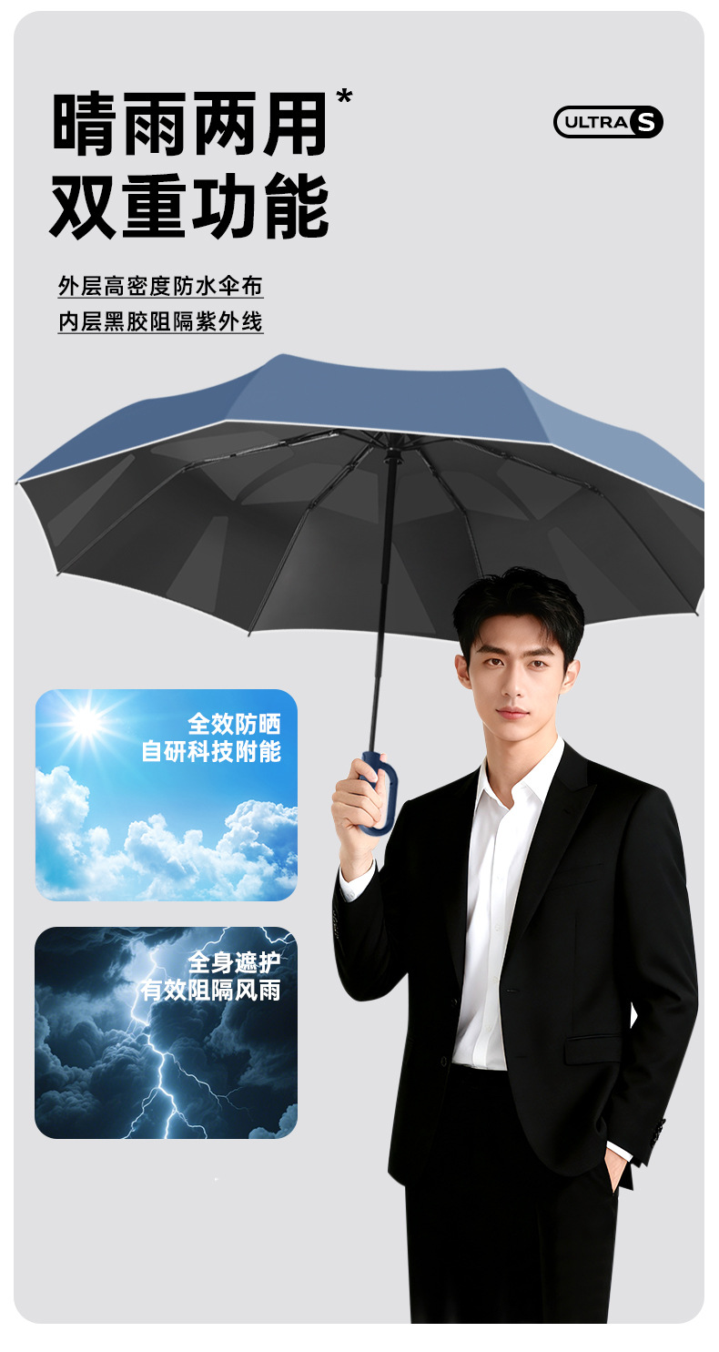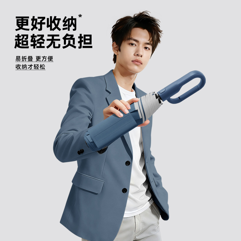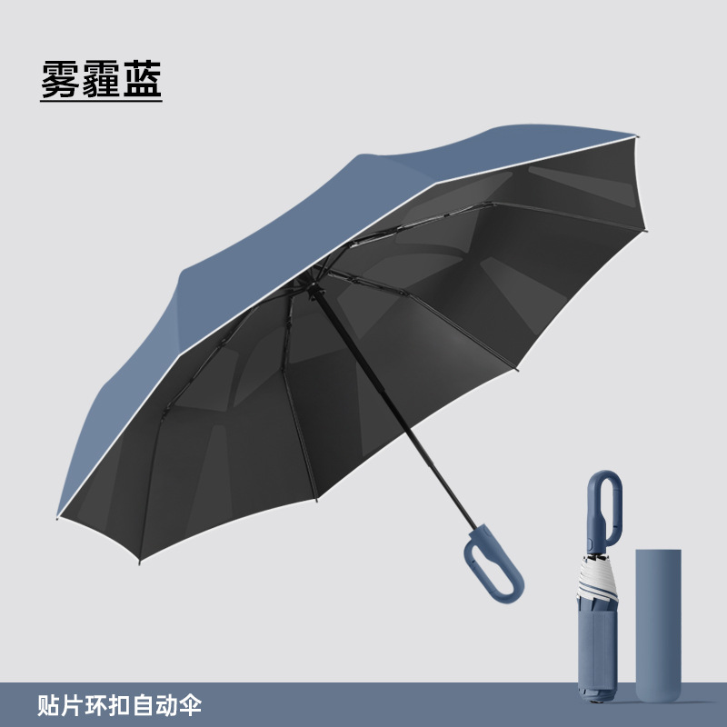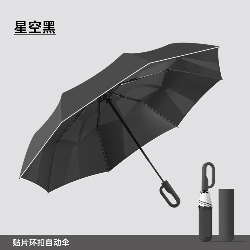 新款自动环扣雨伞加固男士商务贴片伞易折黑胶防晒晴雨伞定制logo