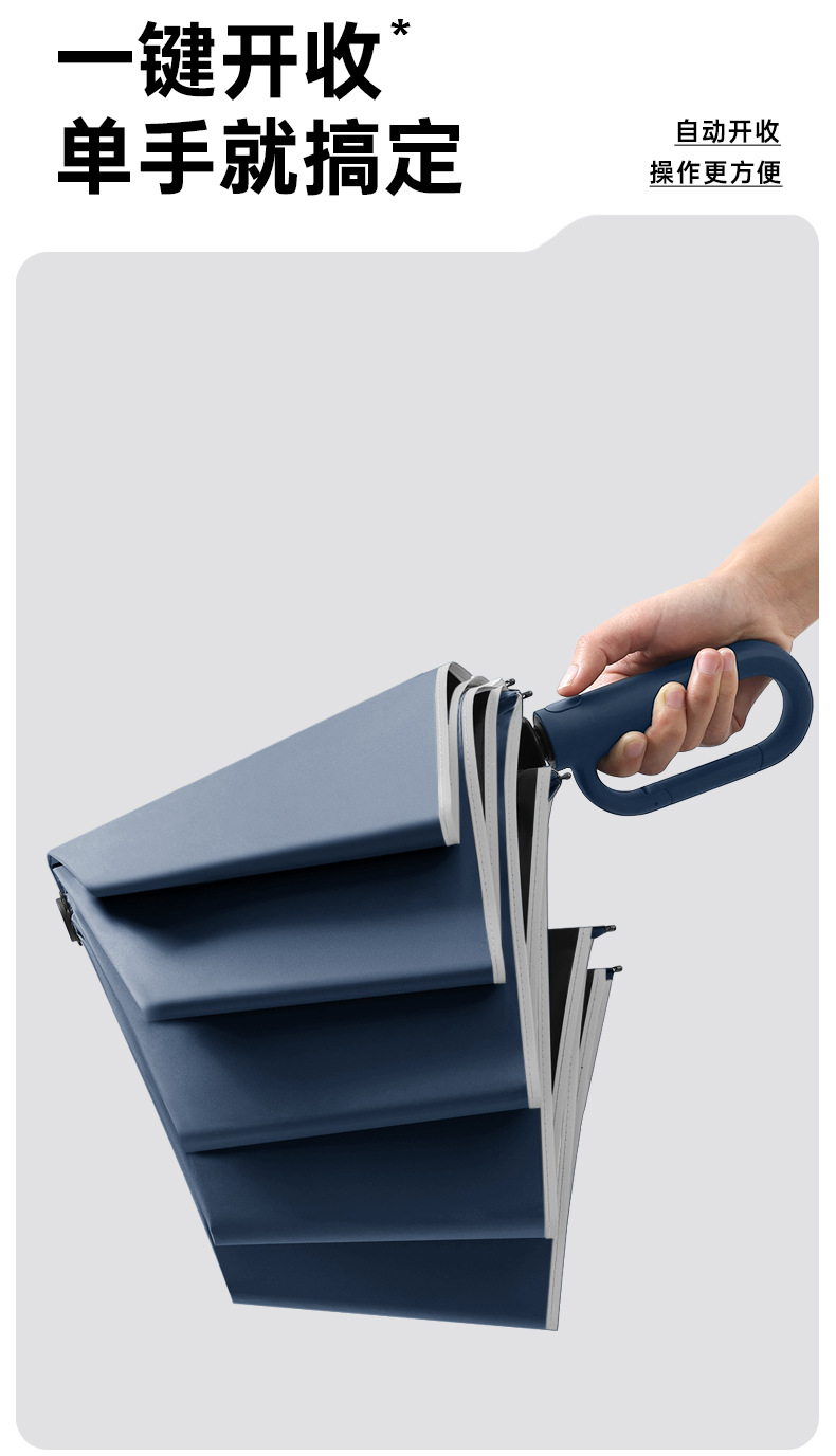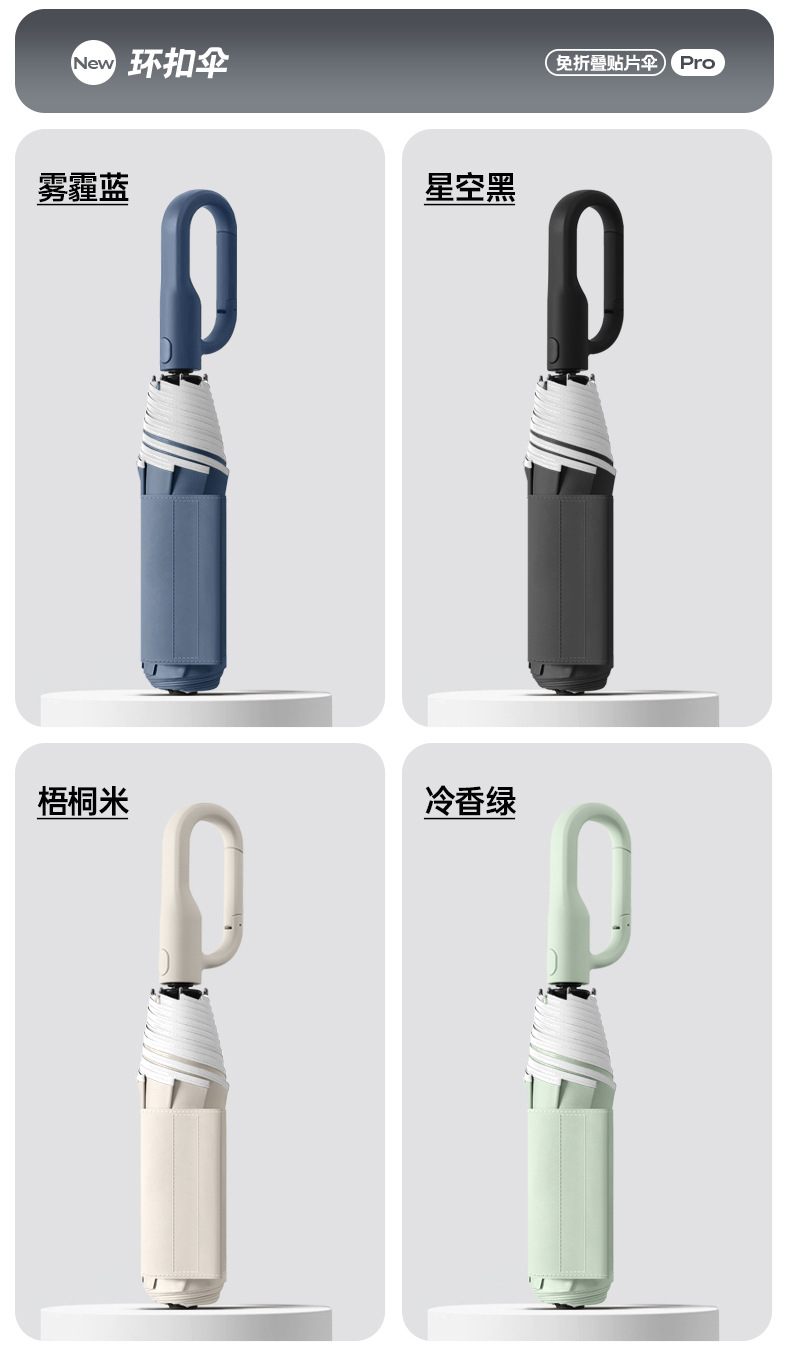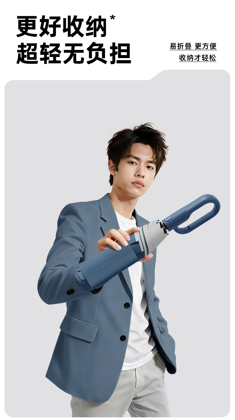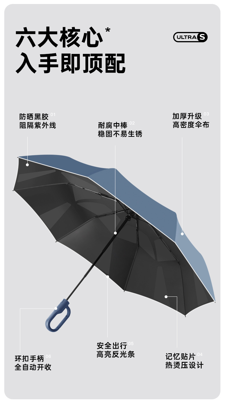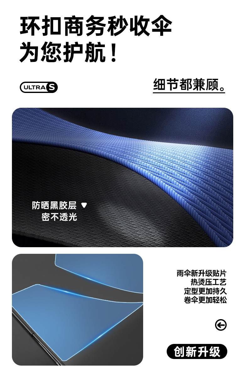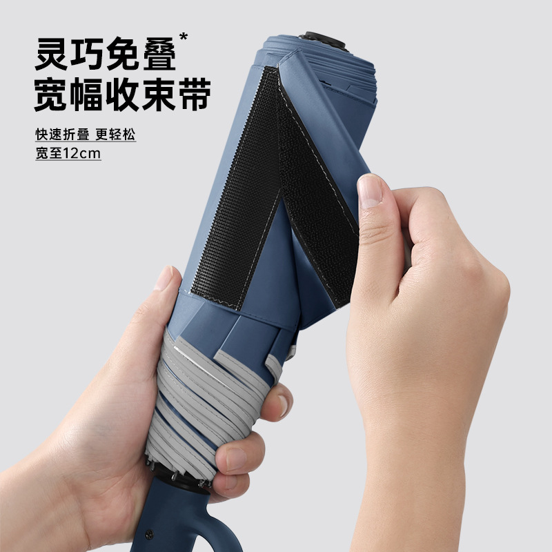 新款自动环扣雨伞加固男士商务贴片伞易折黑胶防晒晴雨伞定制logo