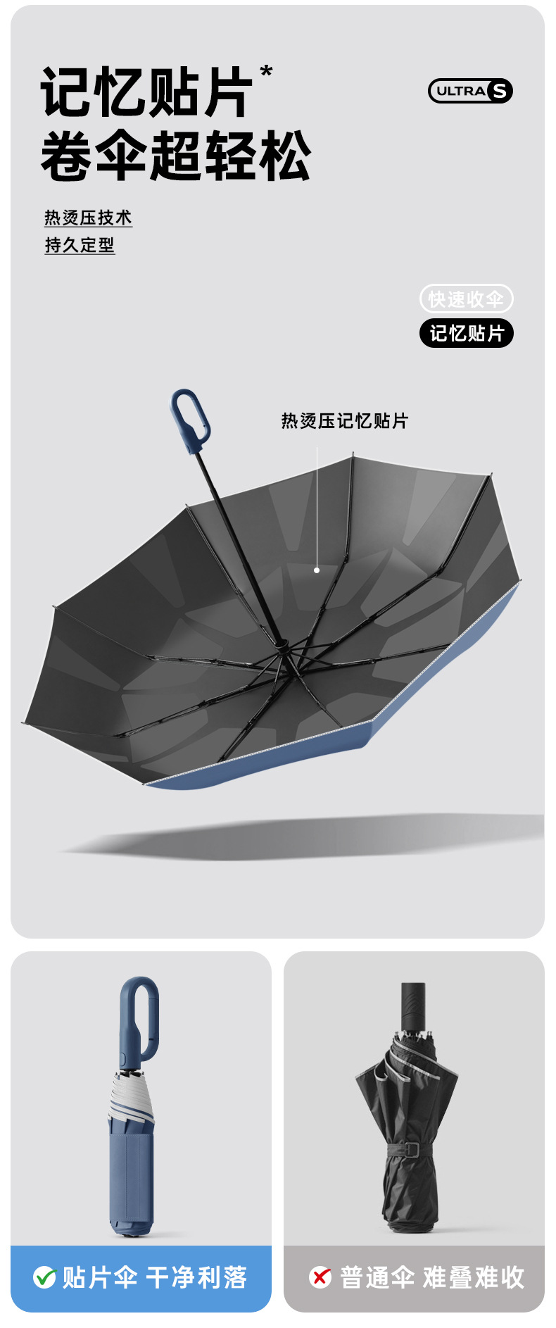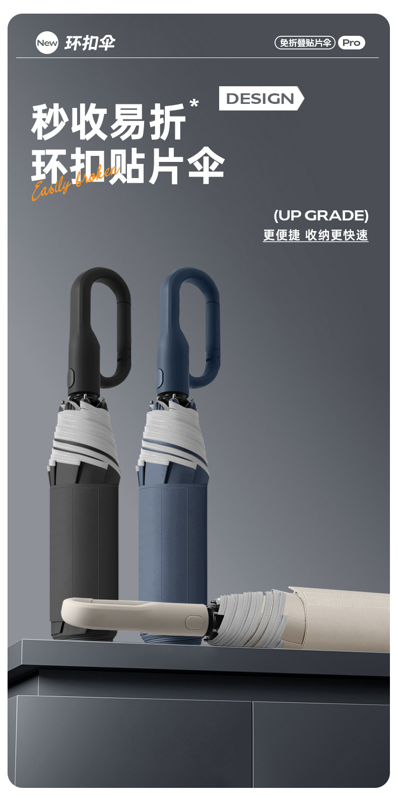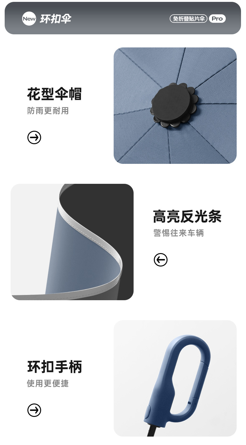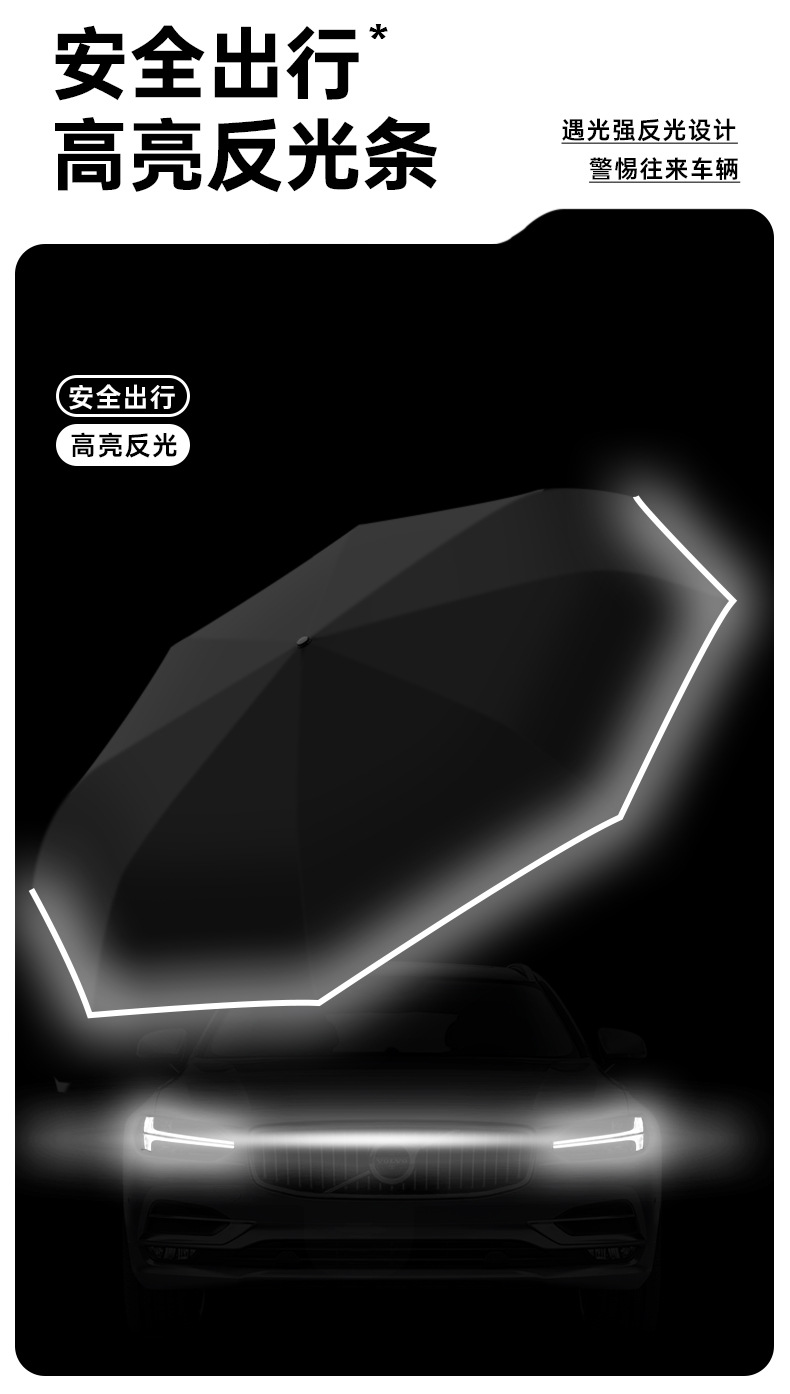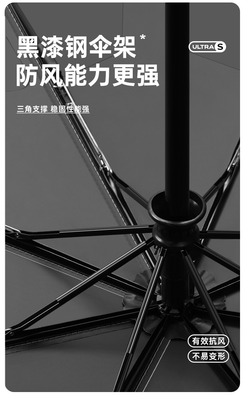新款自动环扣雨伞加固男士商务贴片伞易折黑胶防晒晴雨伞定制logo