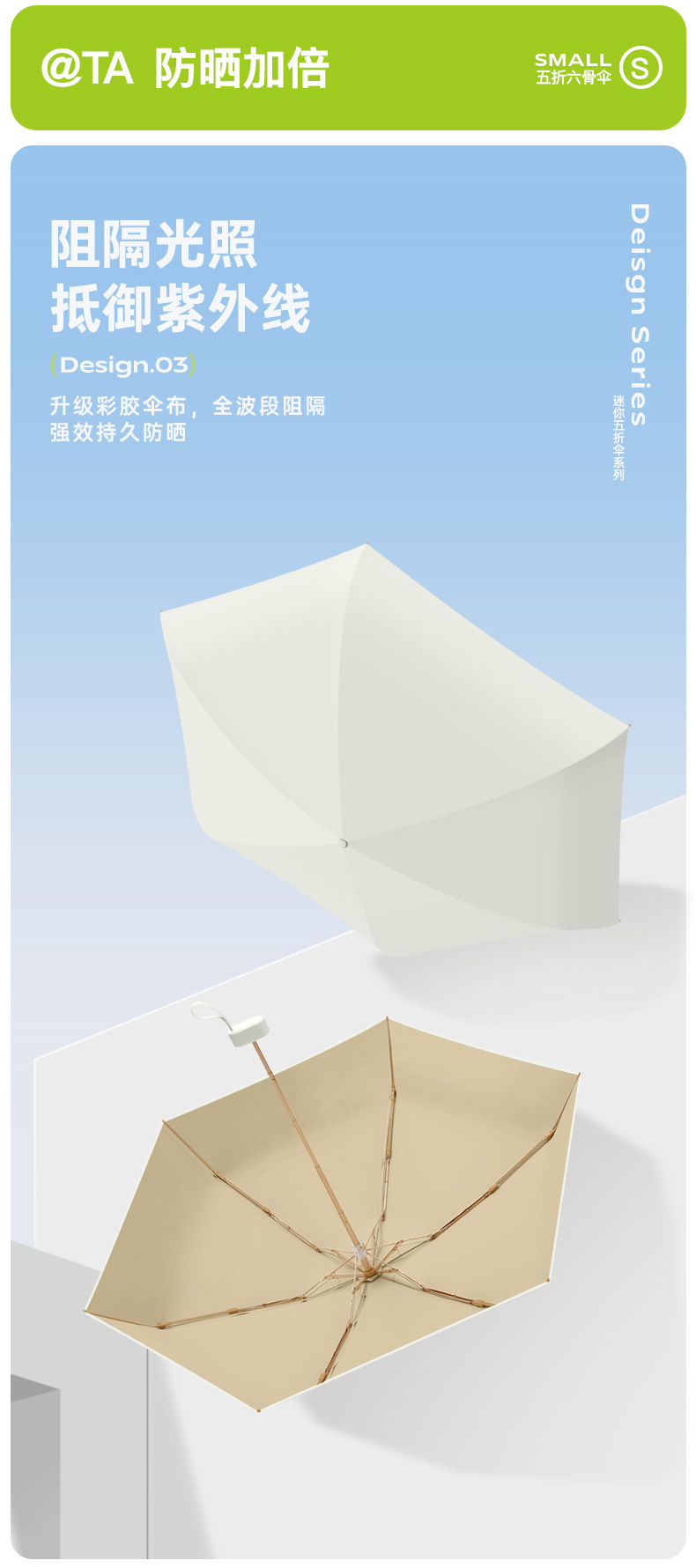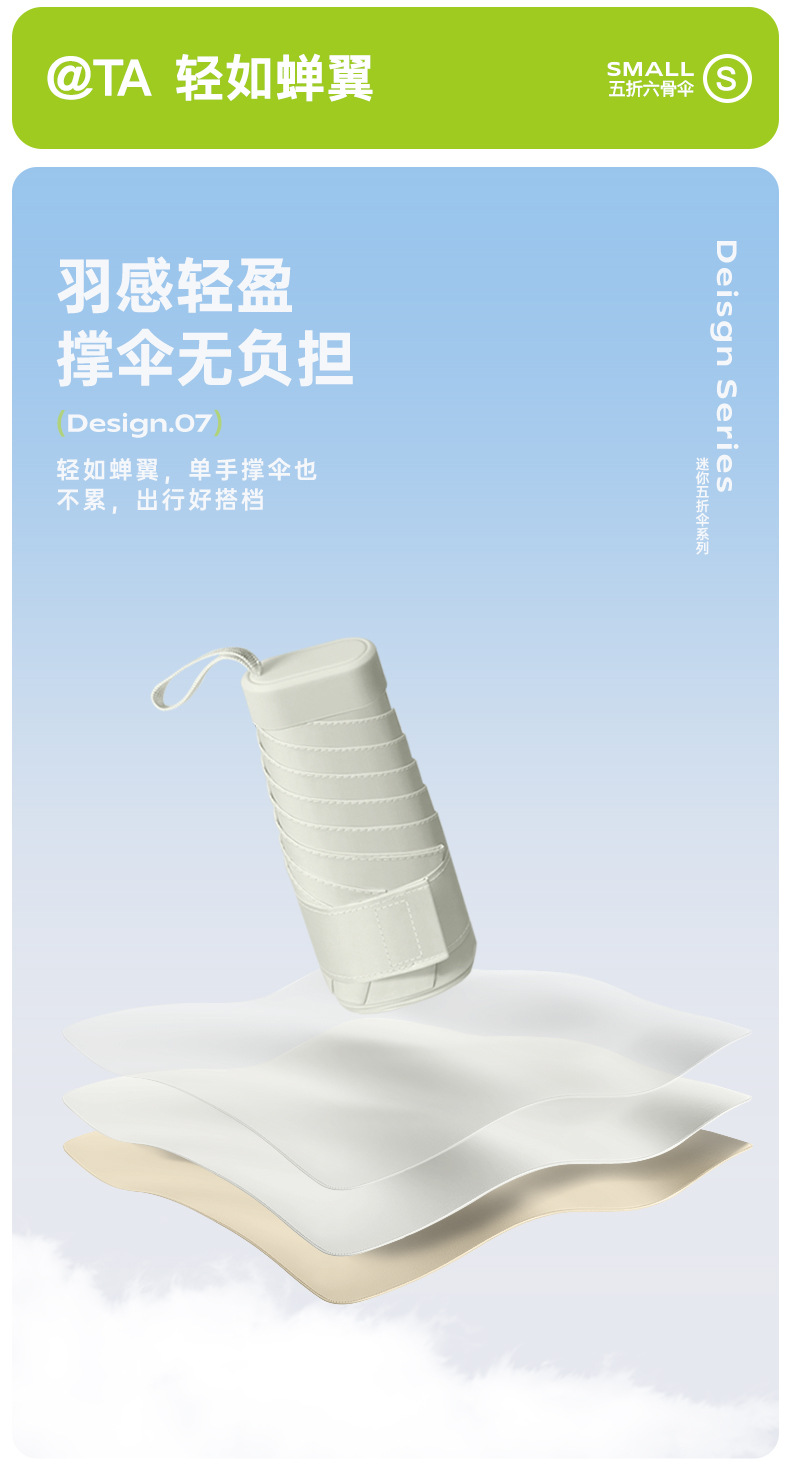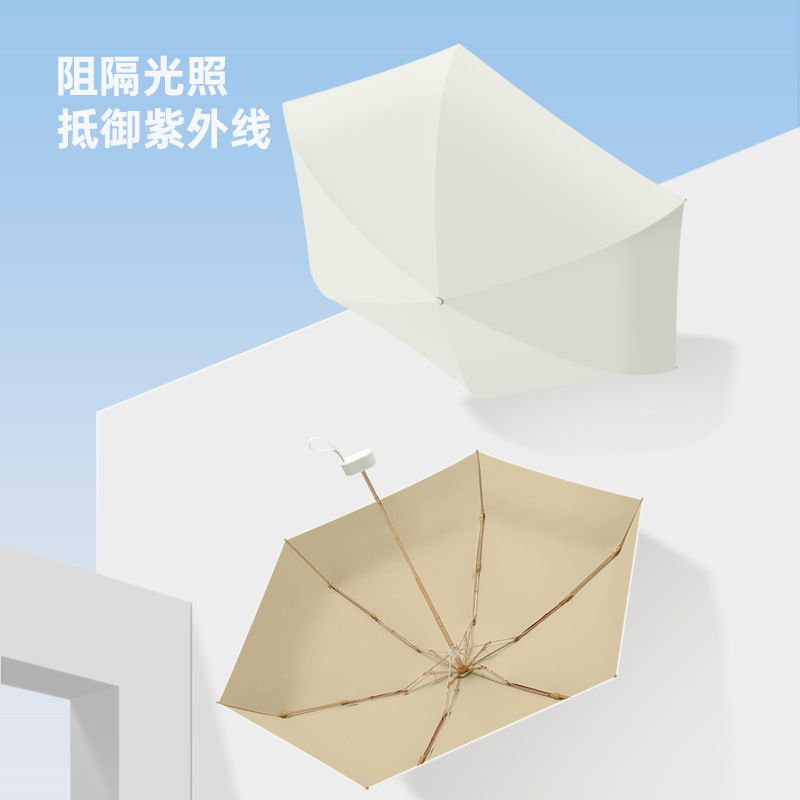 新款彩胶五折太阳伞防紫外线晴雨两用女口袋遮阳伞便携轻巧六骨