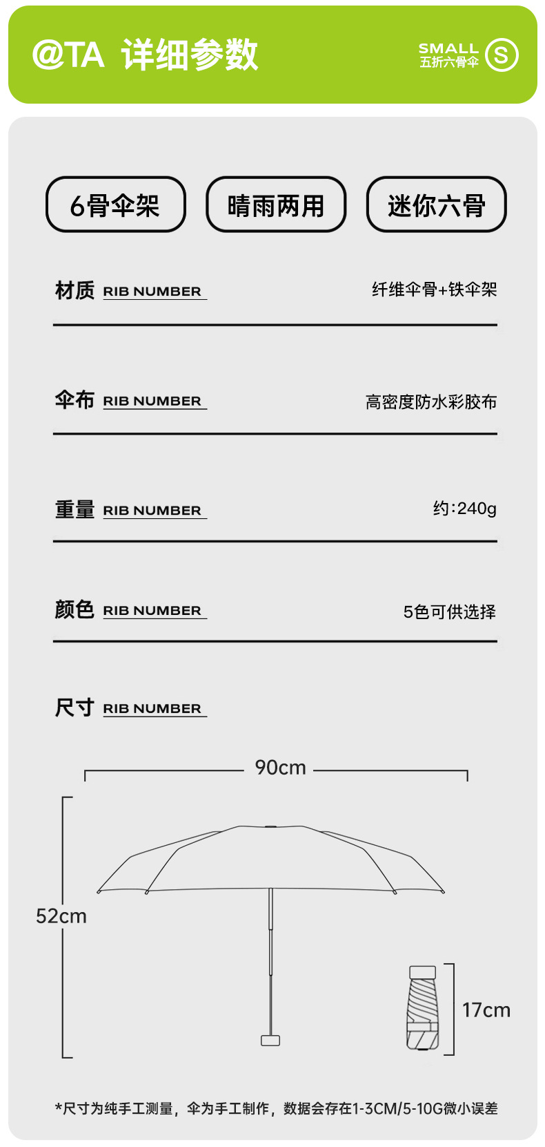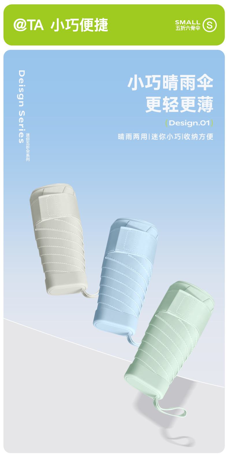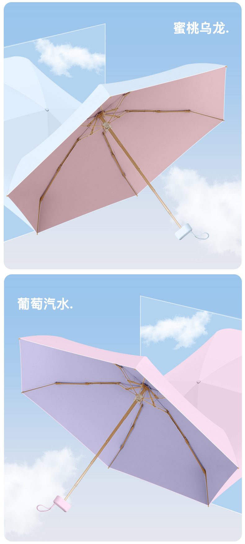 新款彩胶五折太阳伞防紫外线晴雨两用女口袋遮阳伞便携轻巧六骨