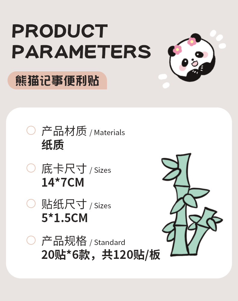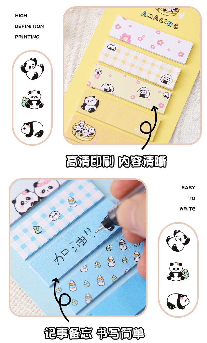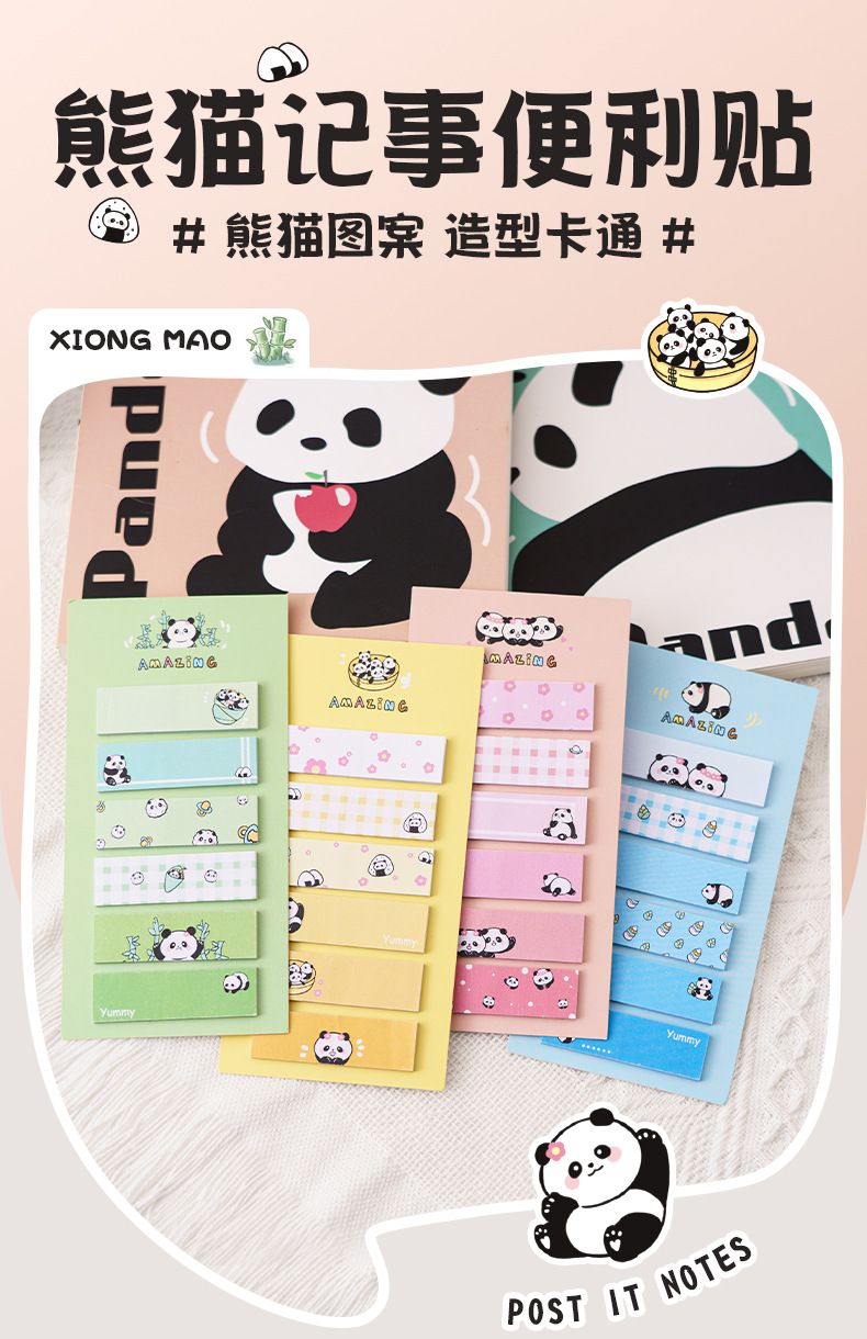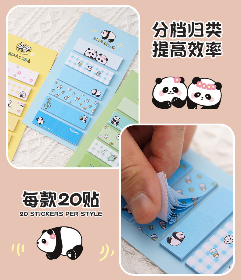 卡通熊猫便利贴高颜值索引贴记事分类标签贴可爱少女心n次贴便签