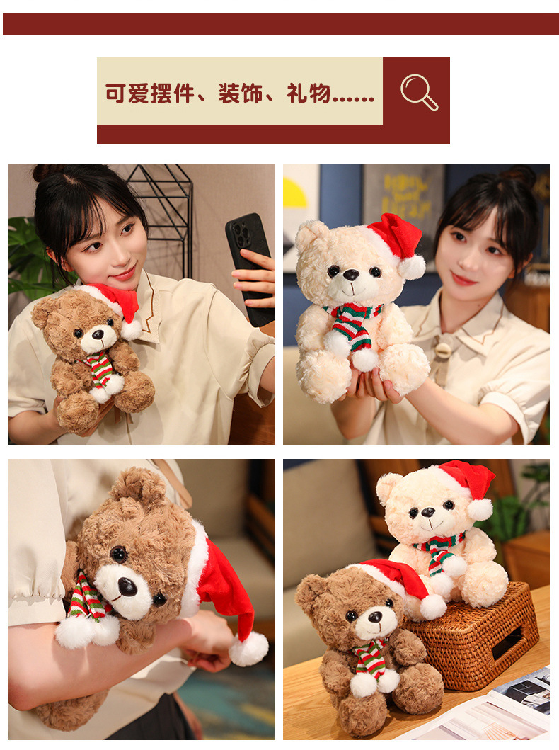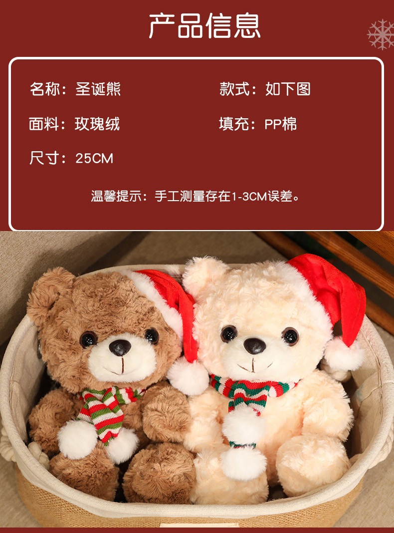 圣诞小熊玩偶抱花泰迪熊毛绒玩具公仔布娃娃儿童情人节日活动礼物