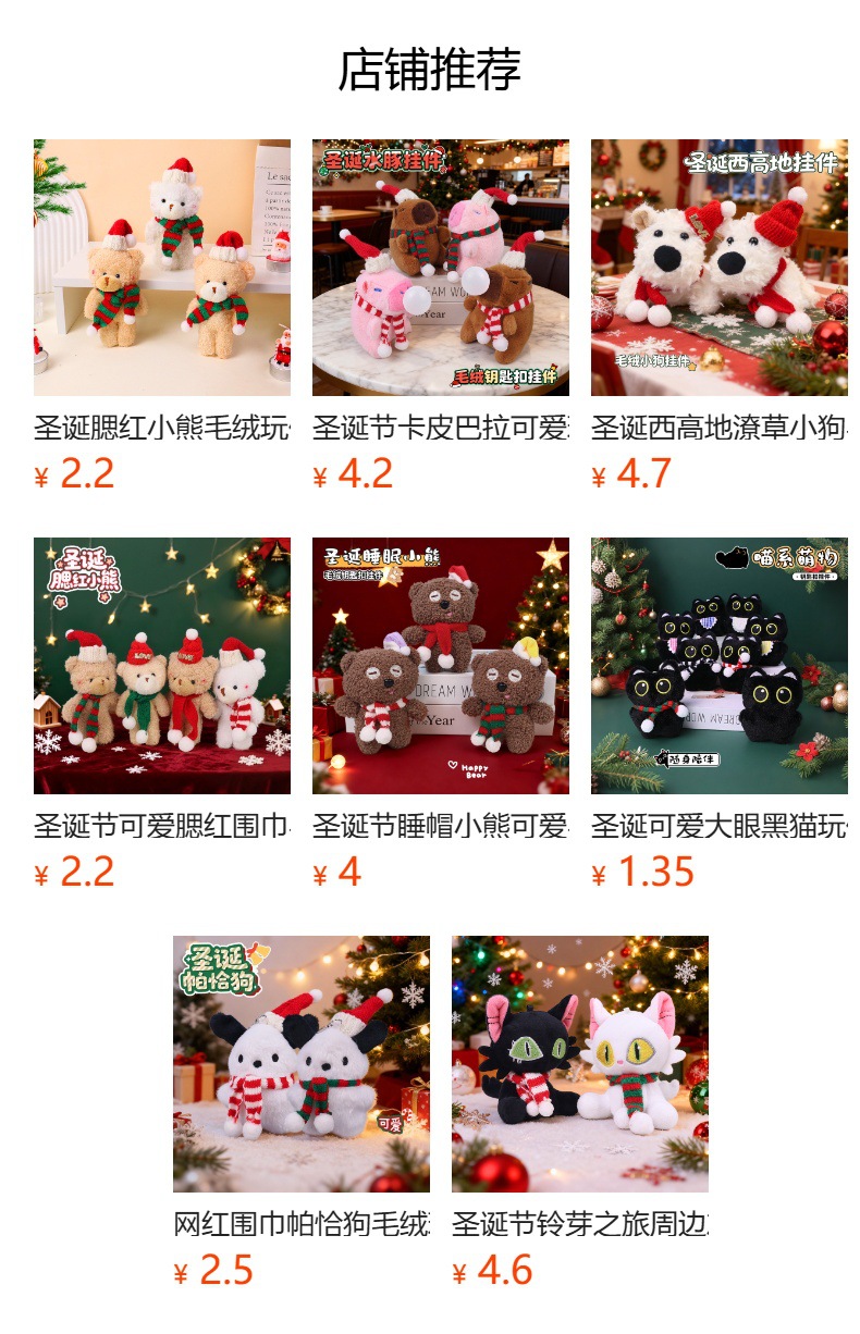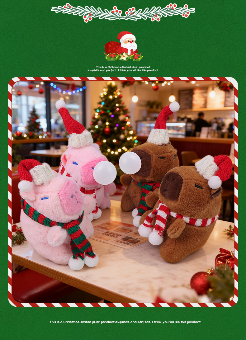 圣诞节卡皮巴拉可爱玩偶毛绒水豚钥匙扣背包挂饰挂件娃娃公仔礼物