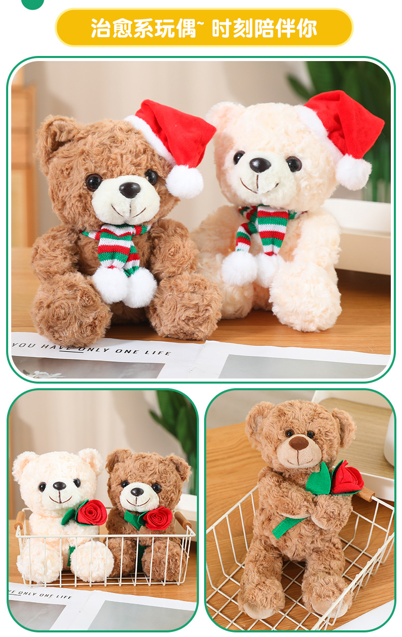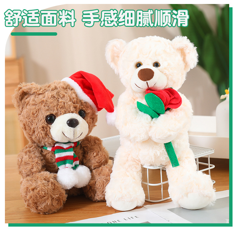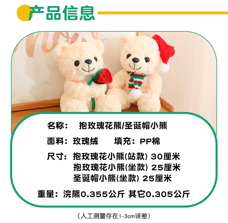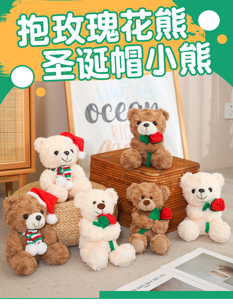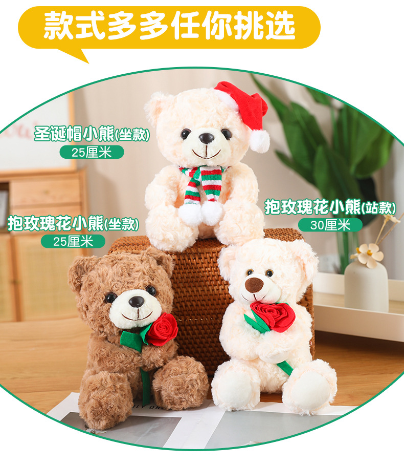 圣诞帽小熊公仔抱玫瑰花小熊毛绒玩具泰迪熊玩偶情人节礼物