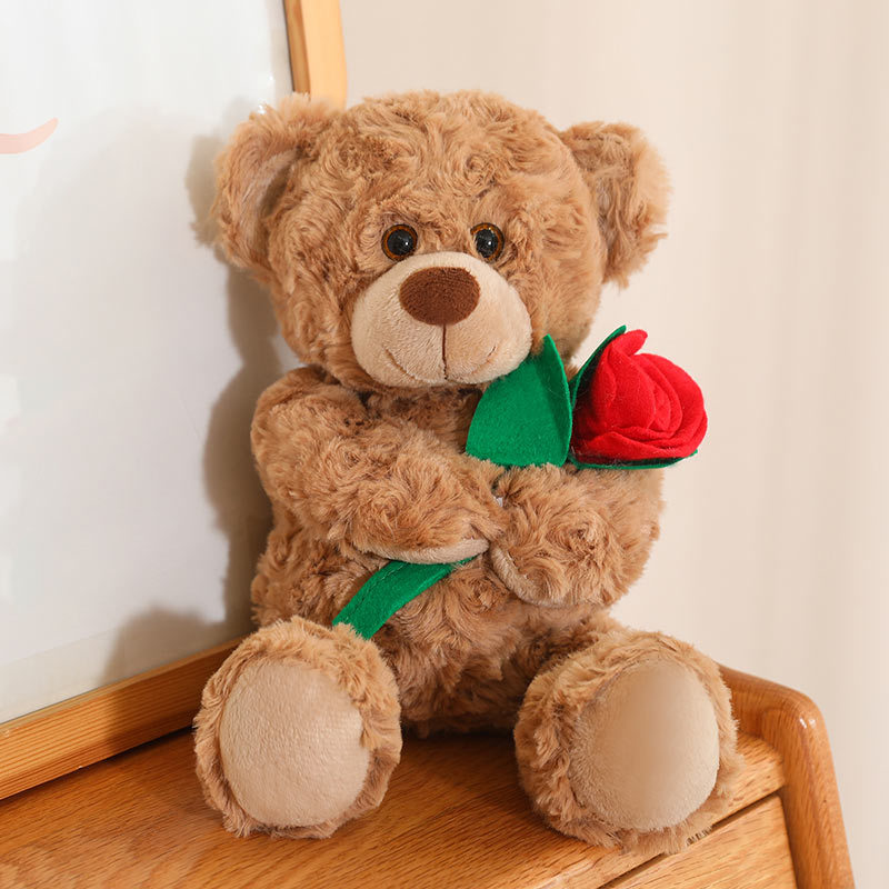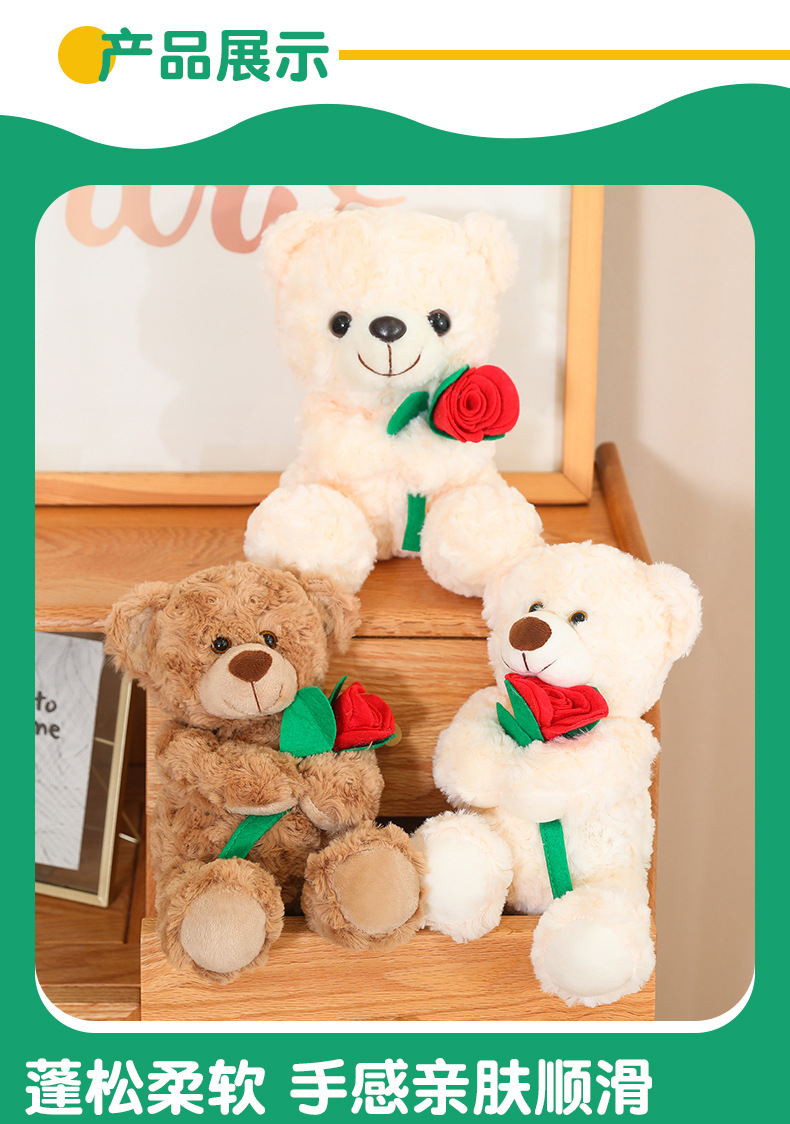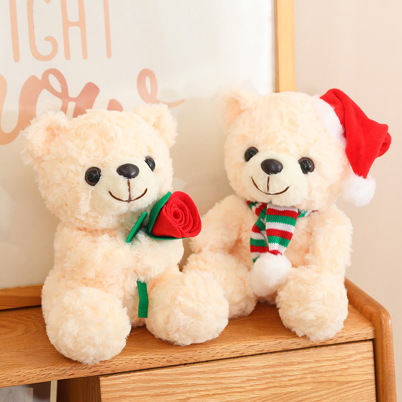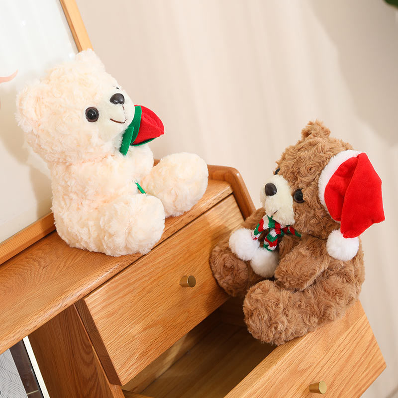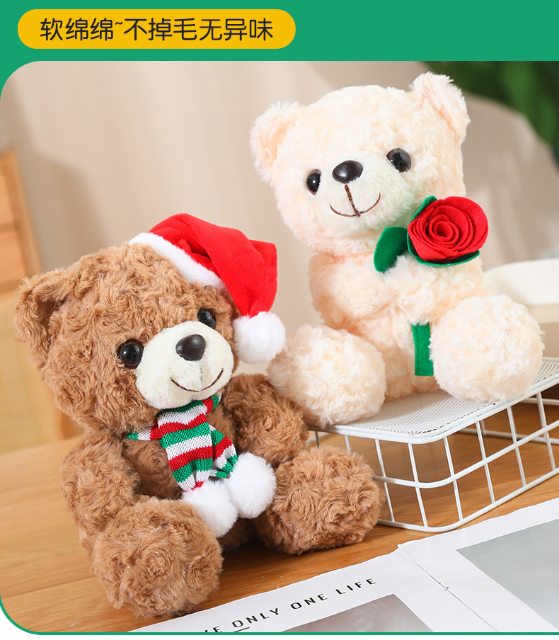 圣诞帽小熊公仔抱玫瑰花小熊毛绒玩具泰迪熊玩偶情人节礼物