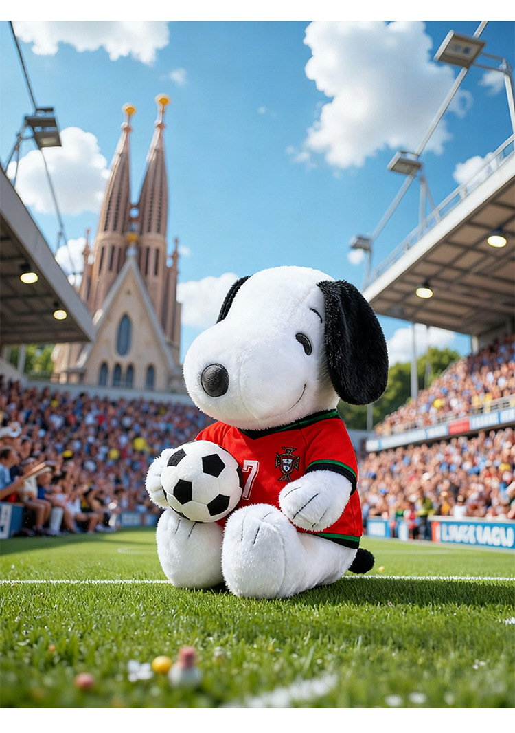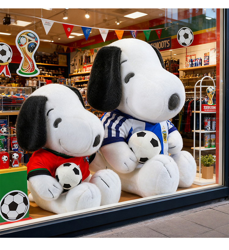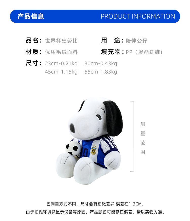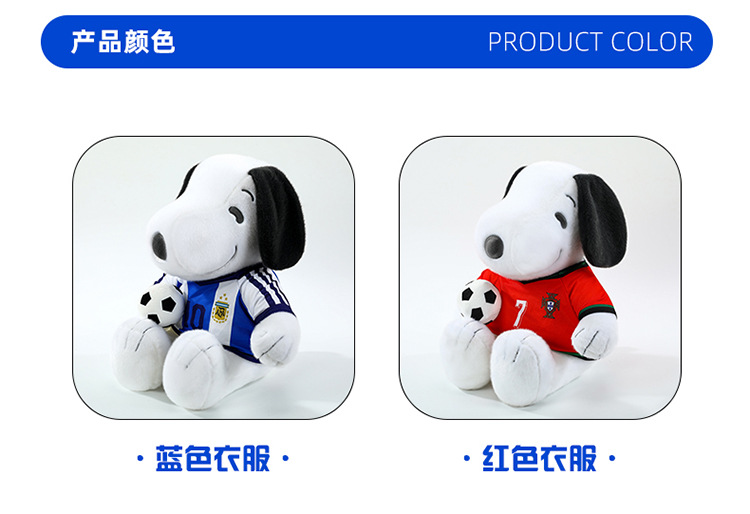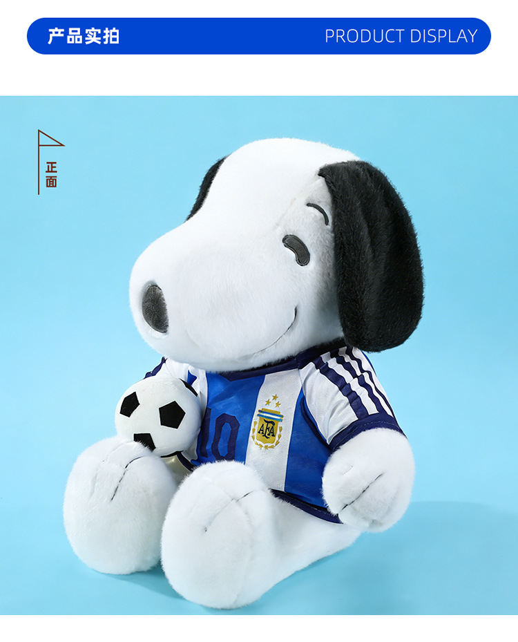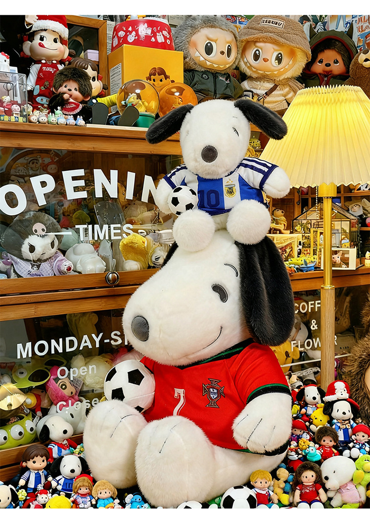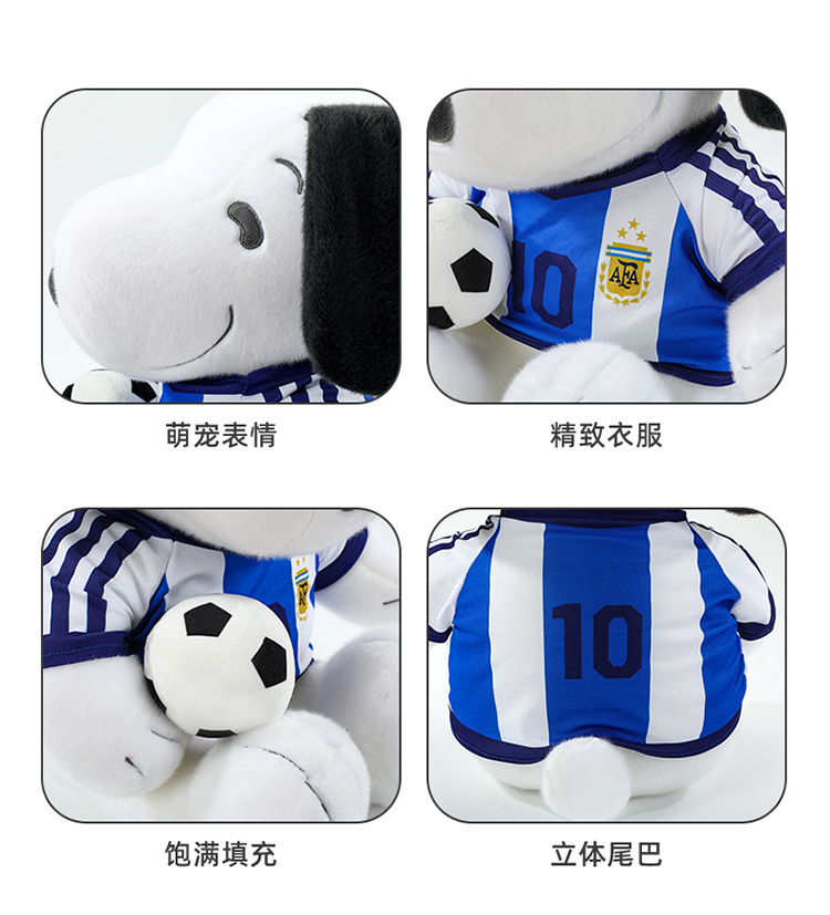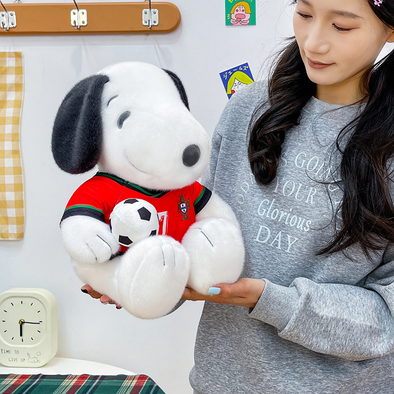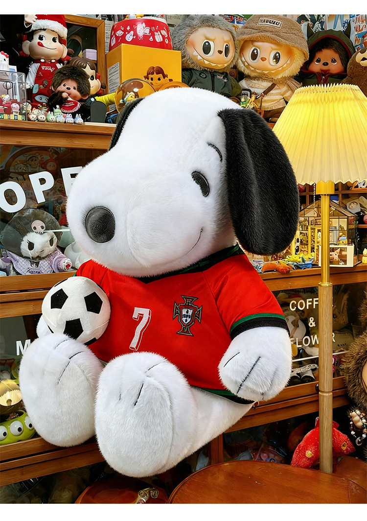 跨境卡通梅西C罗秋衣史努比毛绒玩具可爱狗狗公仔玩偶睡觉抱枕头