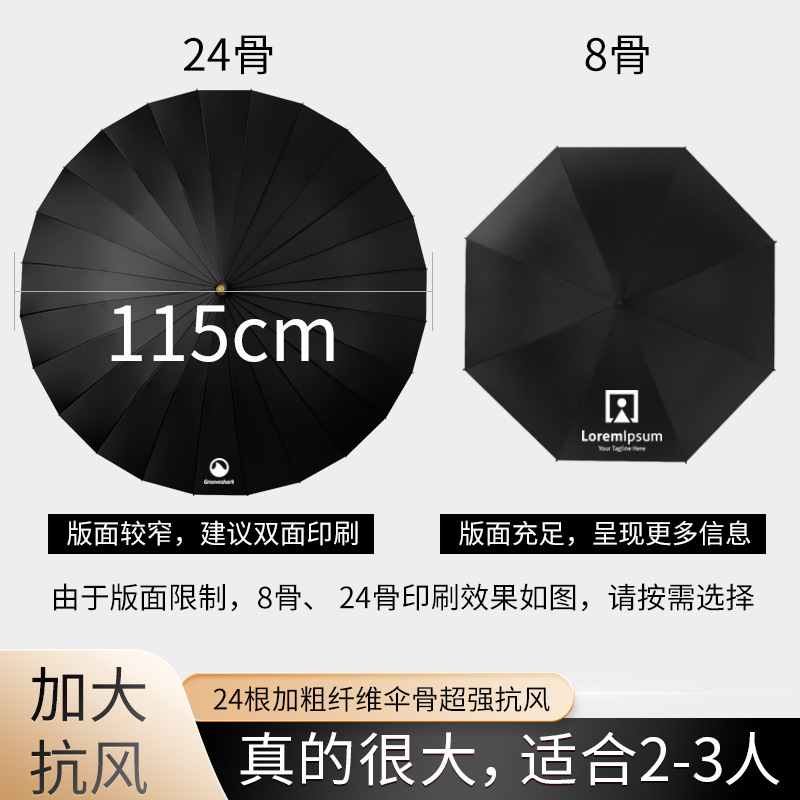 24-rib long-handled umbrella wholesale men‘s large automatic reinforced heavy rain sturdy windproof business advertising umbrella straight umbrella
