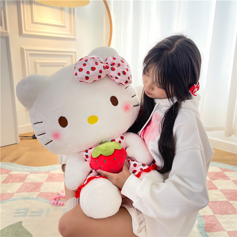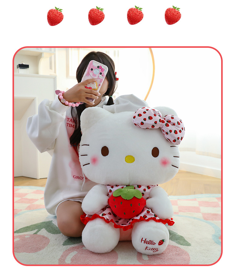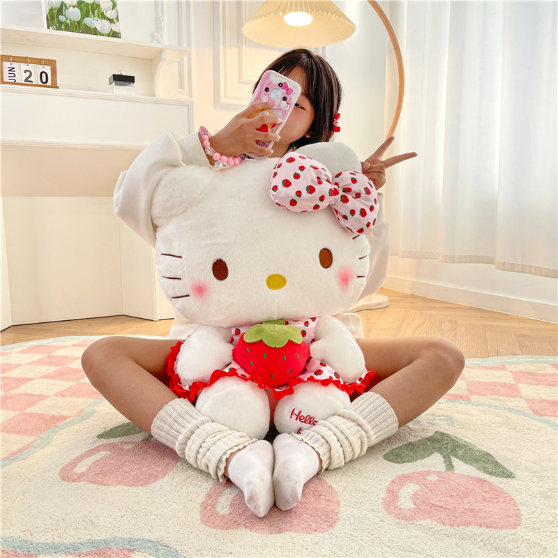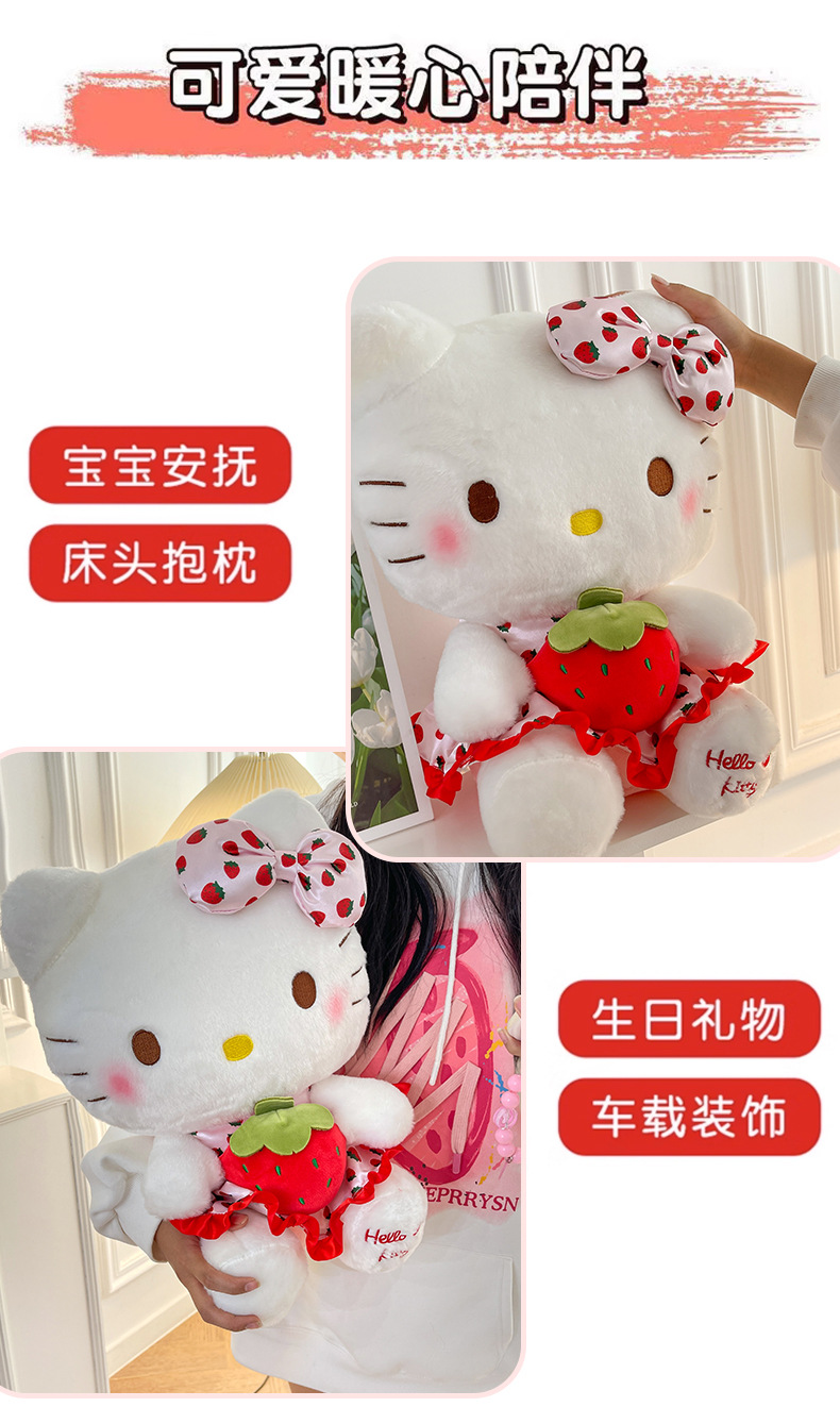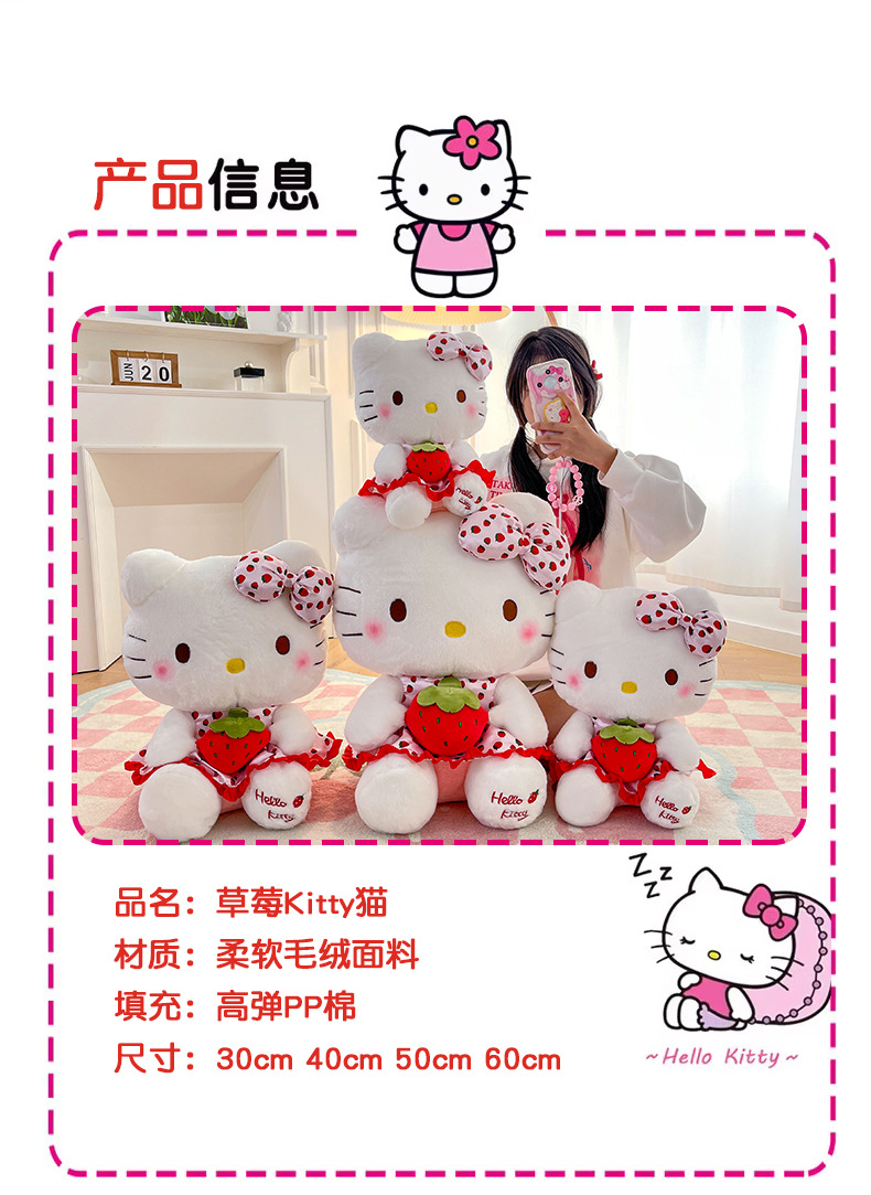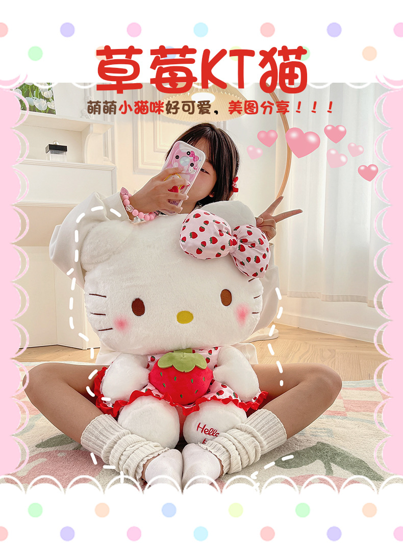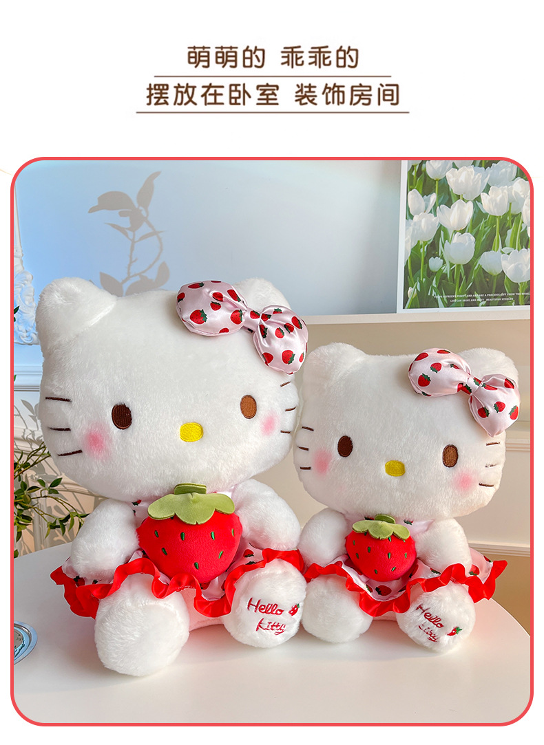草莓KT猫毛绒玩具凯蒂猫毛绒玩具女生床上抱枕玩偶布娃娃生日礼物