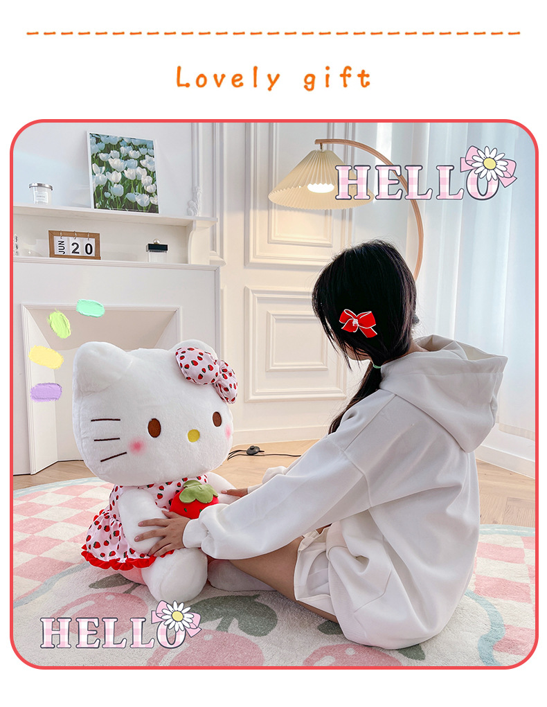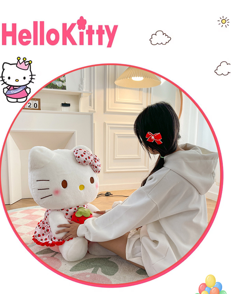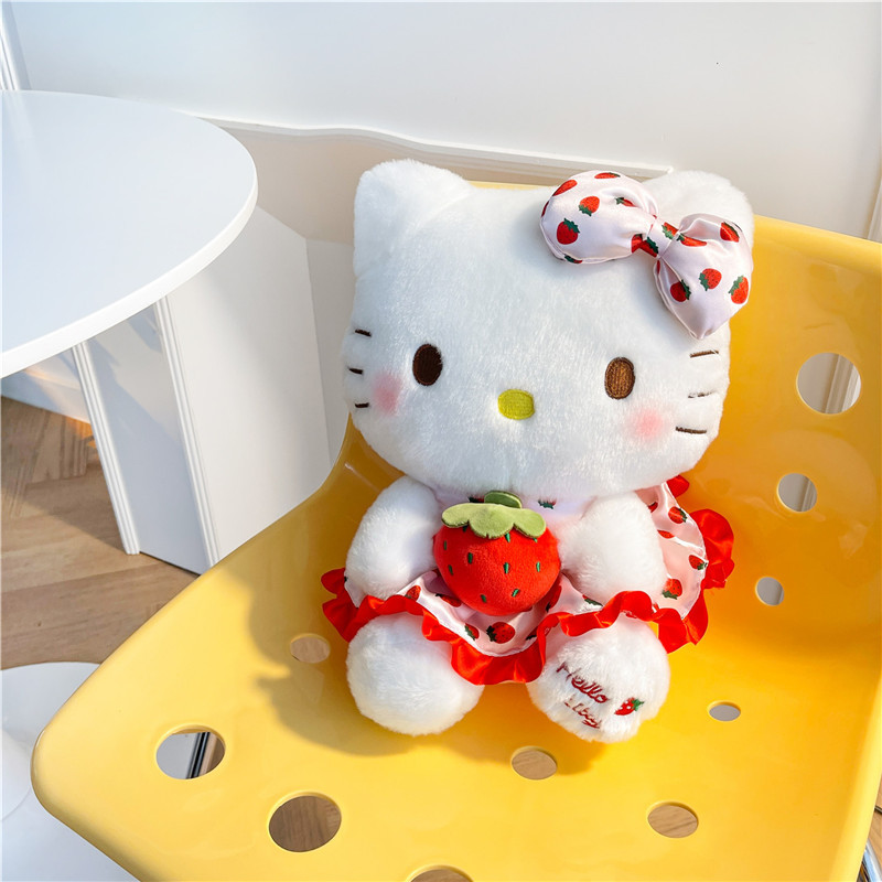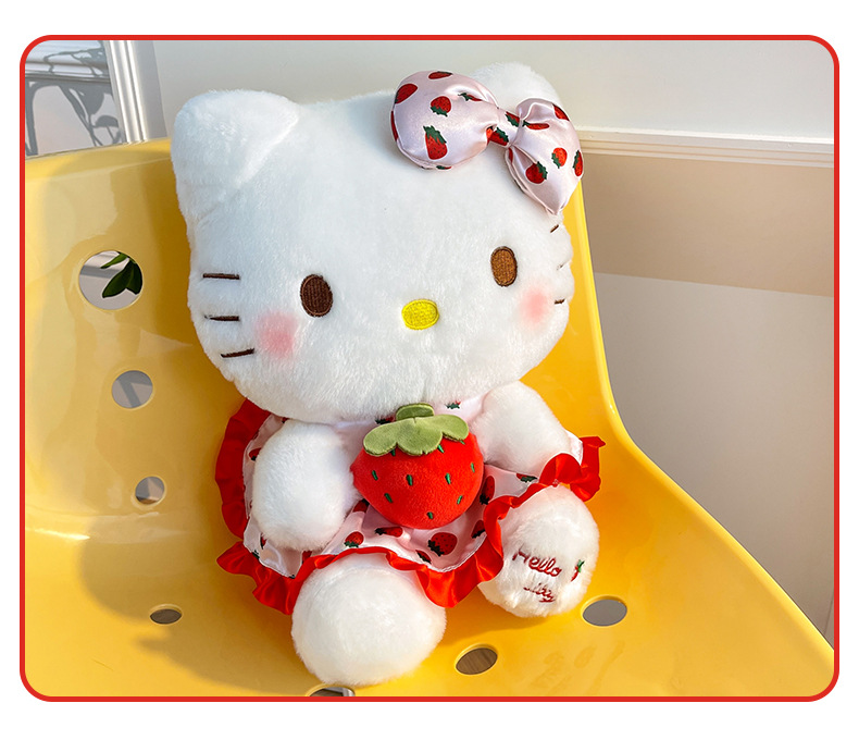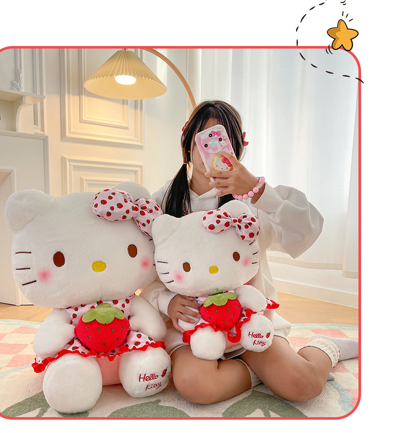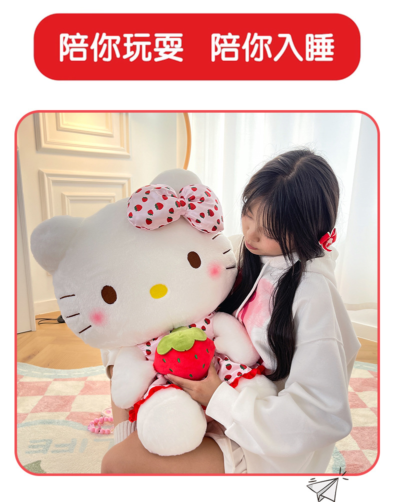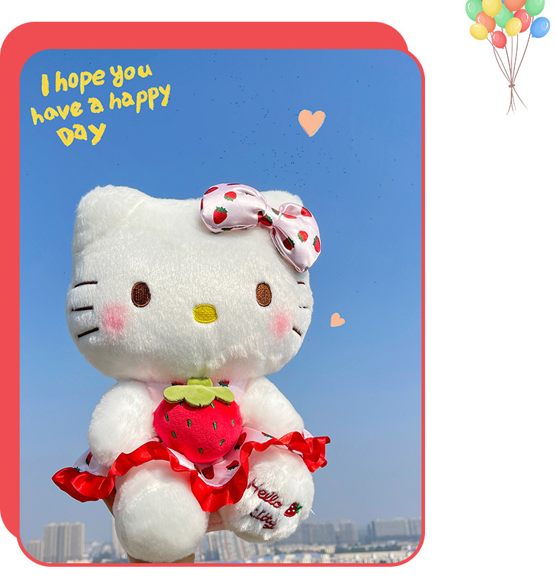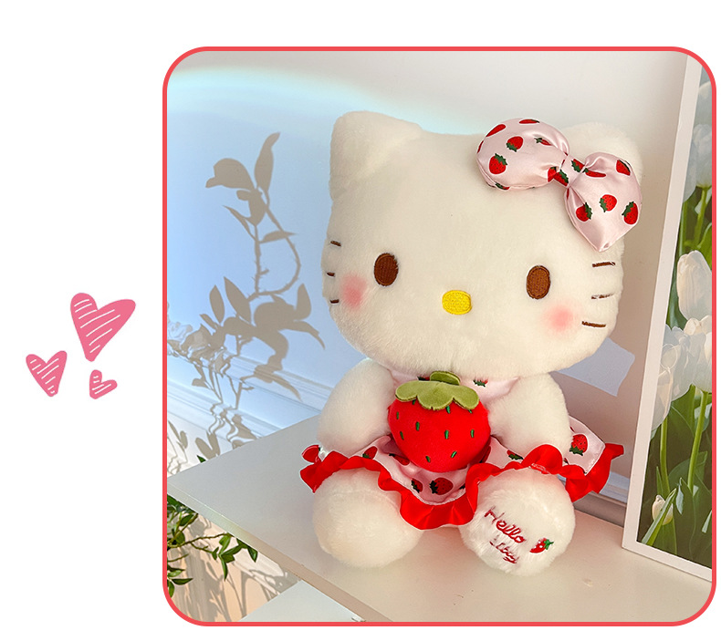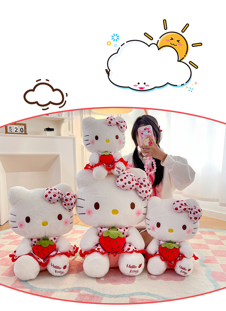 草莓KT猫毛绒玩具凯蒂猫毛绒玩具女生床上抱枕玩偶布娃娃生日礼物