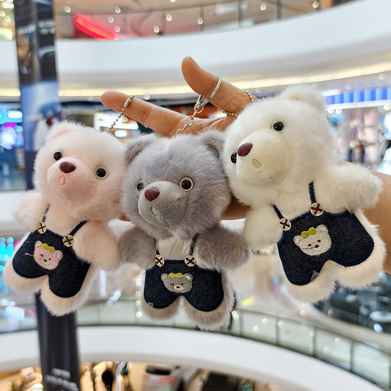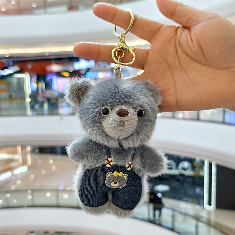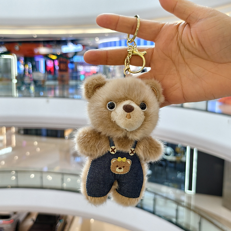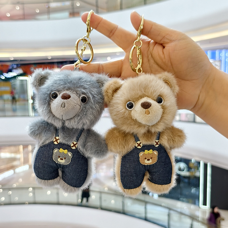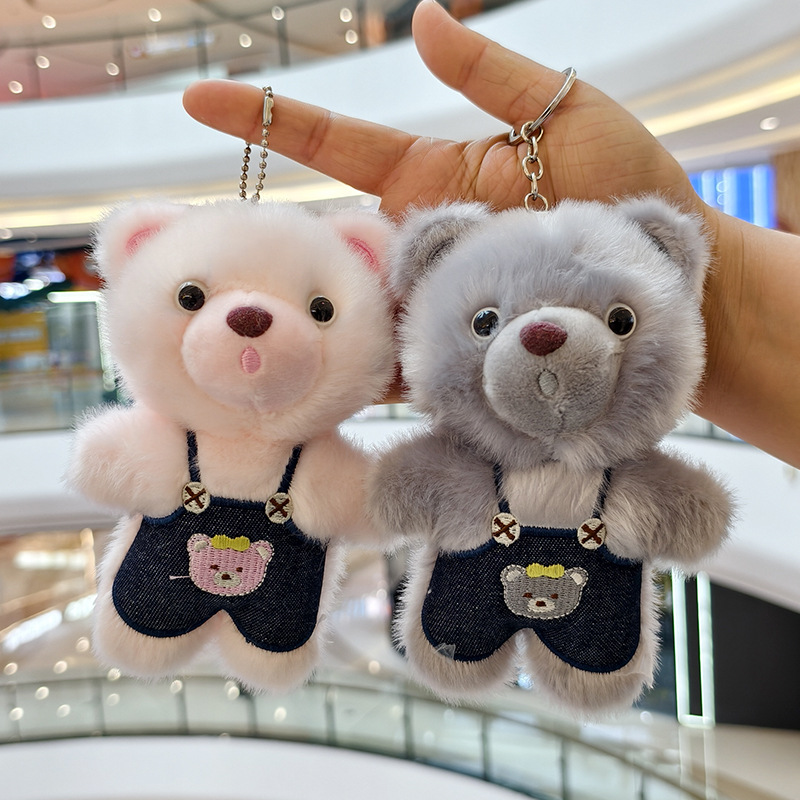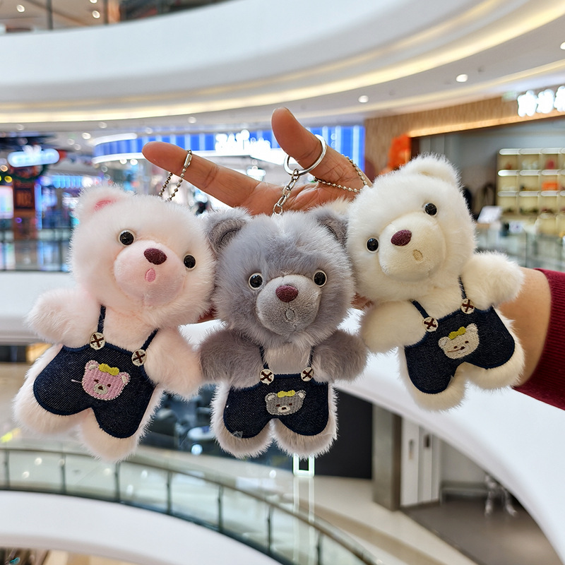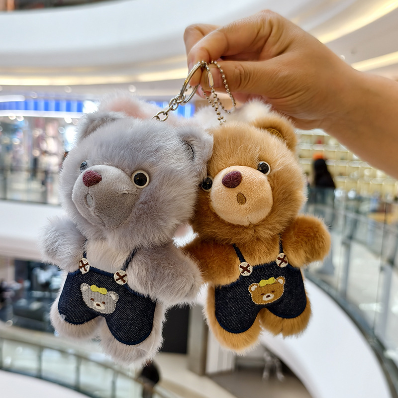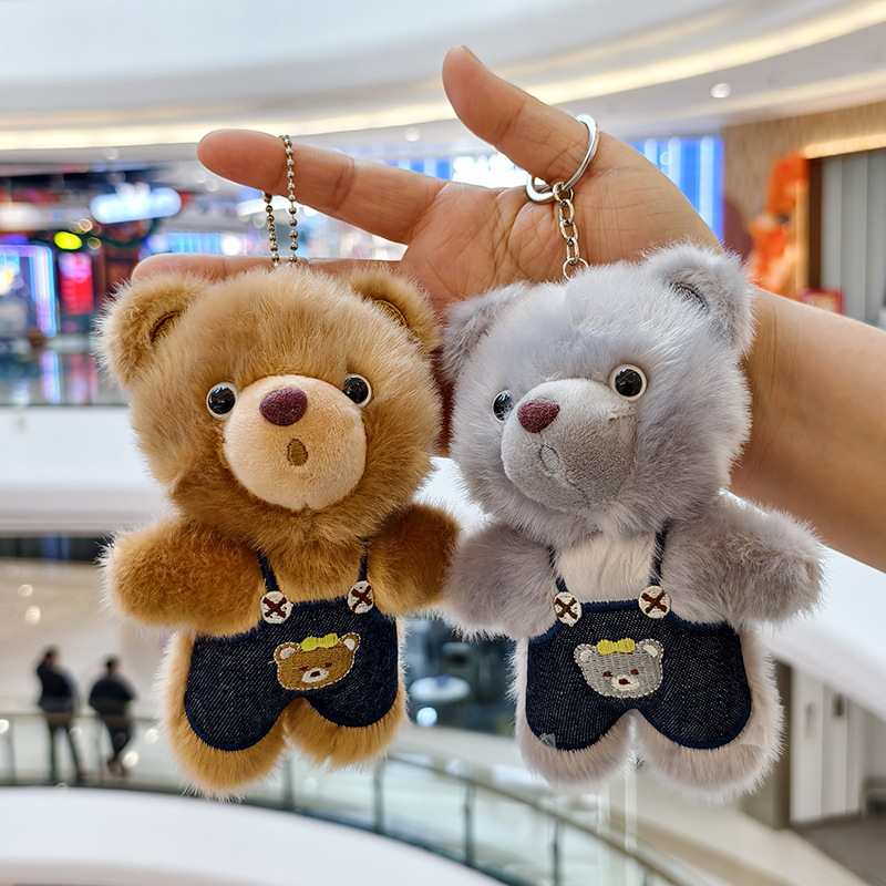 可爱小熊毛绒玩具公仔创意网红背带裤熊挂件包包挂饰钥匙玩偶娃娃