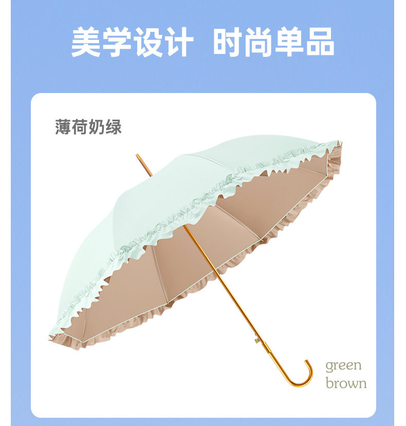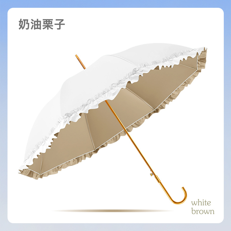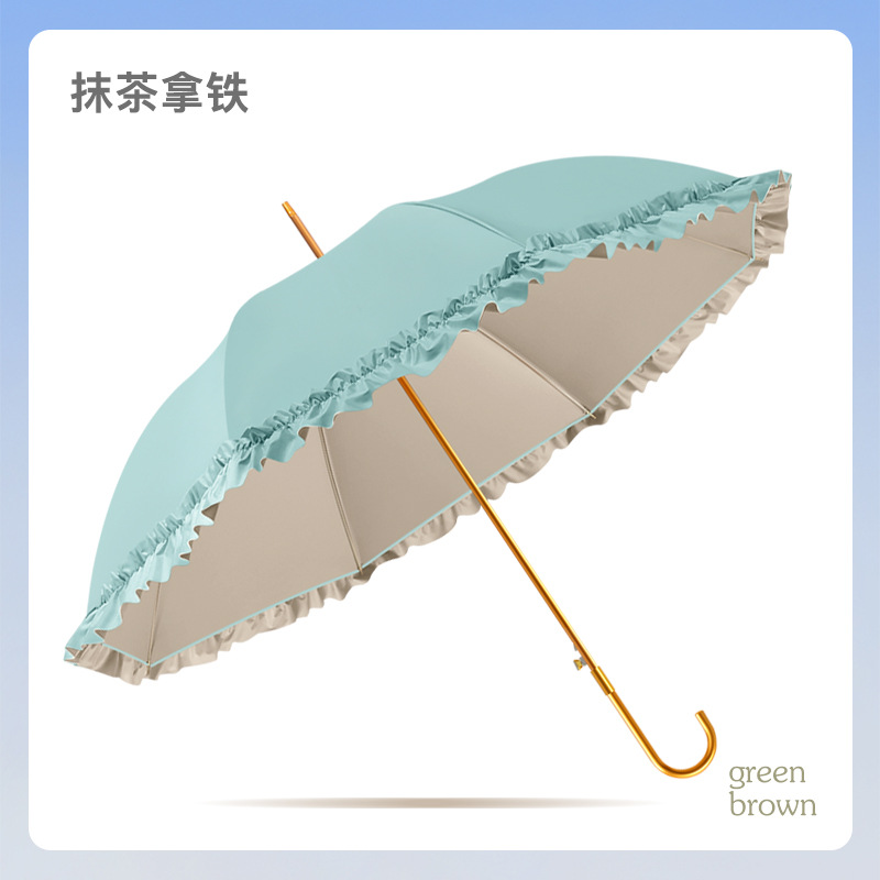 新款彩胶防晒花边伞女士清新弯柄防水晴雨伞防紫外线遮阳伞
