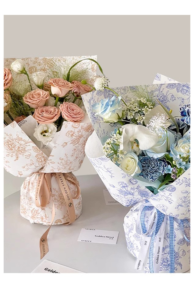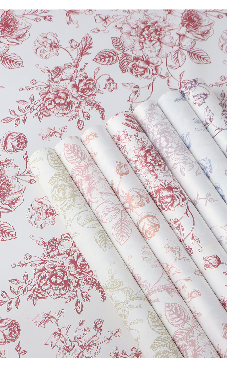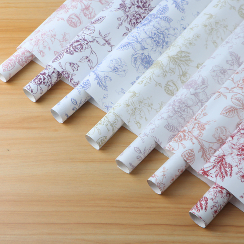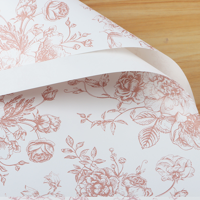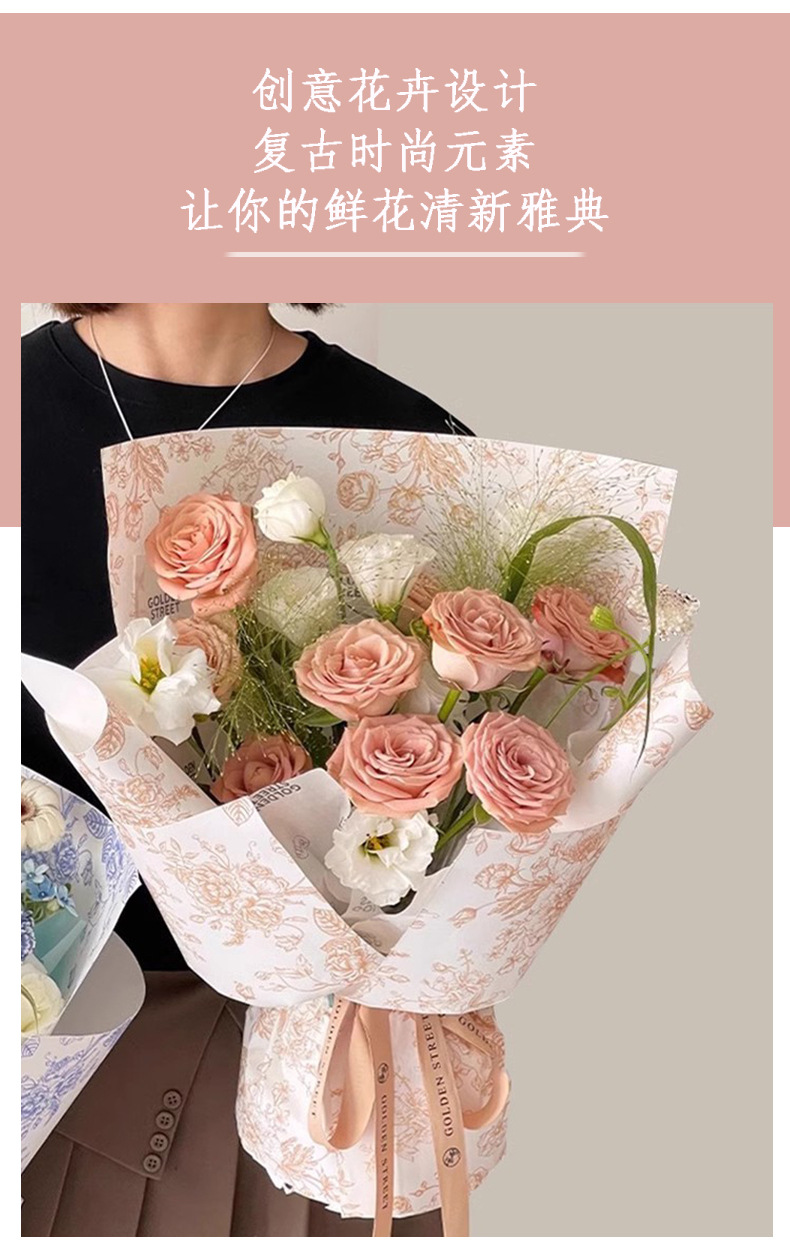 厂家现货批发新款欧式防水印花欧雅纸花店花艺礼品花束包装纸20张