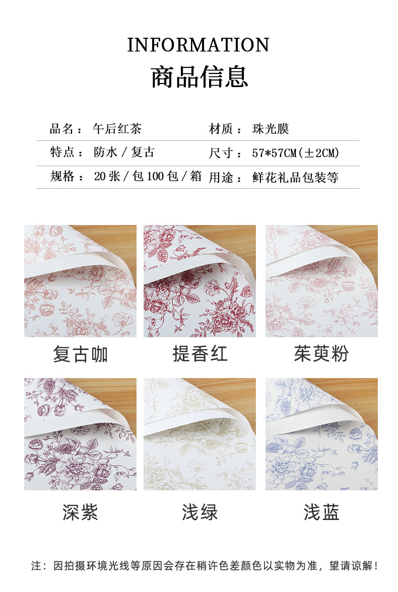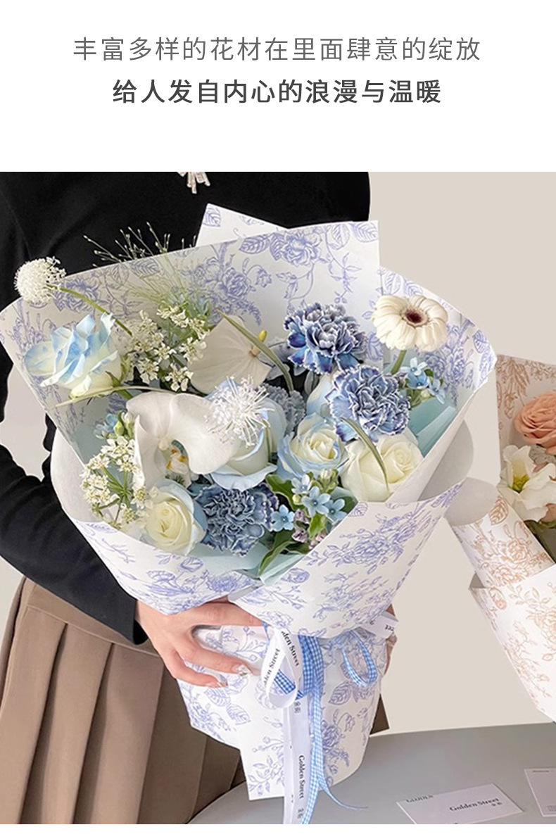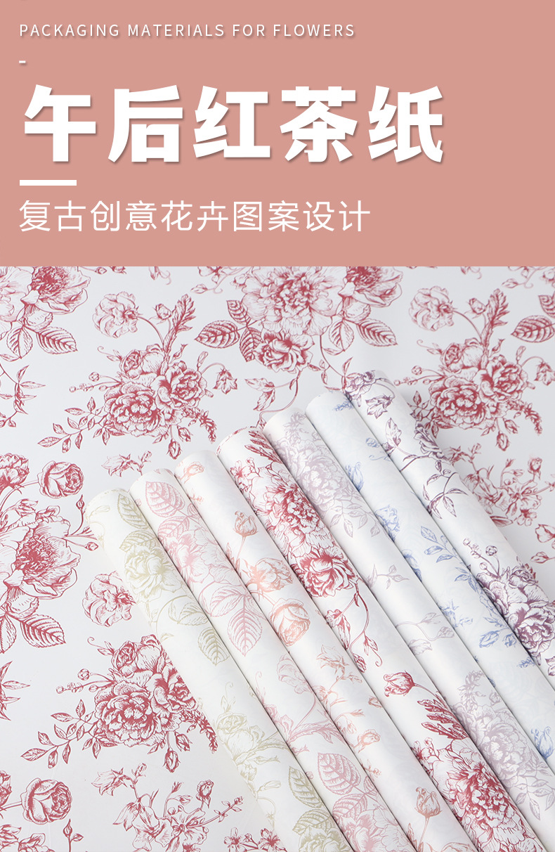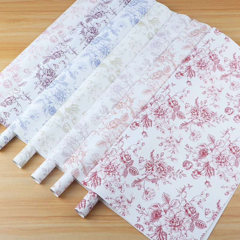厂家现货批发新款欧式防水印花欧雅纸花店花艺礼品花束包装纸20张
