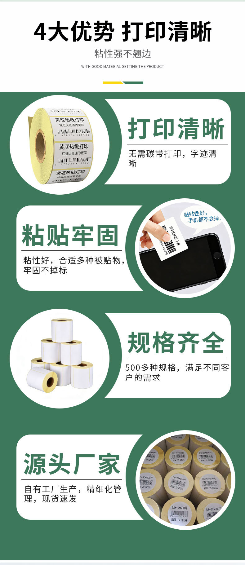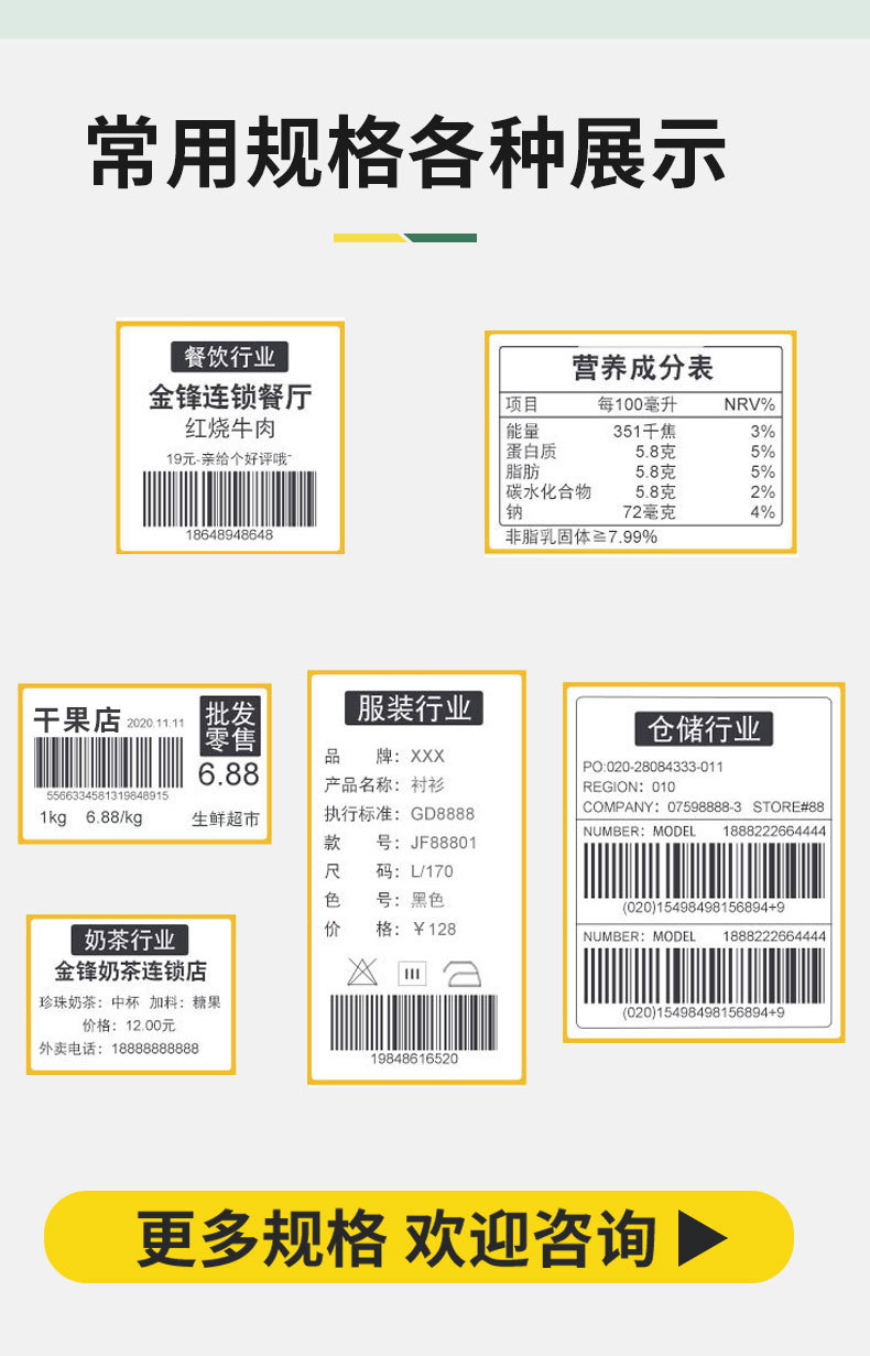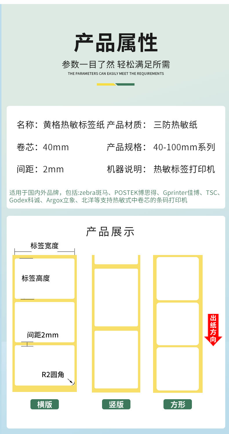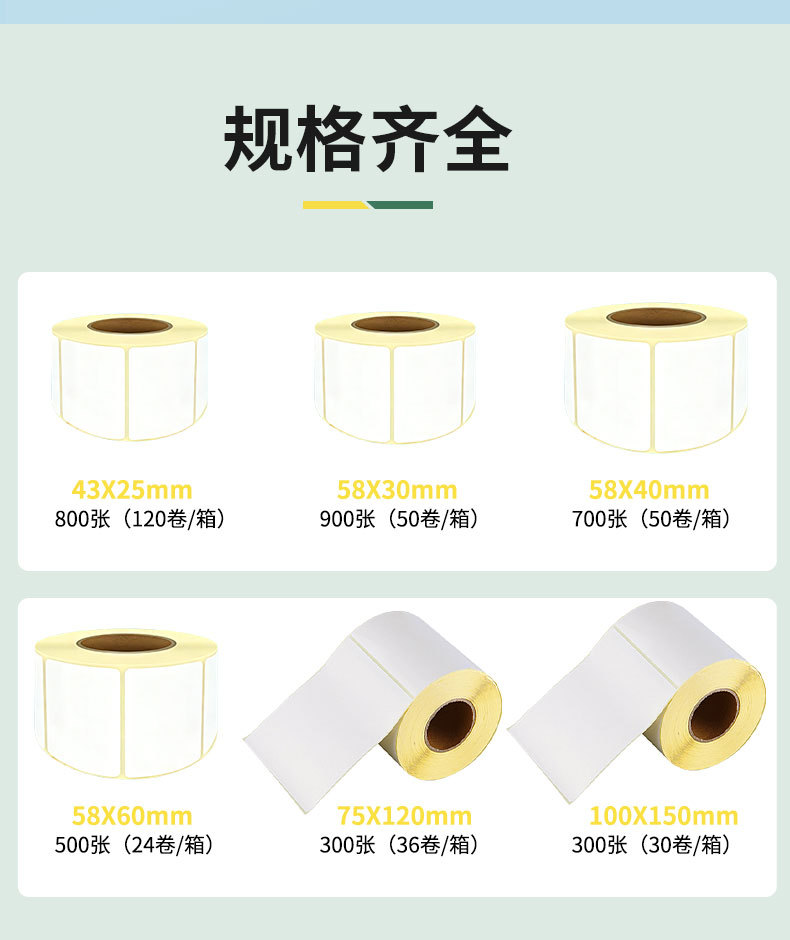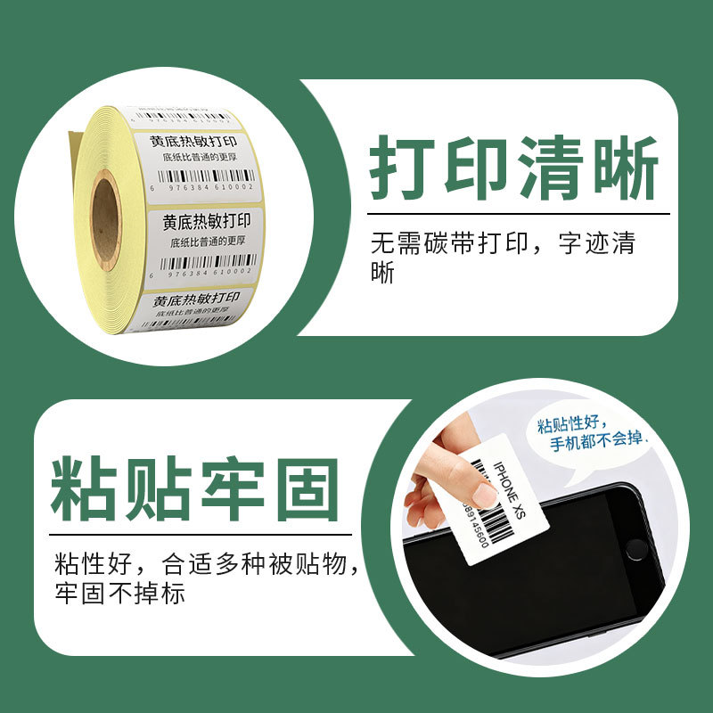 外贸跨境俄罗斯黄底不干胶卷装三防热敏格拉辛商超电商条码标签纸