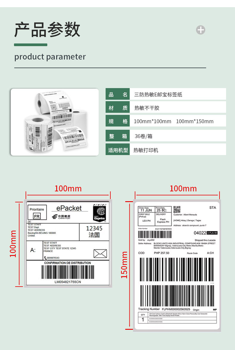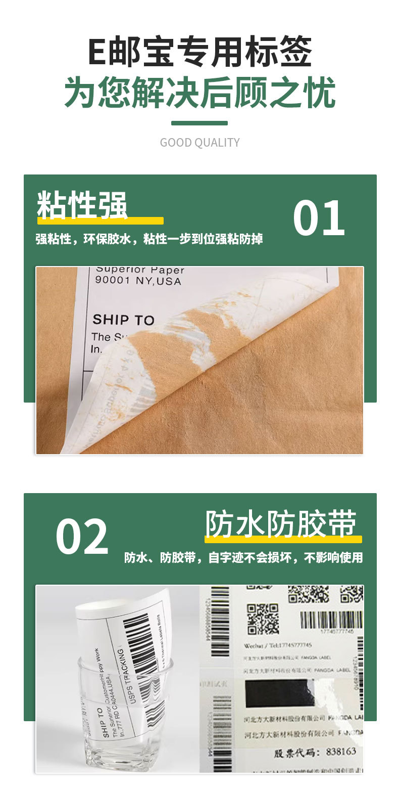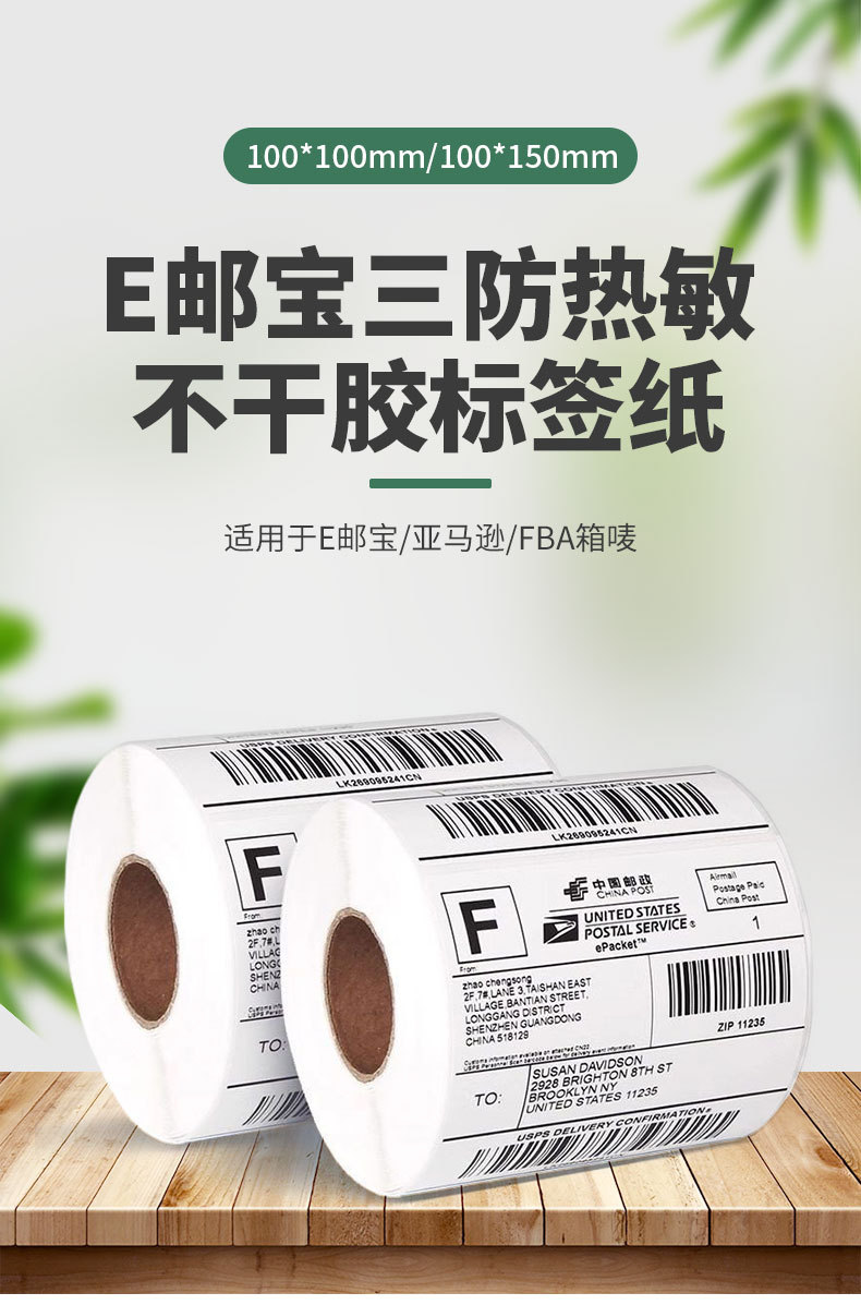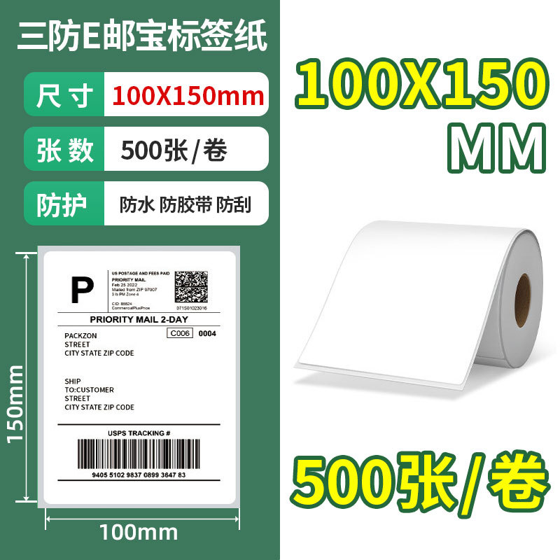 跨境物流面单100x100E邮宝三防热敏标签打印纸不干胶贴纸电子面单